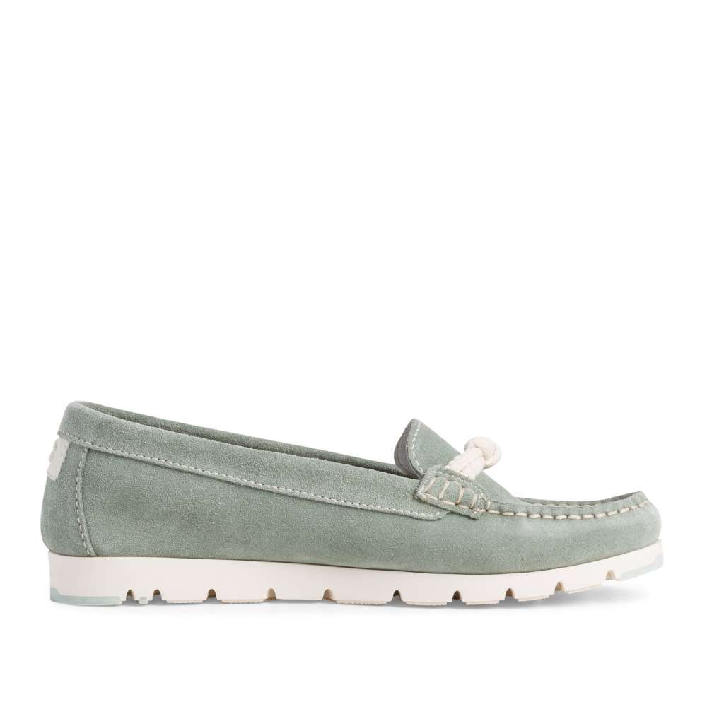 Dámské stylové mokasíny jsou vyrobeny z přírodní usně v krásné barvě a společně s bílou podešví tvoří dokonalý jemný vzhled. Zdobným znakem u této obuvi je v přední částí výrazný steh a designové lanko s uzlem.
