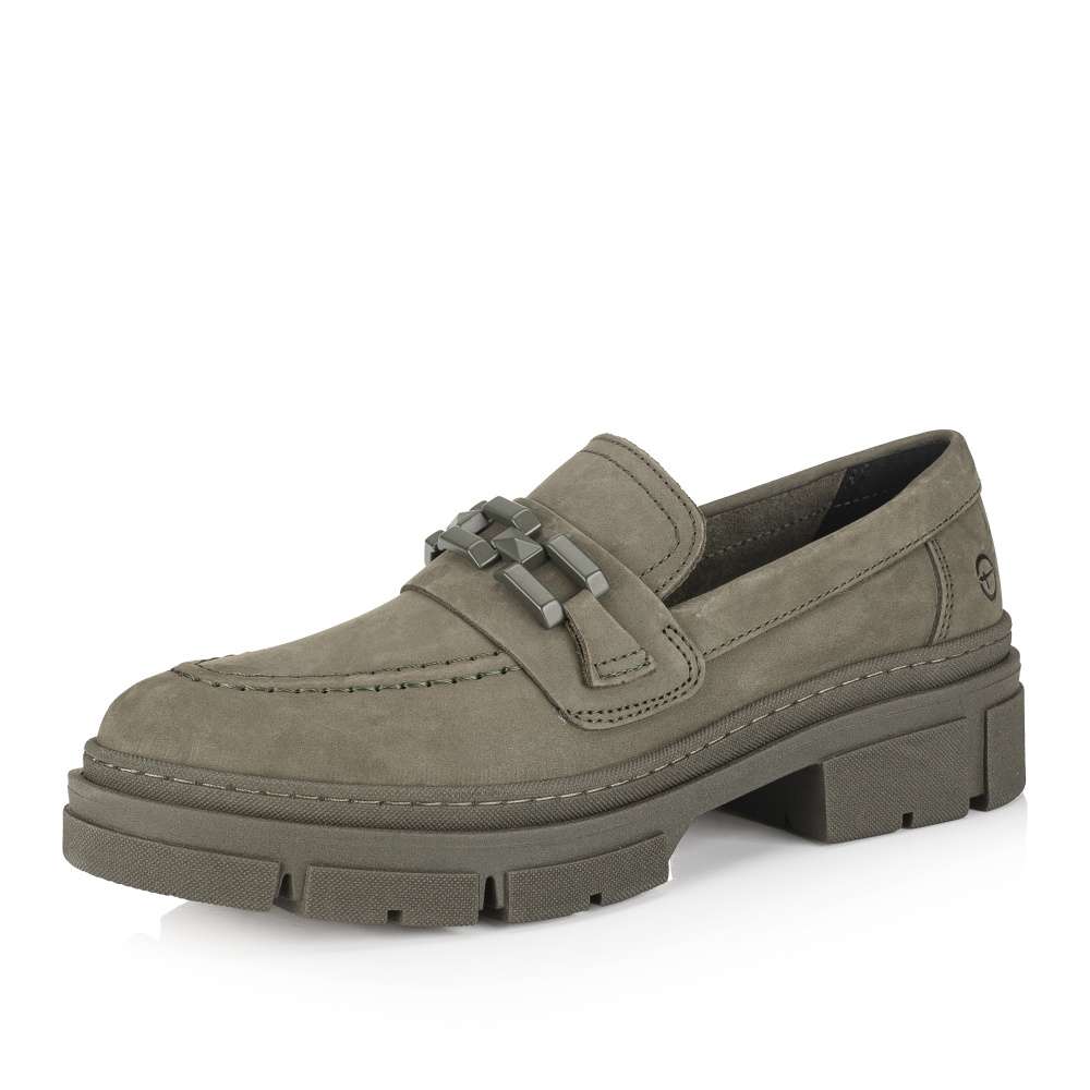 Extravagantní dámské kožené mokasíny značky TAMARIS Vás uchvátí nevšední designovou aplikací na nártní části a jemným prošitím kolem celé boty. Kožený svršek dodá na eleganci a textilní stélka zaručí maximální prodyšnost. Výška platformy je v nejvyšším bodě 5 cm. Měkká stélka s technologií Touch-it, která se dokonale přizpůsobí tvaru Vaší nohy, Vám zajistí maximální komfort na každém kroku. S tímto jedinečným kouskem oživíte nejeden outfit.