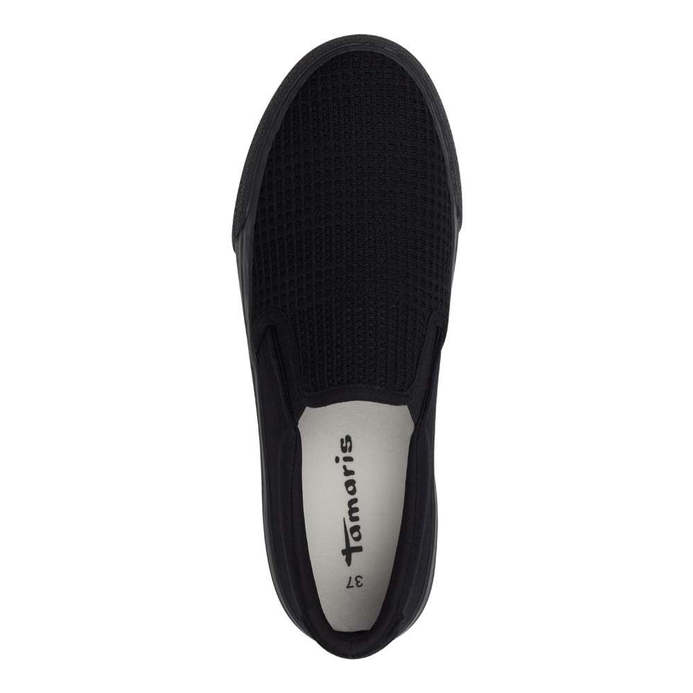 Detailní informace Jednoduché nazouvací dámské tenisky značky TAMARIS, budou oblíbeným kouskem Vašich dnů. Černý svršek má originální strukturu a vsazené gumičky na nártu pro snadné nazouvání. Stélka z paměťové pěny se dokonale přizpůsobí chodidlu a její měkkost ucítíte každým nášlapem. Tyto tenisky se hodí ke kraťasům, ale i sukni. Fantazii se meze nekladou.