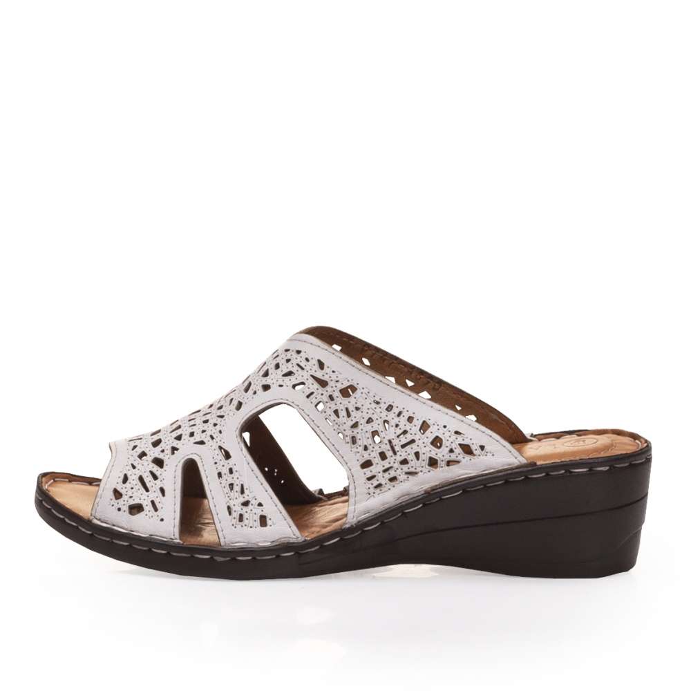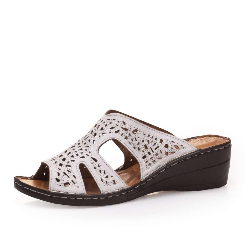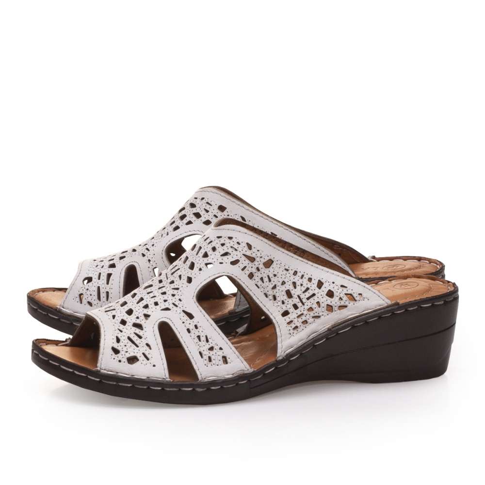 Dámské nazouváky značky IBERIUS budou skvělou volbou pro letní procházky. Svršek Kožený svršek je zdobný designovou perforací, která zajistí potřebnou cirkulaci vzduchu. Stélka Kožená stélka je měkká a tím se postará o Vaše pohodlí na každém kroku. Podešev Podešev je vyrobena z velmi kvalitního syntetického materiálu a v nejvyšším místě pod patou měří cca 5 cm. Tyto nazouváky díky svému vzhledu skvěle doladí Vaše letní outfity.