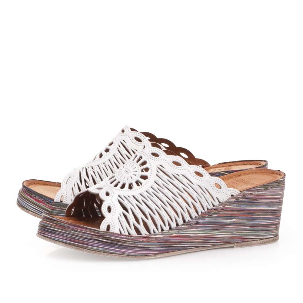 Široký bílý pásek přes nárt je perforován zajímavým vzorem.