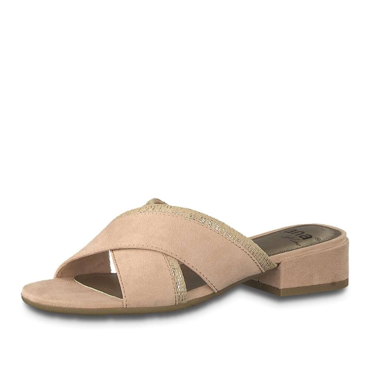 Dámské nazouváky mají semišový vzhled a kulatou špičku. Zdobené jsou lemováním svršku lesklým proužkem. Na vnitřní straně je vsazena pružná gumička pro dokonalou úpravu přímo k Vaší noze. Tento model je vhodný na procházku letním dnem.