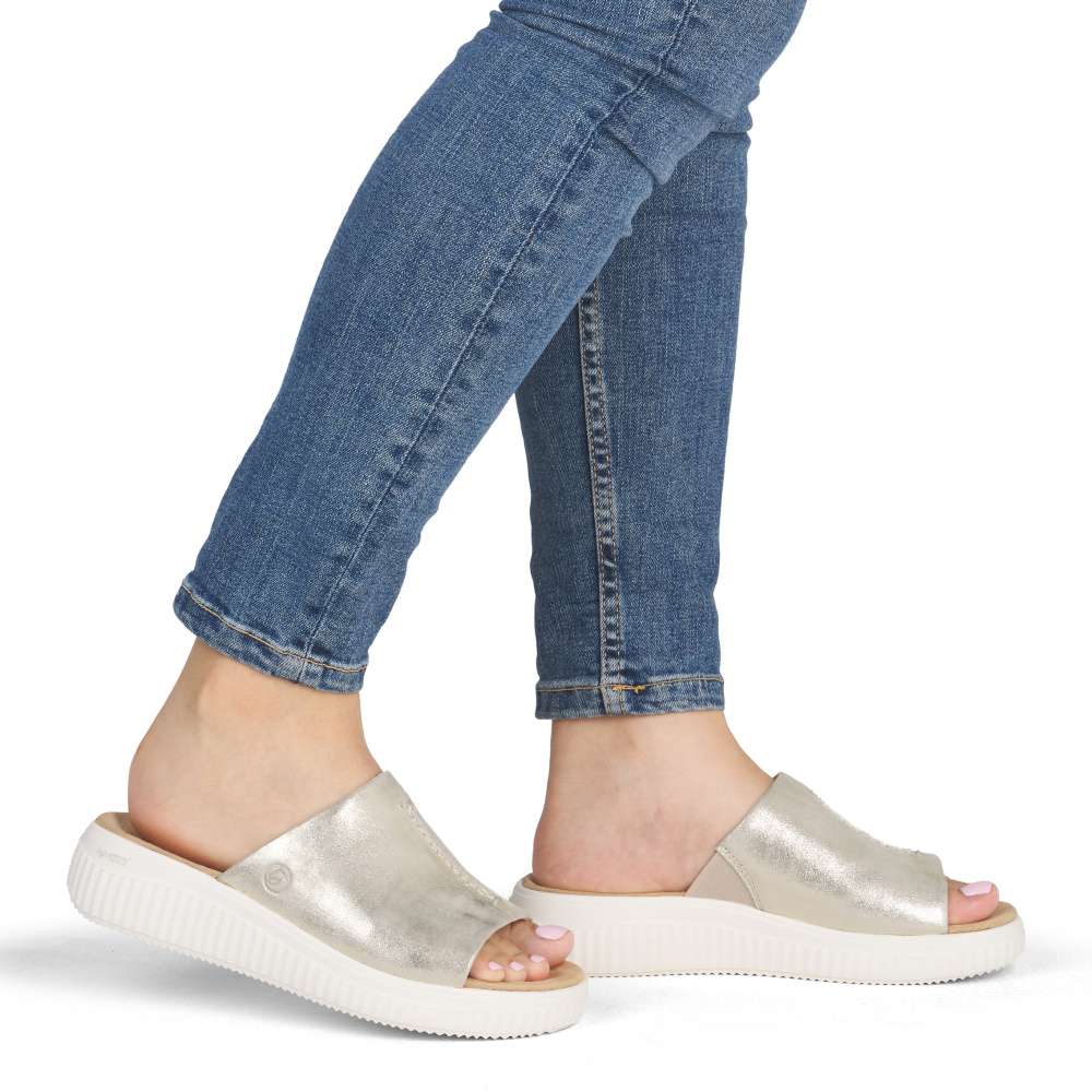 Obuv REMONTE představuje prémiovou řadu značky RIEKER, která se vyznačuje vysokou kvalitou použitých materiálů a precizním zpracováním. Kožené nazouváky značky Rieker okouzlí svým stylem a jemnou elegancí. Odlesky a efektní prošití na širokém nártovém pásku jim dodávají šmrnc a dělají z nich nepřehlédnutelný doplněk každého outfitu. Příjemná textilní stélka poskytne pohodlí při nošení, zatímco vsazená gumička ve vnitřní části usnadňuje nazouvání a přizpůsobí se chodidlu. Vyšší podrážka zajišťuje komfort i při delším nošení, takže tyto nazouváky jsou ideální volbou pro ženy, které chtějí spojit pohodlí a moderní vzhled.