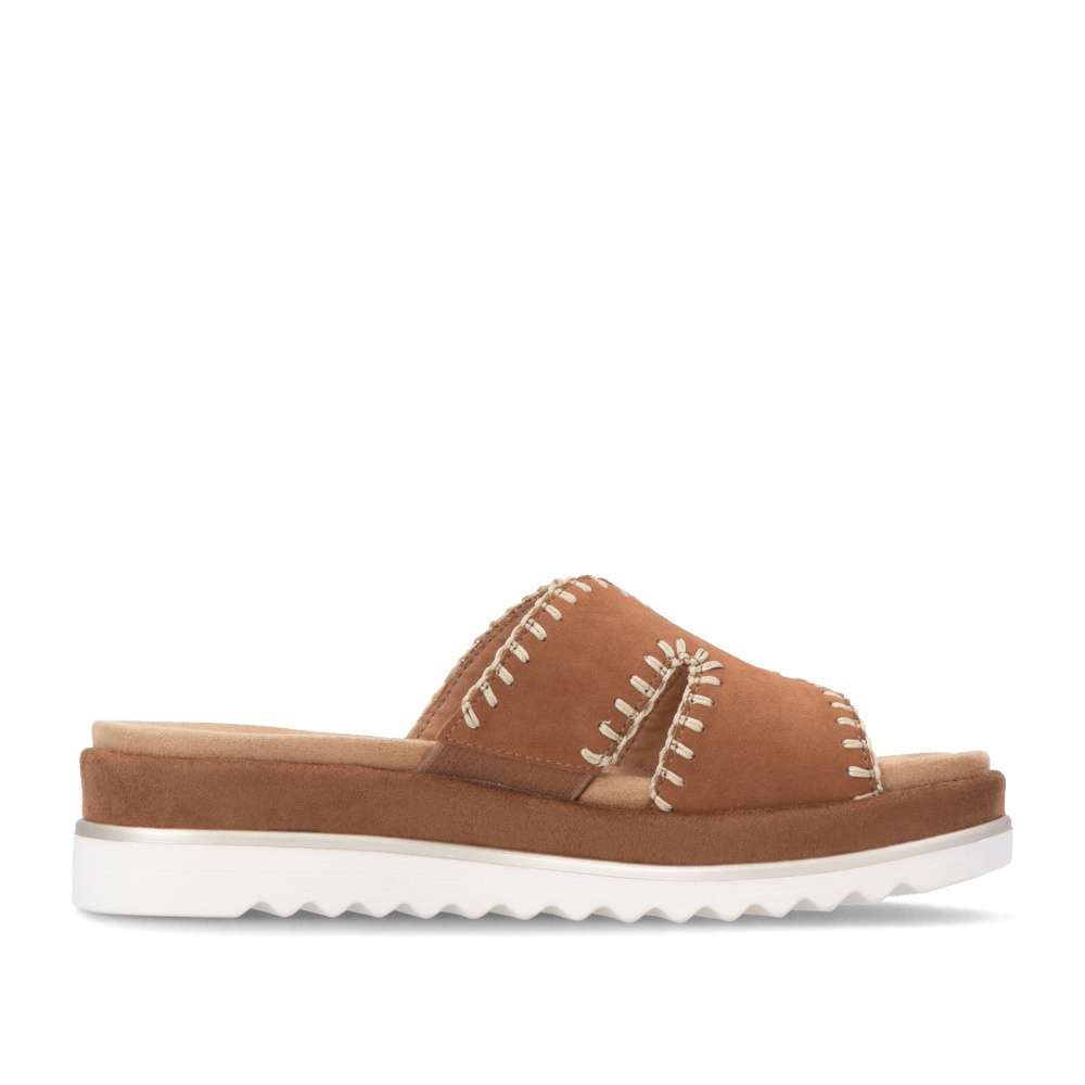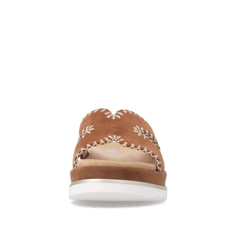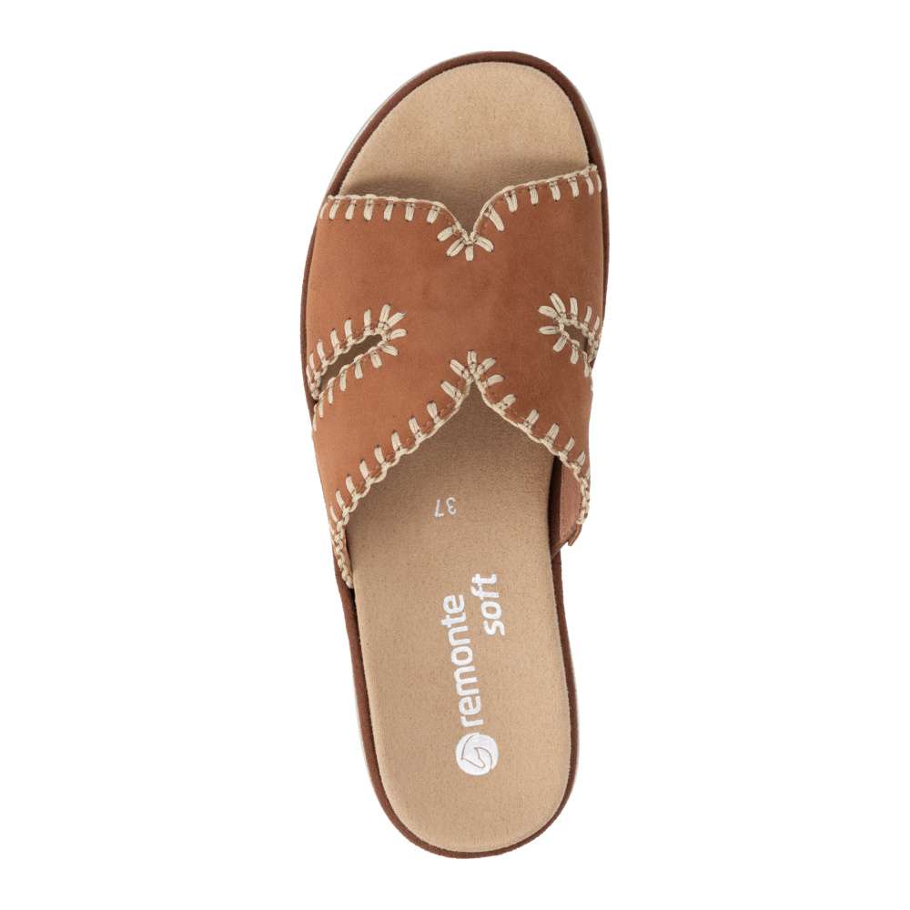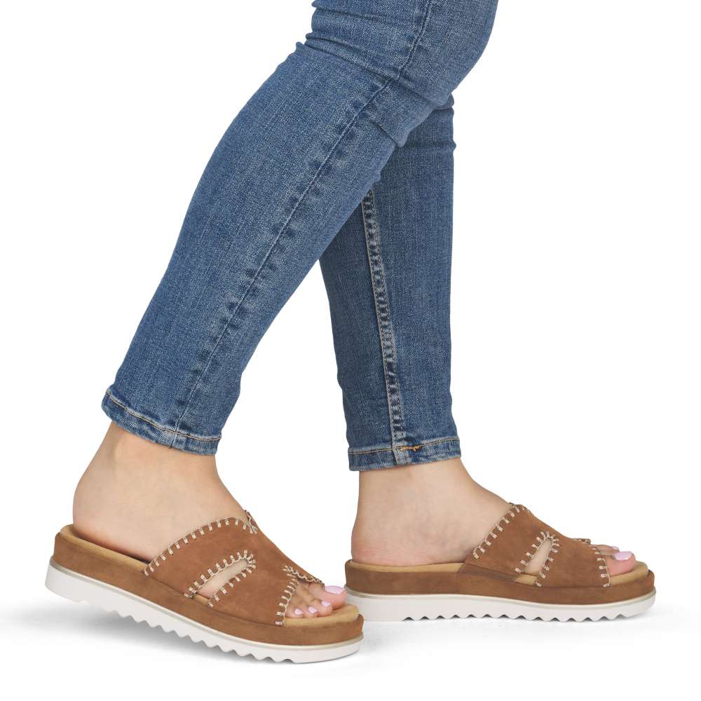 Obuv REMONTE představuje prémiovou řadu značky RIEKER, která se vyznačuje vysokou kvalitou použitých materiálů a precizním zpracováním. Nazouváky se stylovým hnědým koženým svrškem a efektním prošíváním po obvodu představují ideální kombinaci moderního designu a pohodlí. Prošívání nejen zvýrazňuje vzhled obuvi, ale dodává jí i jemný luxusní detail, který ocení každá žena dbající na styl. Vyjímatelná textilní stélka je tvarována tak, aby poskytovala pohodlí během celého dne a zároveň usnadnila údržbu obuvi. Potřebnou oporu každým krokem poskytne vyšší podešev a svým trendovým vzhledem vytváří výrazný vizuální efekt. Působí stylově a zároveň zvýrazňuje charakter tohoto modelu, čímž se stává skutečným doplňkem letního outfitu. Tyto nazouváky RIEKER spojují komfort, styl a lehkost každého kroku, díky čemuž se stanou vaším spolehlivým společníkem během celého léta.
