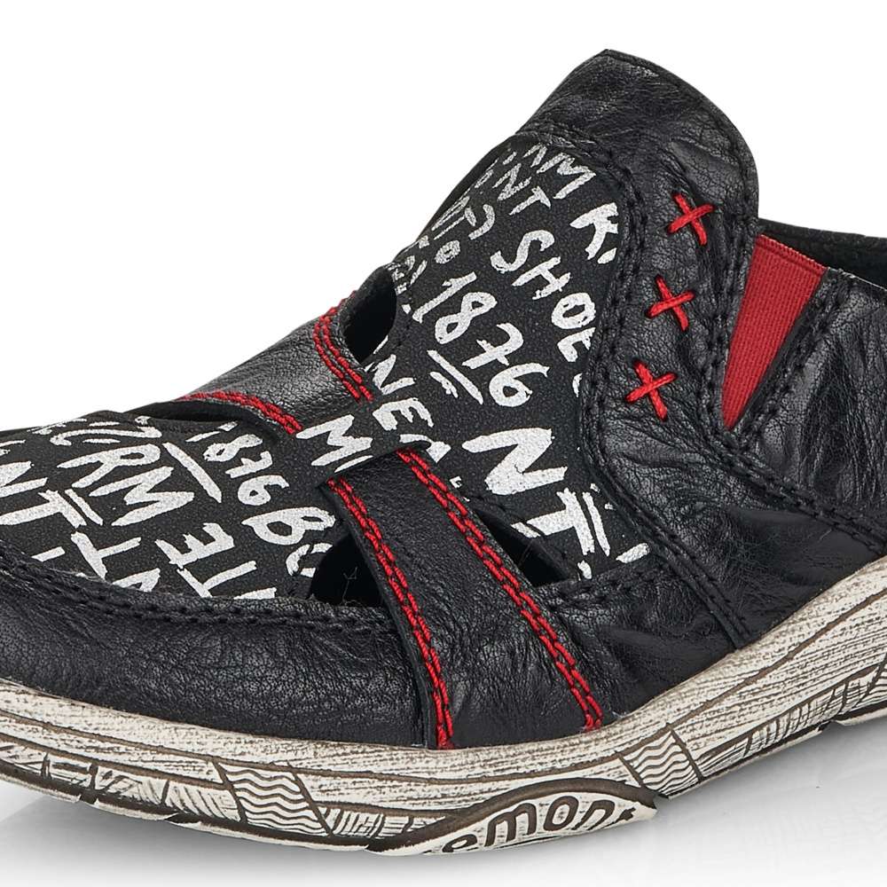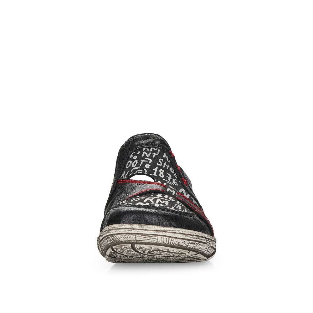 Obuv REMONTE – jedná se o vyšší řadu značky RIEKER, tato obuv se vyznačuje vynikající kombinací svrchních materiálů. Dámské nazouváky s uzavřenou špicí Vás zaujmou svou kombinací barev a svým výrazným šitím. Pro snadné obouvání slouží pružné gumičky, které jsou umístěny po stranách obuvi. Tato obuv je vybavena vyjímatelnou stélkou z paměťové pěny a pevná podešev vysoká cca 3 cm Vám zaručí pohodlí po celý den. Budou Vám dělat skvělého společníka v letních dnech jak doma, tak i venku. Technologie: RemonteSoft – unikátní stélka z paměťové pěny, která změkčuje došlap, ale také se maximálně přizpůsobí tvaru Vašeho chodidla. Tato obuv je vybavena vyjímatelnou stélkou.