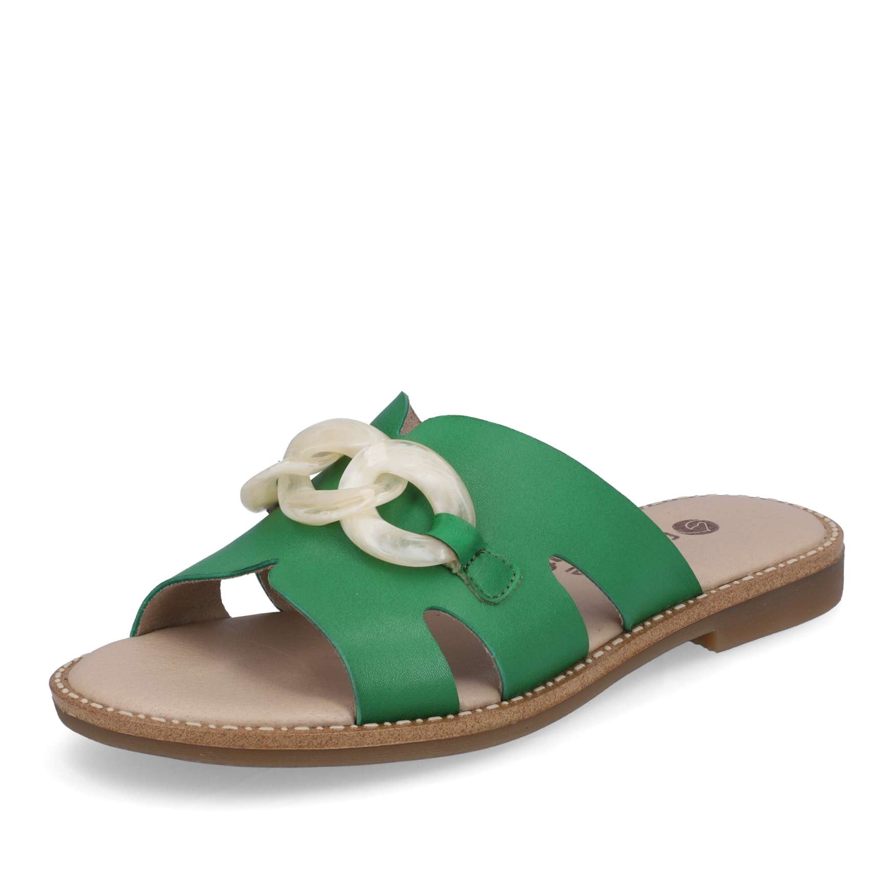 Detailní informace Obuv REMONTE je vyšší řadou značky RIEKER, obuv se vyznačuje kvalitou použitých materiálů. Výrazný vzhled těmto koženým pantoflům dodá nejen zelená barva, ale také výrazná ozdoba v podobě řetízku na nártu. Díky vsazené gumičce dokonale obepnou Vaši nohu a budete mít jistý každý krok. Kožená měkká stélka spolu s perforací po bocích zaručí pohodlí i v teplých dnech. Neměli byste zapomenout objednat si kabelku z naší nabídky k těmto letním kráskám. A kam se v nich vyberete, práce či zábava?