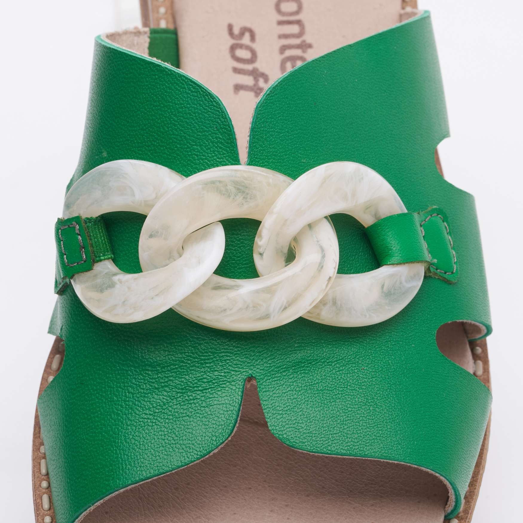 Obuv REMONTE je vyšší řadou značky RIEKER, obuv se vyznačuje kvalitou použitých materiálů. Výrazný vzhled těmto koženým pantoflům dodá nejen zelená barva, ale také výrazná ozdoba v podobě řetízku na nártu. Díky vsazené gumičce dokonale obepnou Vaši nohu a budete mít jistý každý krok. Kožená měkká stélka spolu s perforací po bocích zaručí pohodlí i v teplých dnech. Neměli byste zapomenout objednat si kabelku z naší nabídky k těmto letním kráskám. A kam se v nich vyberete, práce či zábava? Technologie: RemonteSoft – unikátní stélka z paměťové pěny, která změkčuje došlap, ale také se maximálně přizpůsobí tvaru Vašeho chodidla.