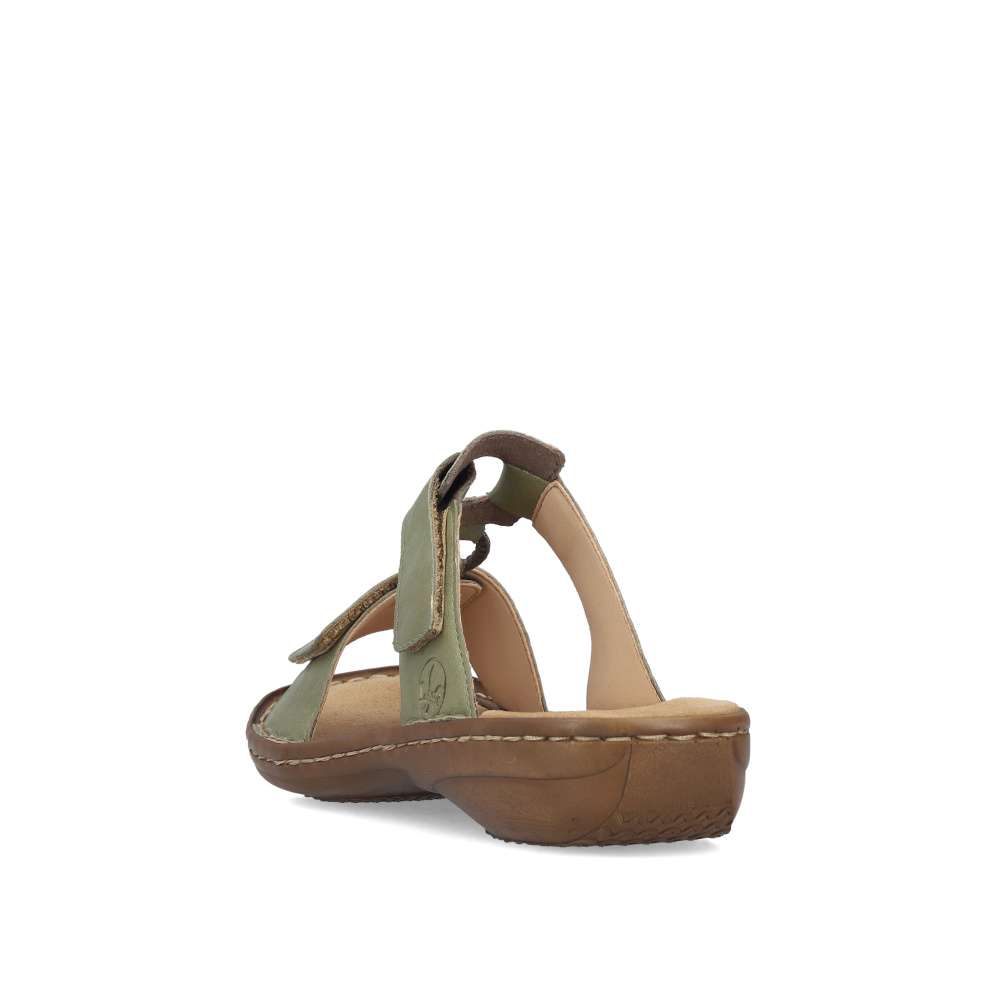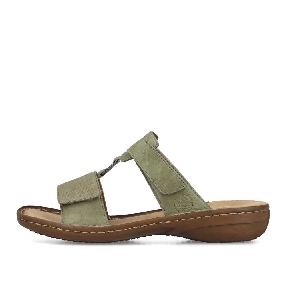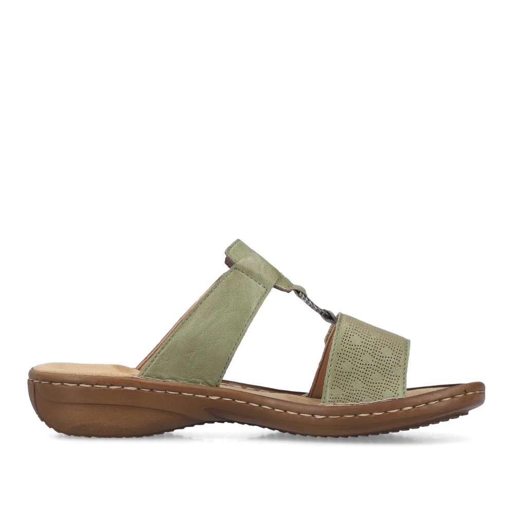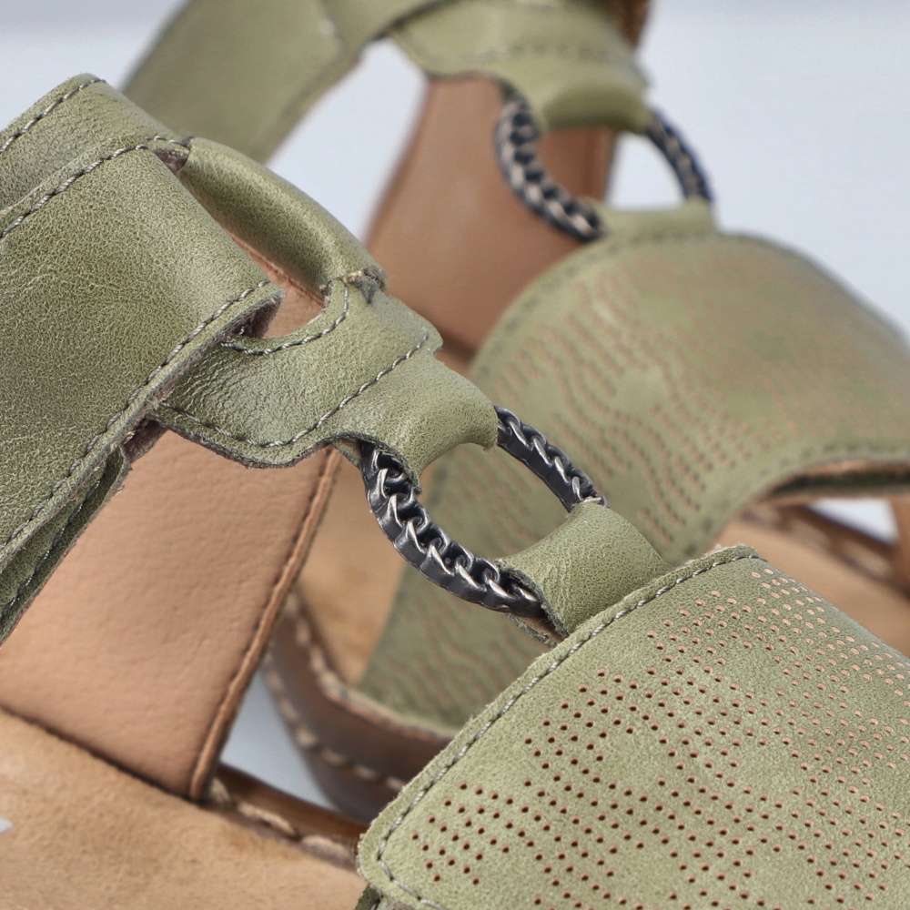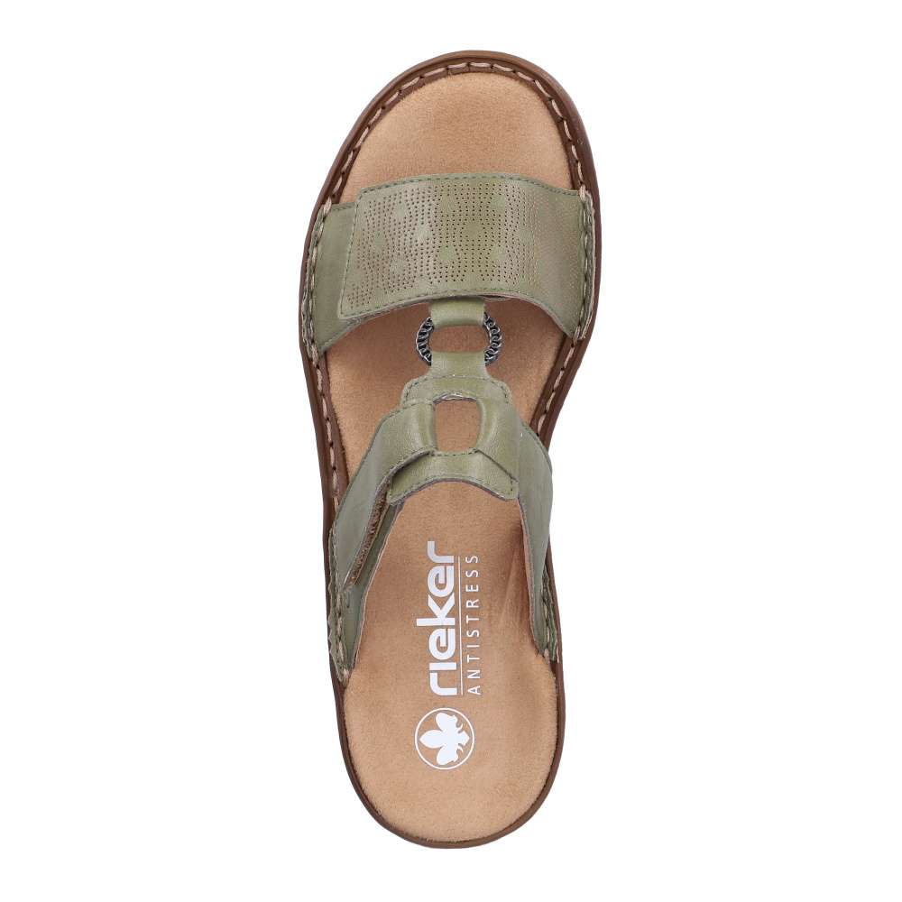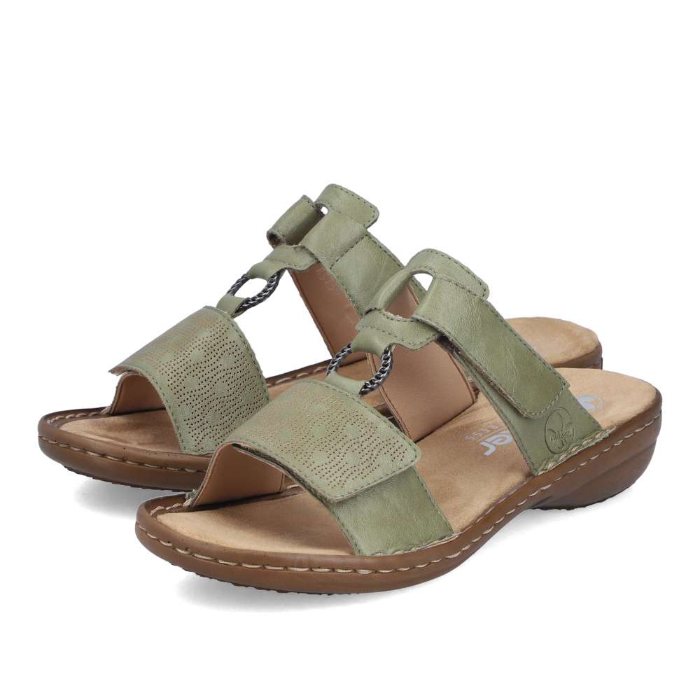 Tento model nazouváků od značky RIEKER je ideální volbou pro letní dny, kdy chcete spojit pohodlí s moderním vzhledem. Zelený svršek zdobí jemný vzor na předním pásku, logo značky a kovový kroužek spojující pásky, které dodávají pantoflím stylový charakter. Oba pásky jsou opatřeny suchým zipem, díky čemuž si obuv snadno přizpůsobíte přesně podle tvaru nohy a zajistíte si dokonalé držení při chůzi. Podešev vyrobená technologií Antistress je lehká, flexibilní a účinně tlumí nárazy, čímž poskytuje pocit pohodlí i při delším nošení. Tyto pantofle jsou ideální pro každodenní nošení a stávají se univerzálním doplňkem, který doladí každý váš letní outfit – od volnočasových procházek po městská setkání.