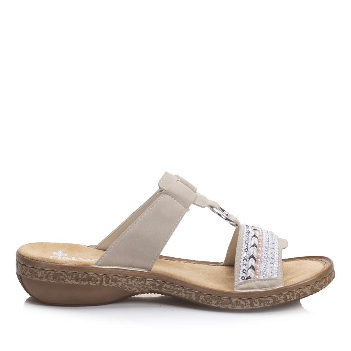 Tyto dámské nazouváky značky RIEKER jsou zajímavé svým třpytivým zdobením na předním pásku a kovovou aplikací spojující přední a zadní pásek. Z vnější strany mají boty zapínání na suchý zip, který slouží k nastavení šířce podle vašich chodidel. Ti z Vás, co si potrpí na kvalitu, jistě ocení, to že měkká stélka a svršek jsou vyrobeny z kvalitního materiálu.