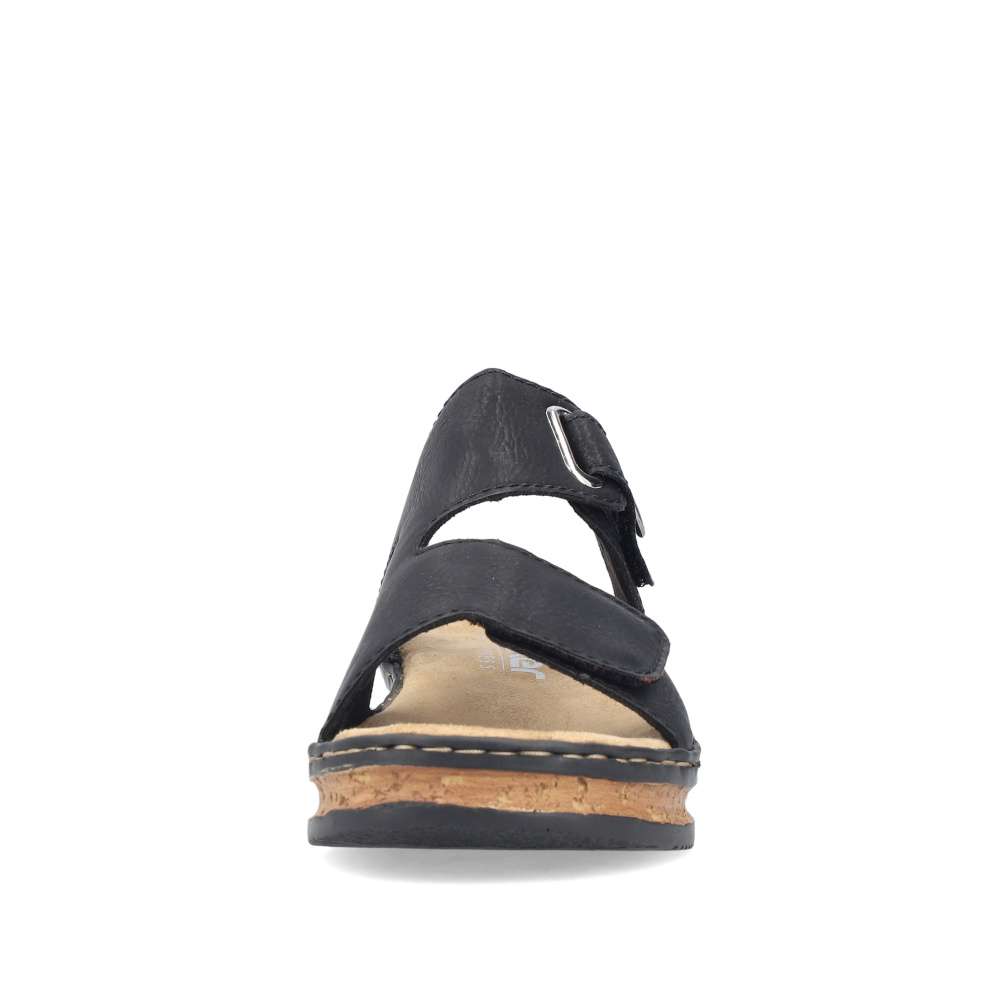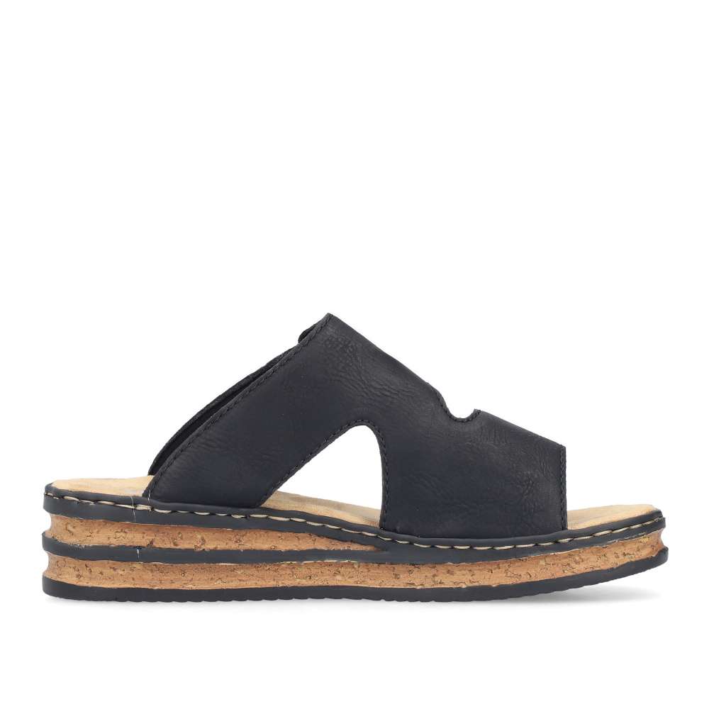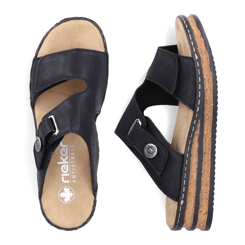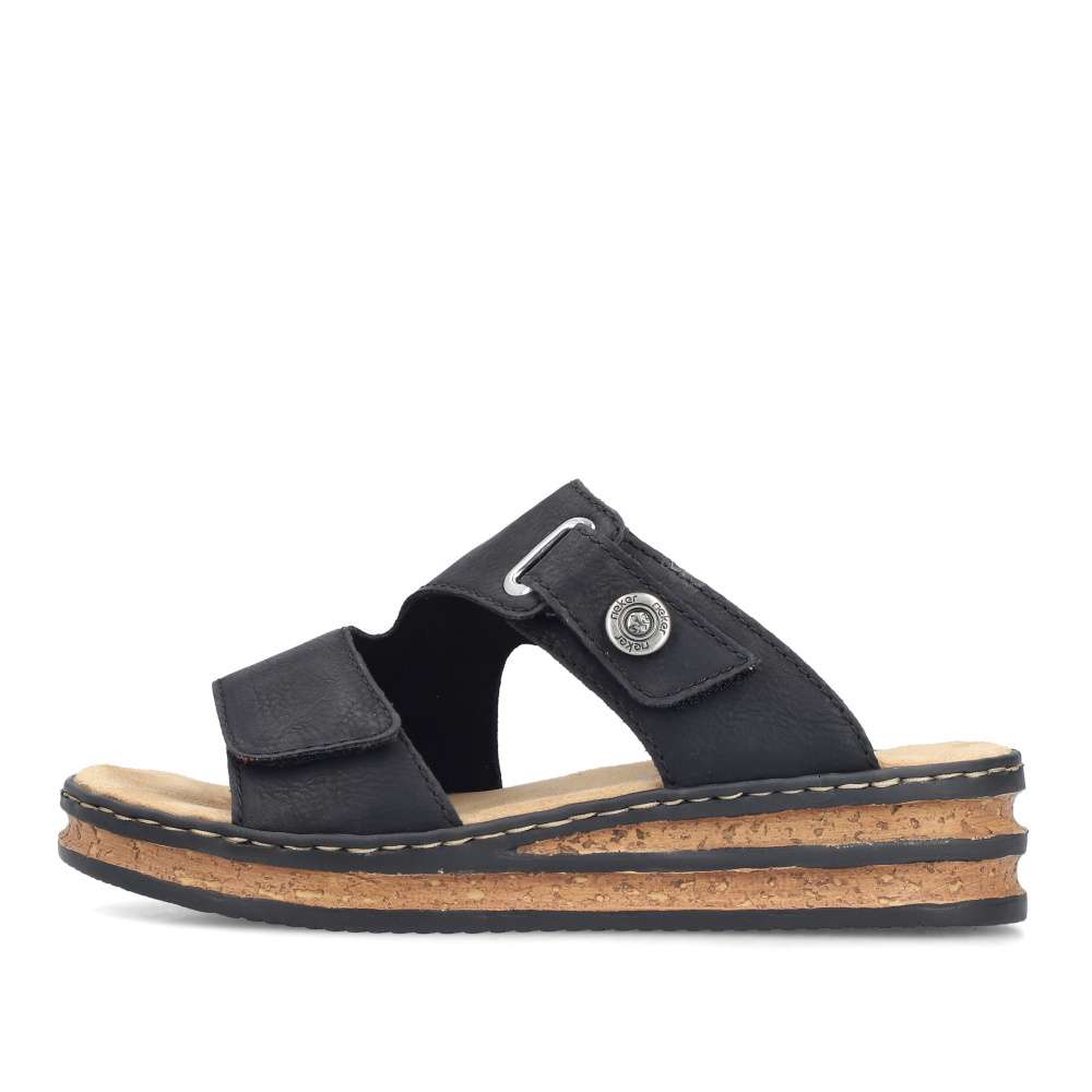 Nazouváky Rieker v působivě nadčasovém stylu jsou ideální volbou pro ženy, které hledají pohodlí a moderní design v jednom. Černý svršek dekorovaný logem značky působí univerzálně a snadno se kombinuje s různými outfity – od letních šatů až po ležérní kalhoty. Oba pásky svršku jsou opatřeny praktickým suchým zipem, díky kterému si nazouváky jednoduše přizpůsobíte podle tvaru chodidla. Příjemná textilní stélka poskytuje měkkost a komfort při každém kroku, zatímco vyšší klínový podpatek v trendy stylu opticky prodlouží postavu a zároveň zajistí stabilitu. Tento model je skvělou volbou pro každodenní nošení i letní příležitosti, kdy chcete vypadat stylově a cítit se pohodlně.