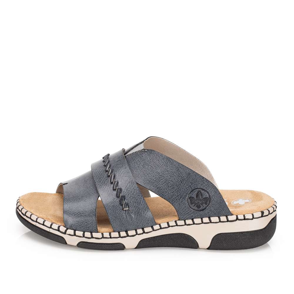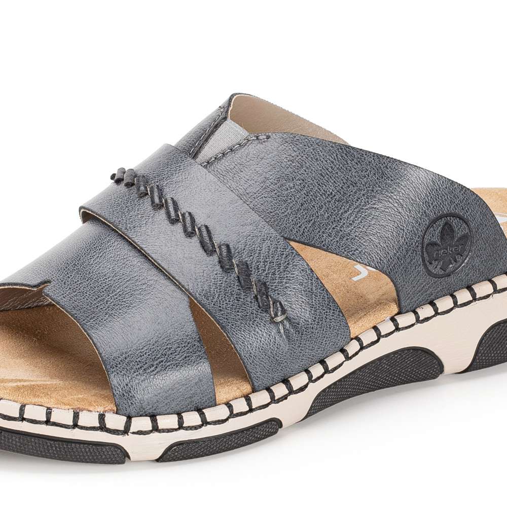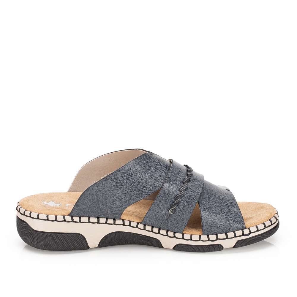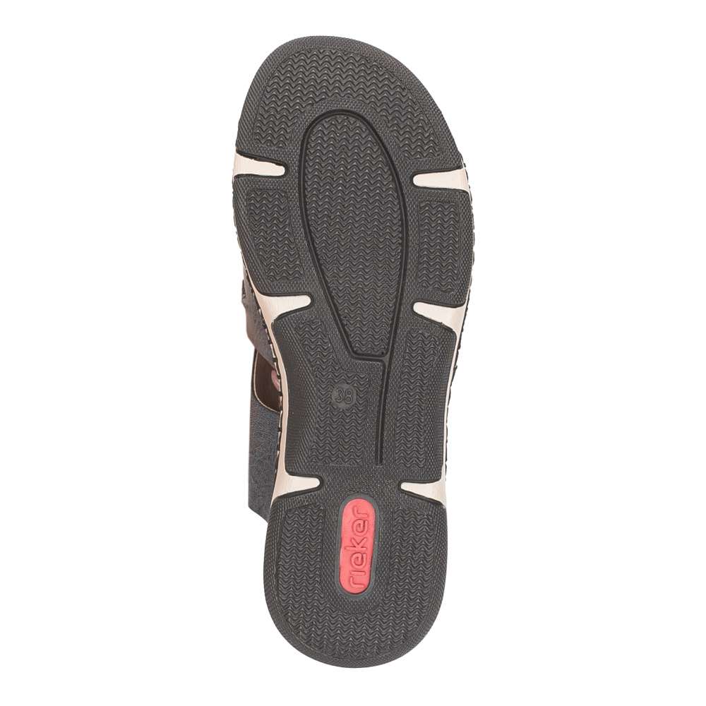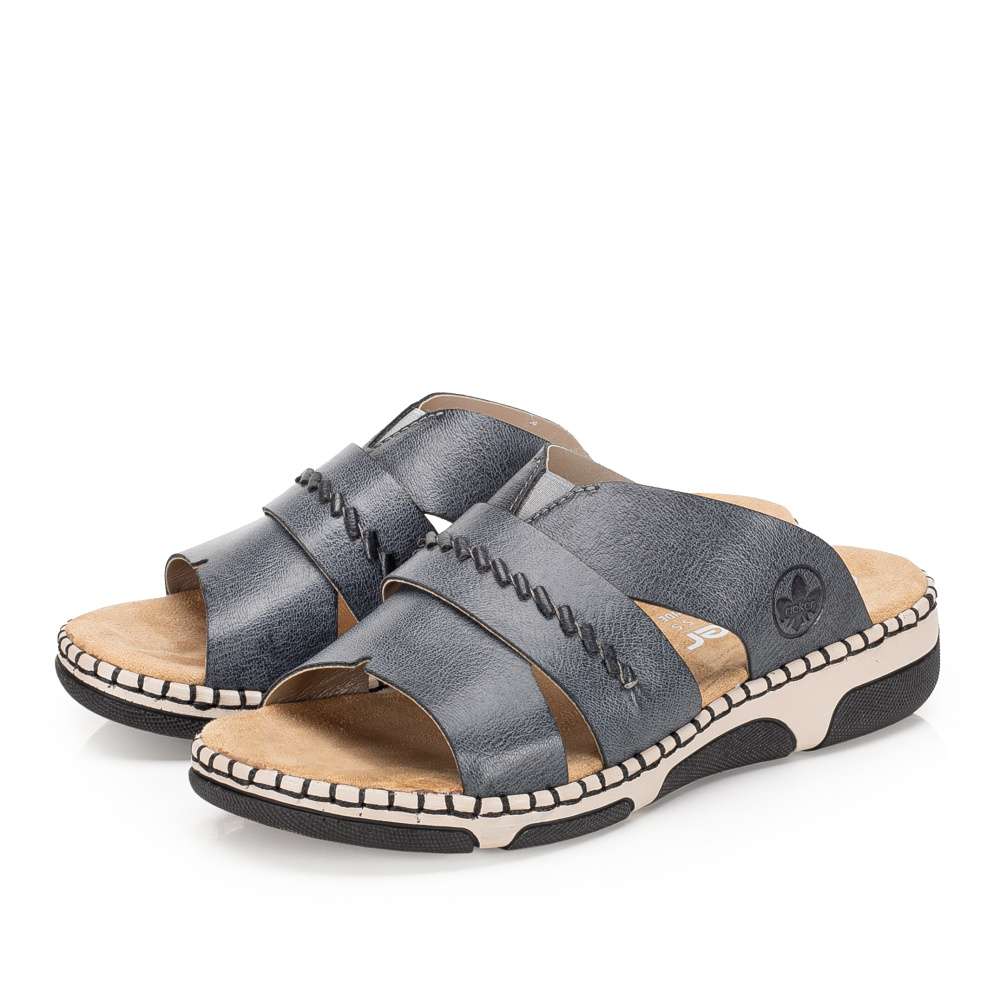 Nazouváky RIEKER jsou výjimečným kouskem, který si okamžitě získá pozornost a stane se oblíbenou součástí vašeho letního šatníku. Spojují v sobě moderní módní vzhled a maximální pohodlí díky kvalitnímu zpracování a promyšlenému střihu, který se přizpůsobí vašim potřebám během celého dne. Široké nártové pásky jsou prakticky řešeny – decentní přeložení doplňuje všitá pružná gumička, která zajišťuje lepší přizpůsobení chodidlu a příjemný pocit při chůzi. O komfort se stará měkká textilní stélka, která jemně tlumí každý krok a poskytuje pohodlí i při delším nošení. Nárazy tlumící podešev s originálním designem dodává pantoflím moderní, stylový charakter. Každý krok se nazouváky RIEKER je spojením moderního designu a dokonalého komfortu, což činí tento model nepostradatelným doplňkem každodenního šatníku.