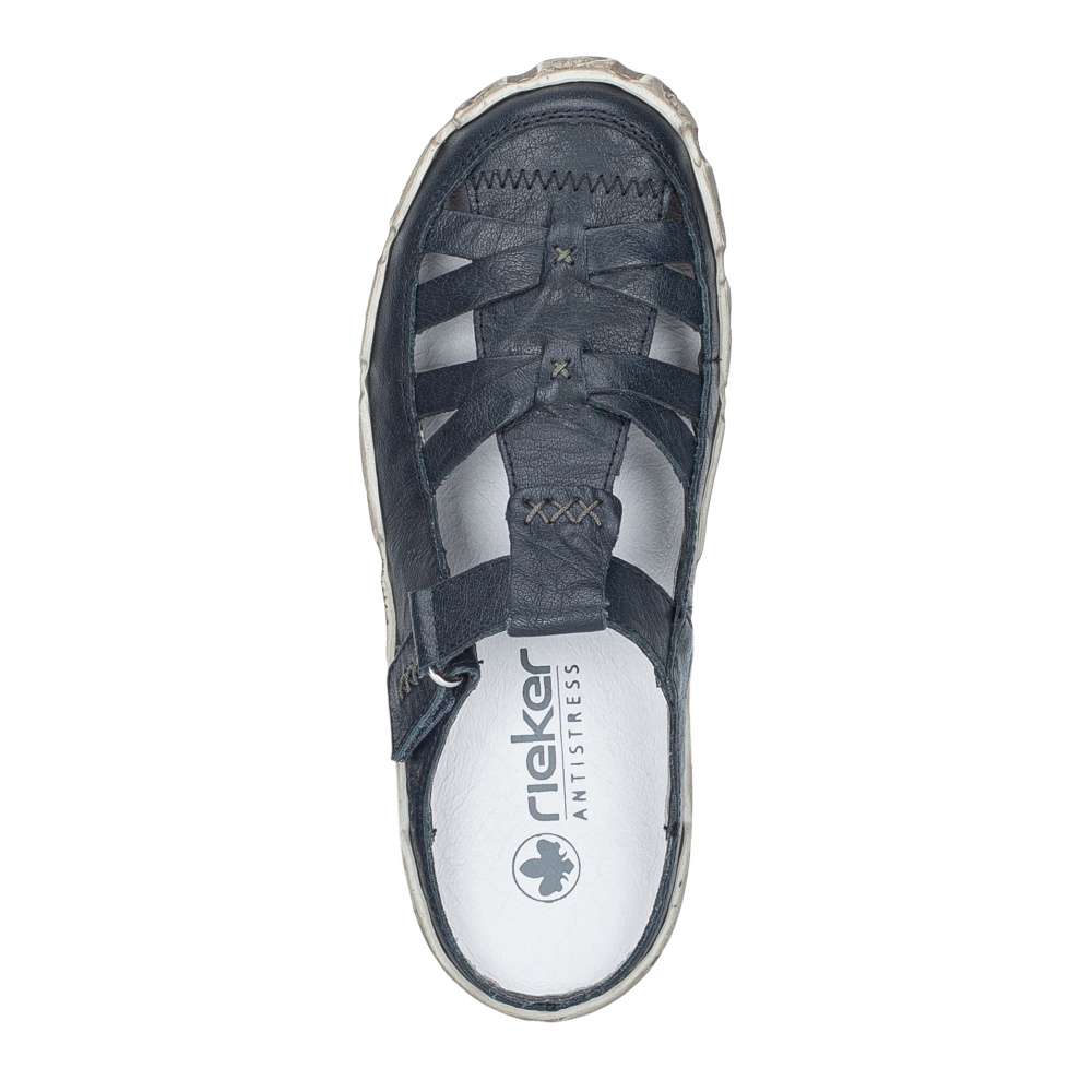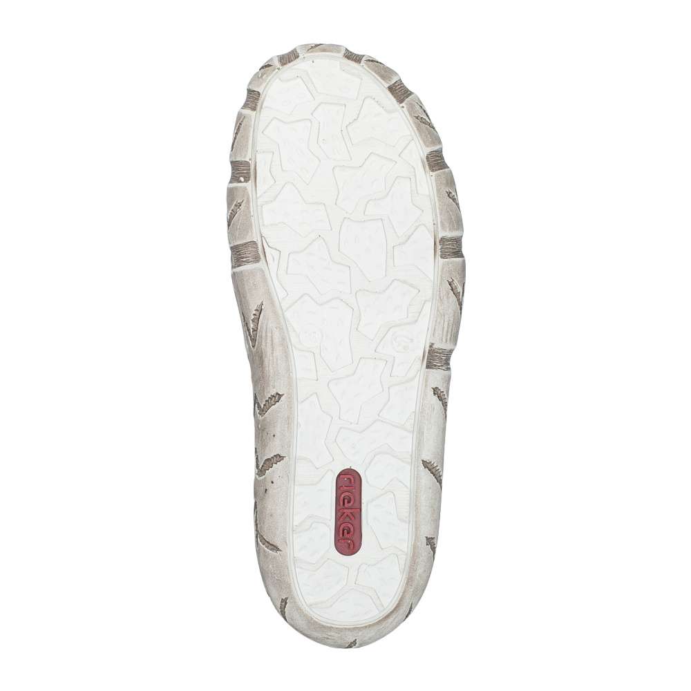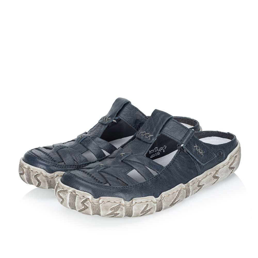 Tento model nazouváků značky RIEKER Vám bude dělat skvělého společníka v letních dnech. Nazouváky jsou vzdušnou botou, která je ozdobena prošíváním a vytlačeným logem značky. Páskem přes nárt si můžete pohodlně obuv regulovat dle Vašich požadavků. Pro dokonalý došlap i při dlouhodobé chůzi je stélka vyrobena z koženého materiálu. Vyvýšené okraje podešve slouží proti okopaní a je vyrobena s technologií Antistress. Tento model skvěle doplní Vaše letní outfity.