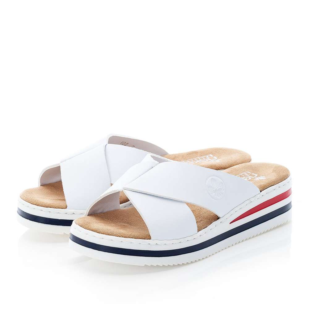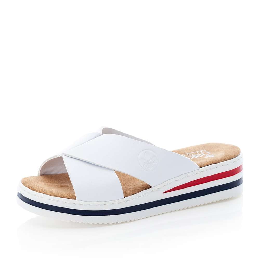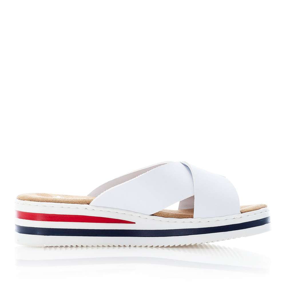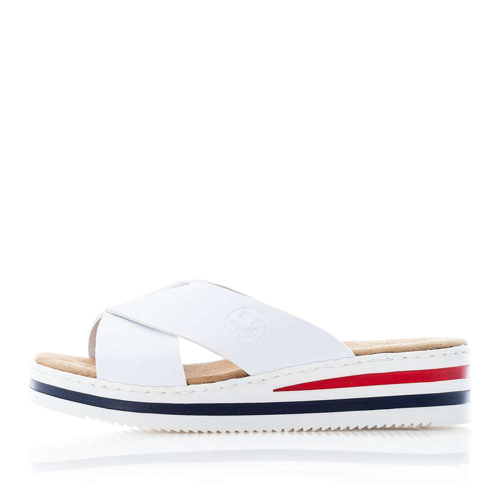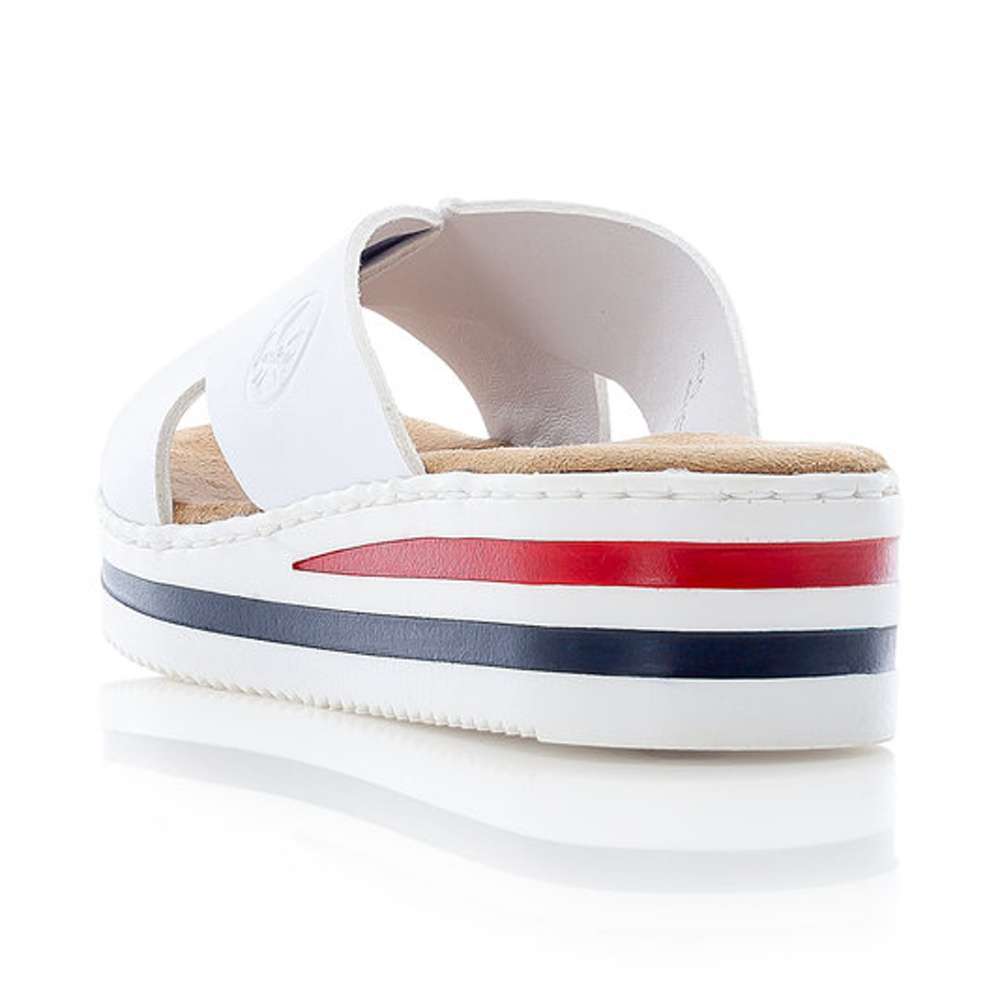 Nádherné letní nazouváky s kontrastní platformou a překříženými páskami v části nártu, které jsou doplněny logem značky Rieker. Obuv si jen pohodlně nazujete a můžete vyrazit. Kvalitní měkká stélka Vám zaručí pohodlí a komfort i při celodenním nošení. Tyto mírně vyvýšené nazouváky si jednoduše zamilujete pro jejich designový neotřelý vzhled.