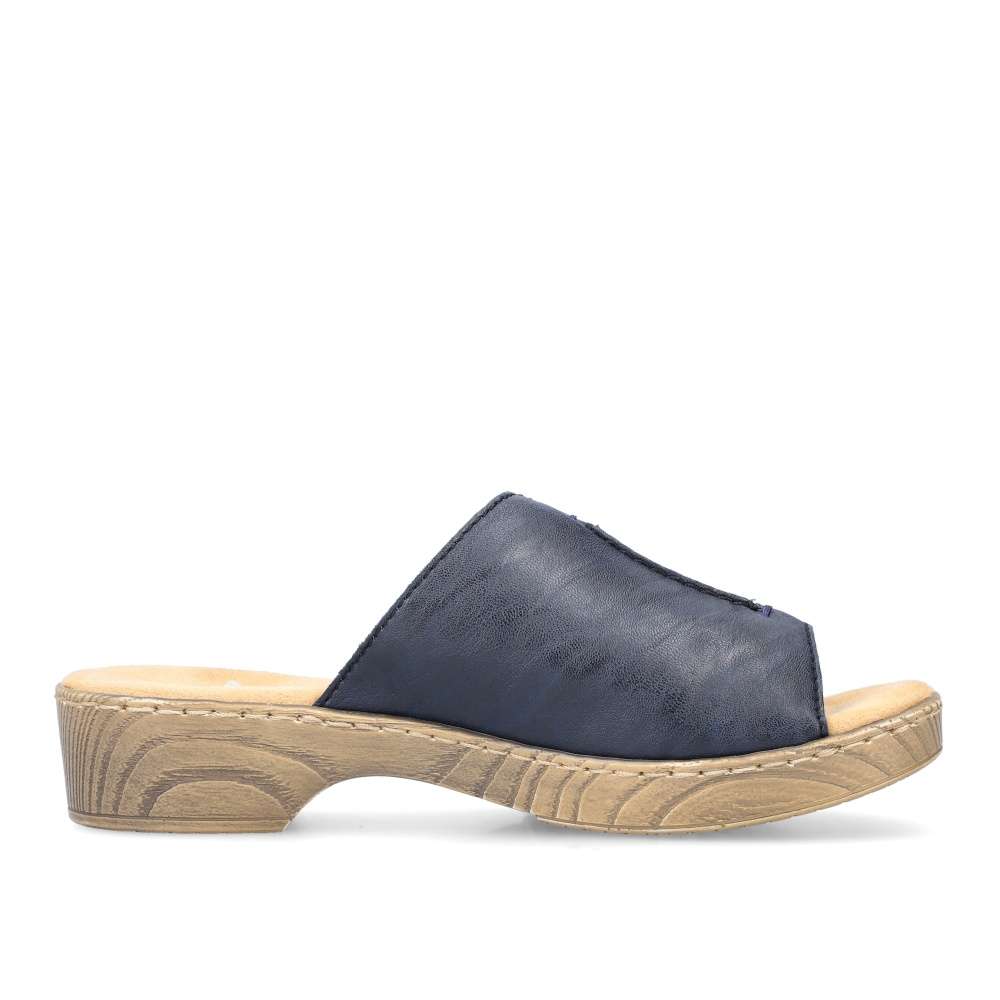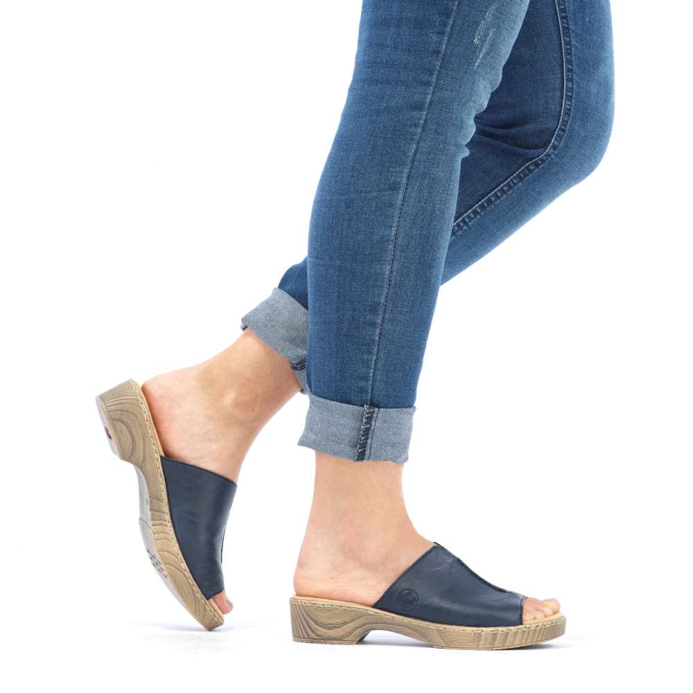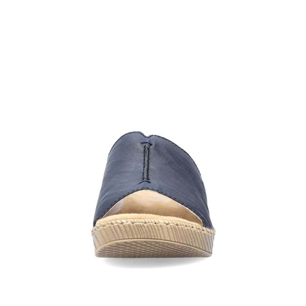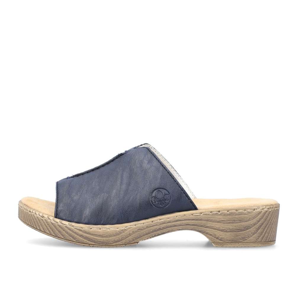 Tyto dámské nazouváky RIEKER Vás na první pohled upoutají svou barvou. Modrý široký pásek přes nárt je zdobný výrazným švem na nártu a vytlačeným logem značky. Měkká stélka a vyšší podešev dodávají nezbytný komfort a díky tomu tento model skvěle doplní Vaše letní outfity ať již na cestě do práce či na procházce městem.