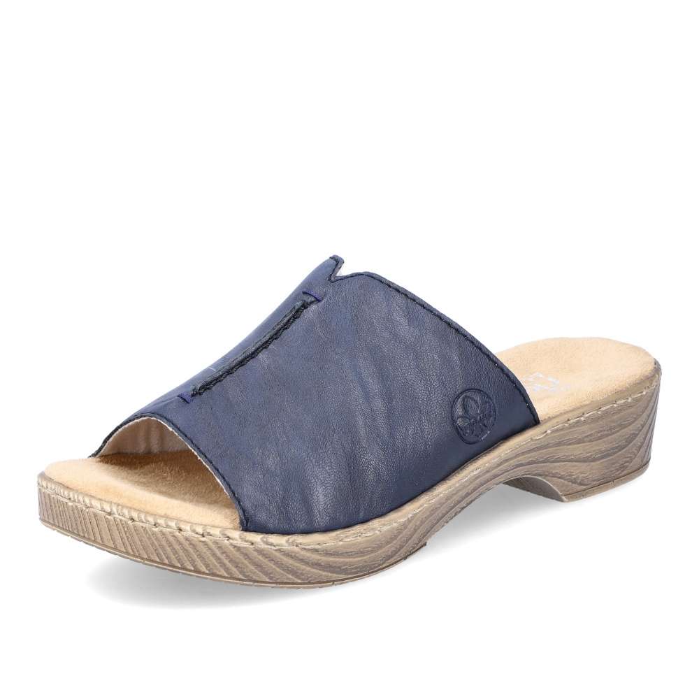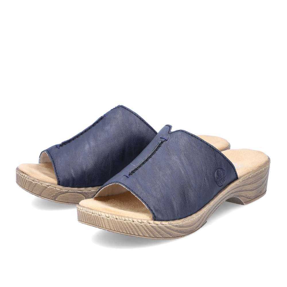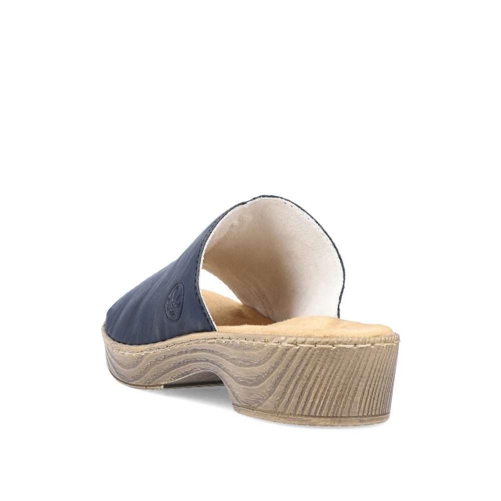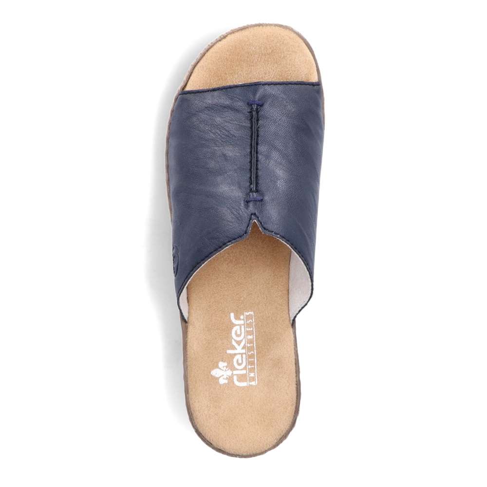 Tyto dámské nazouváky RIEKER Vás na první pohled upoutají svou barvou. Modrý široký pásek přes nárt je zdobný výrazným švem na nártu a vytlačeným logem značky. Měkká stélka a vyšší podešev dodávají nezbytný komfort a díky tomu tento model skvěle doplní Vaše letní outfity ať již na cestě do práce či na procházce městem.