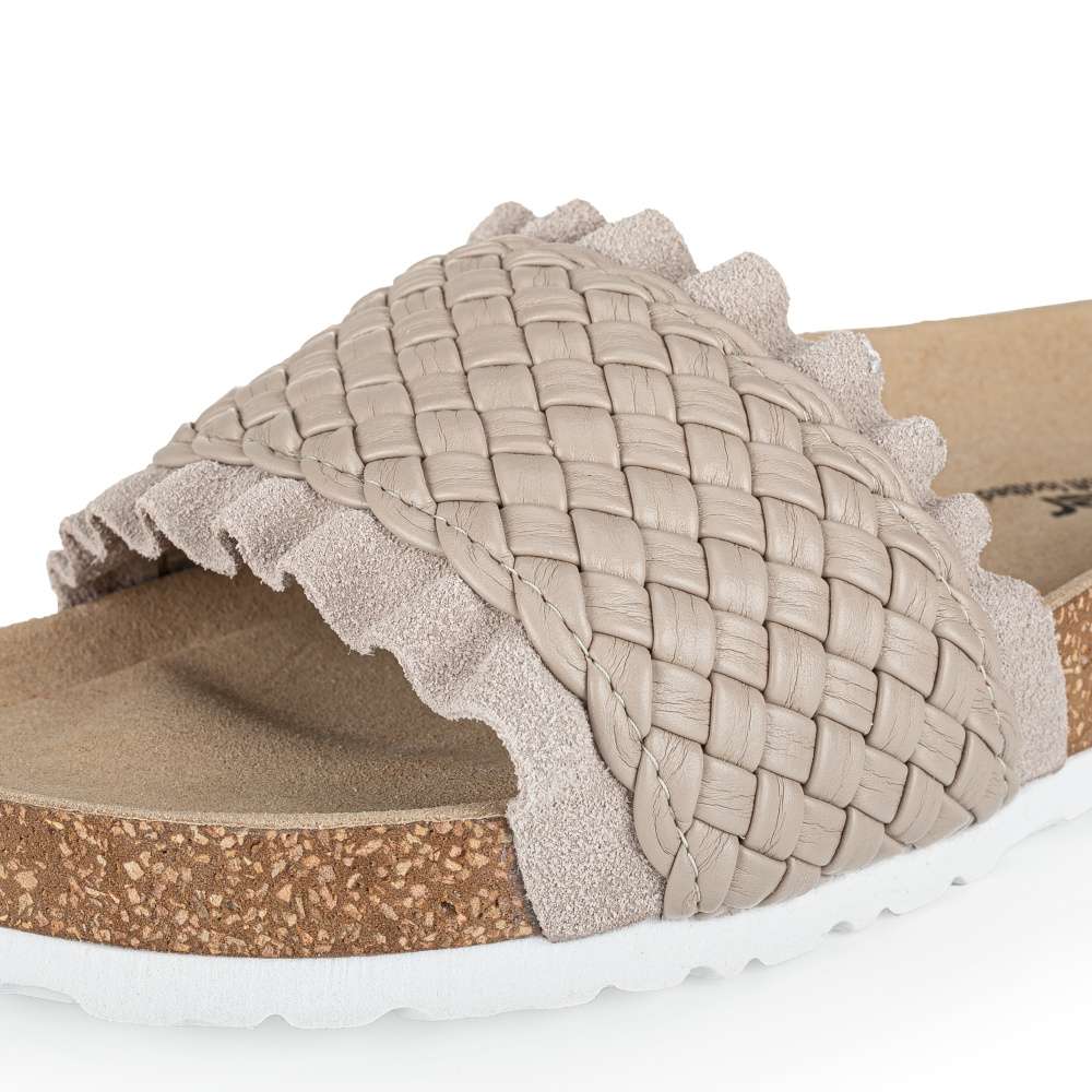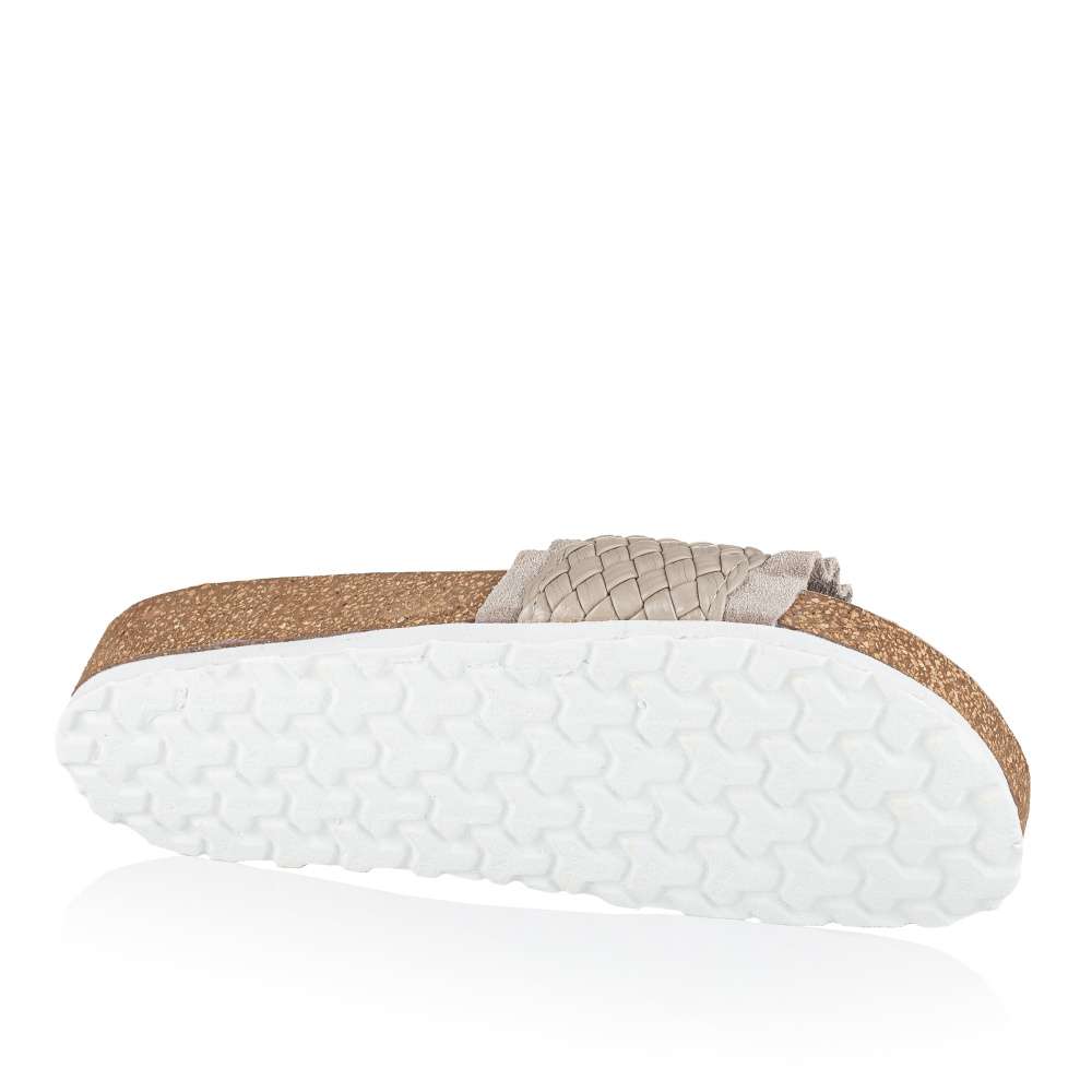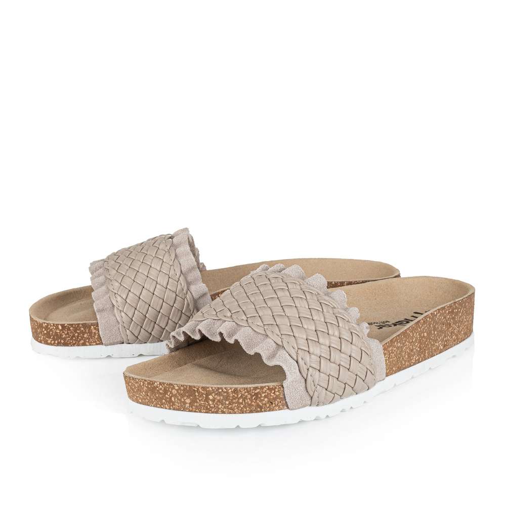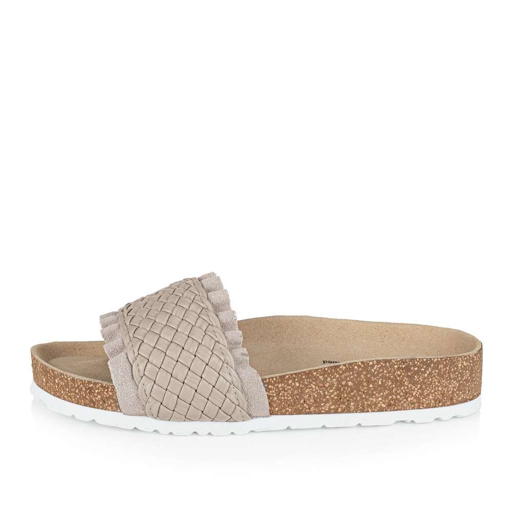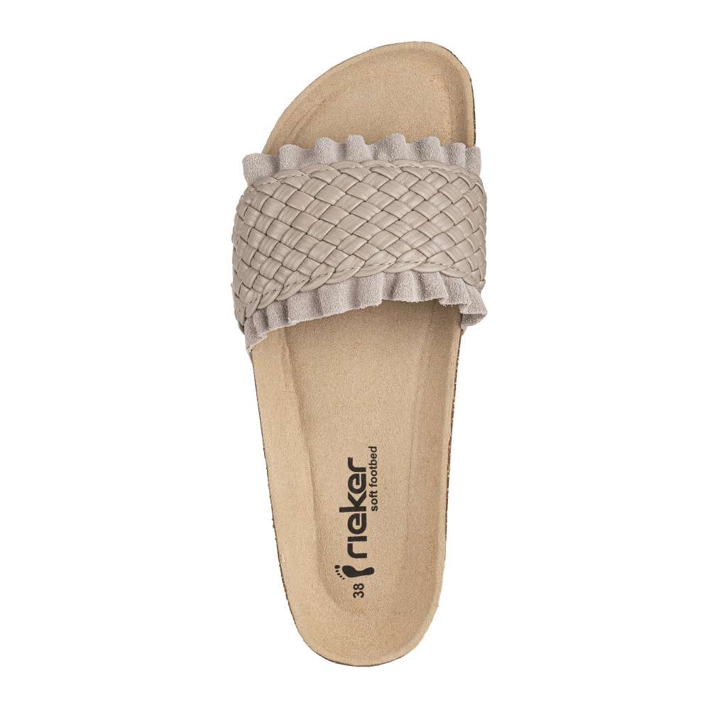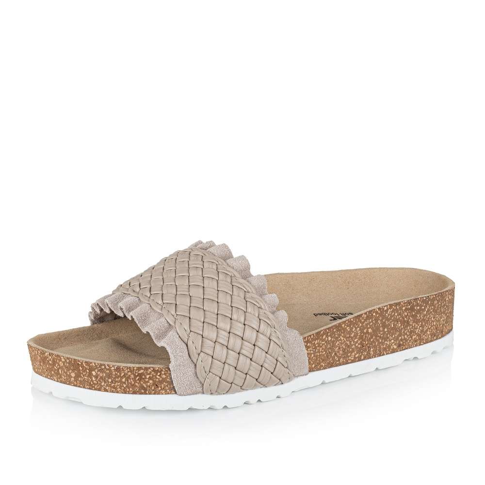 Elegantní dámské nazouváky RIEKER budou Vaším vynikajícím celodenním parťákem. Široký nártový pásek splétaného vzoru je po okrajích ozdoben výraznou krajkou. Stélka je pro Vaše pohodlí na každém kroku ergonomicky tvarovaná a podešev barevně dolaďuje celkový vzhled obuvi. Nazouváky snadno sladíte jak se sukněmi, tak ale i s kalhoty či kraťasy.