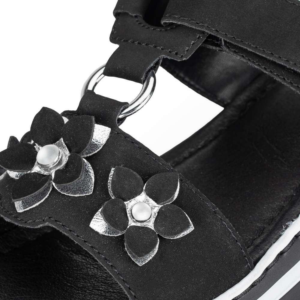 Dámské pantofle značky RIEKER. Botičky mají stylové pásky na suchý zip a ozdobnou stříbrnou sponu uprostřed nártu a elegantní ozdobné stříbrno-černé 3D květiny. Boty mají vzorovaný klínek. Uvnitř obuvi naleznete koženou měkkou stélku. Podešev vybavená technologii Antistress Vám zajisti dokonalý každý krok. Tyto botky budou dokonalá dvojka s kalhotami i sukní. Technologie: Antistress – podešev je díky této technologii lehká, flexibilní, absorbuje nárazy při došlapu a snadno se přizpůsobí každé noze.