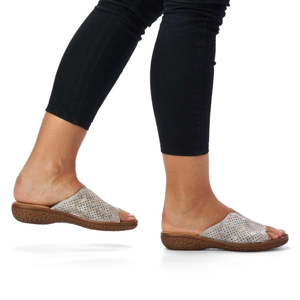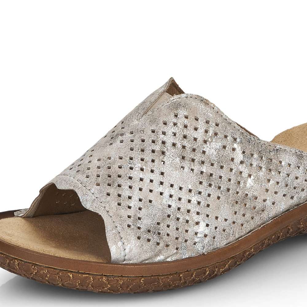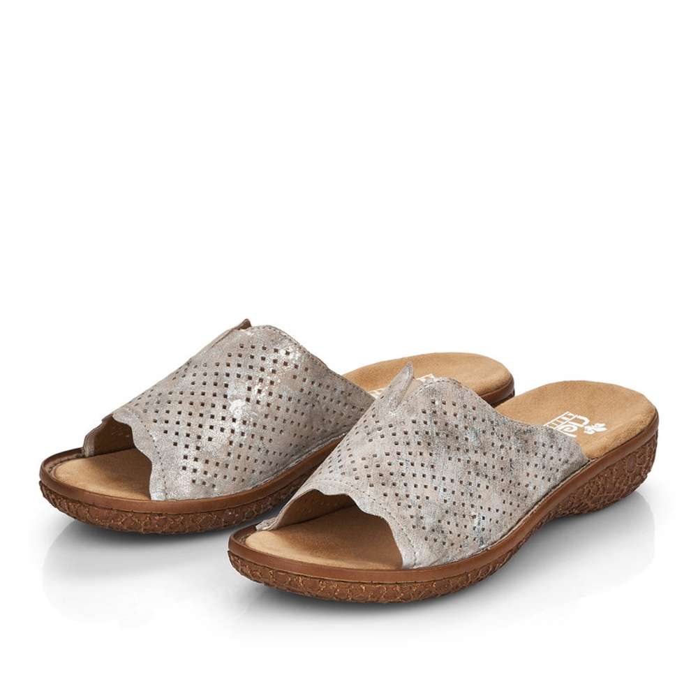 Dámské nazouváky značky RIEKER, které pouze nazujete a můžete jít. Zdobnými prvky je perforace po celém svršku a vlnkové zakončení. Jsou vyrobeny technologií Antistress díky níž jsou lehké, ohebné a pohlcují nárazy při každém Vašem došlapu. Obuv se skvěle hodí na každodenní nošení a doladí každý Váš outfit. Technologie: Antistress – podešev je díky této technologii lehká, flexibilní, absorbuje nárazy při došlapu a snadno se přizpůsobí každé noze.