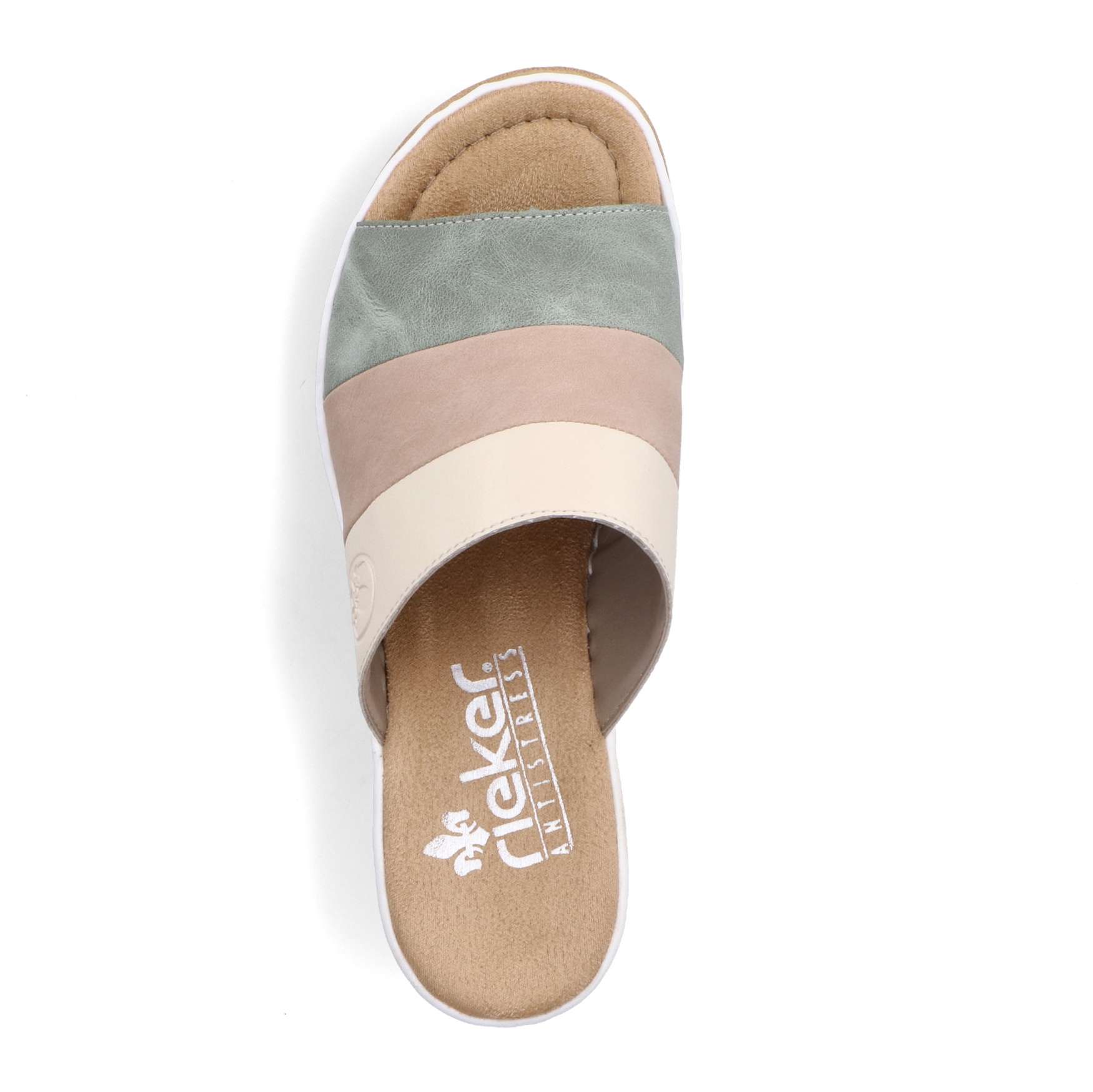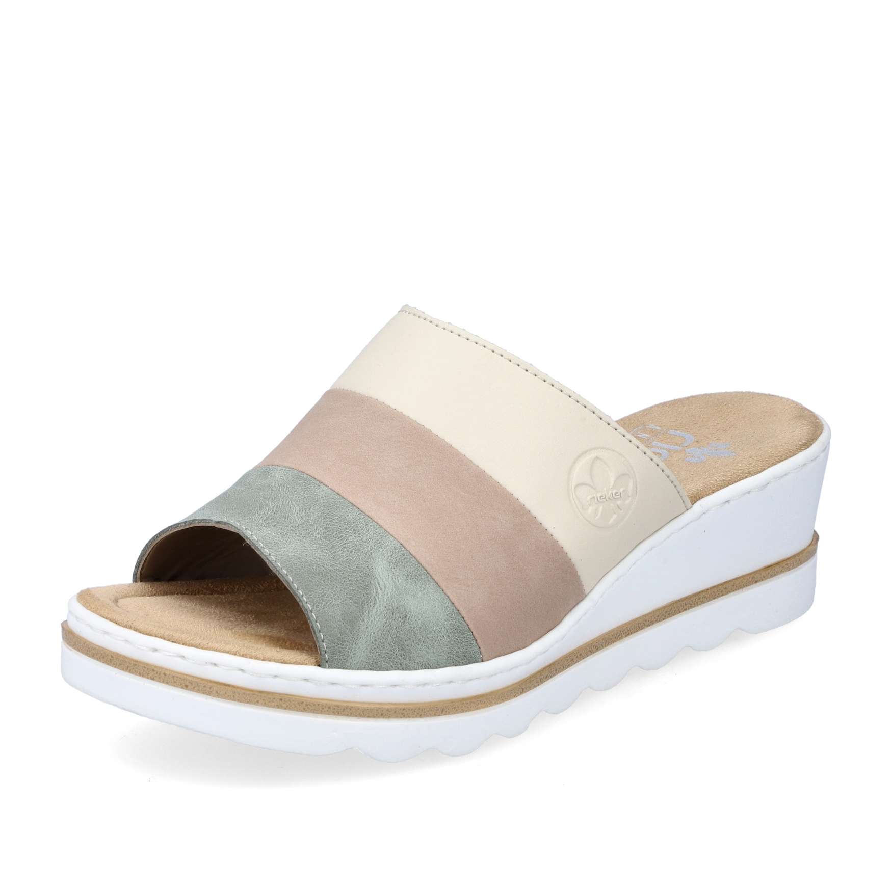 Dámské nazouváky RIEKER se širokým nártovým páskem budou pro svou jednoduchost pro Vás tou správnou volbou. Nártový pásek je tvořen zajímavou kombinací barev. Zvýšená podešev a měkká stélka Vám dodají příjemný pocit při každém kroku. Tento model se Vám bude hodit jak k dlouhé sukni, tak i k šatům. Technologie: Antistress – podešev je díky této technologii lehká, flexibilní, absorbuje nárazy při došlapu a snadno se přizpůsobí každé noze.
