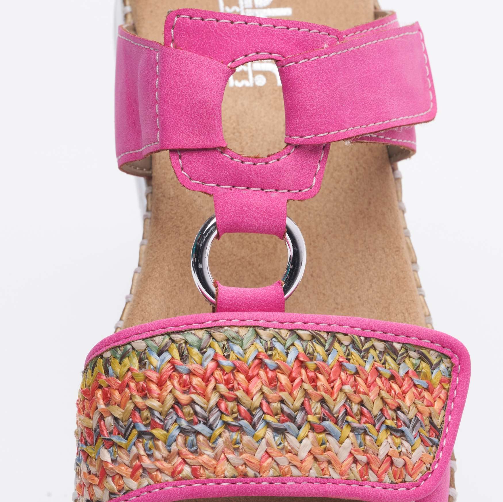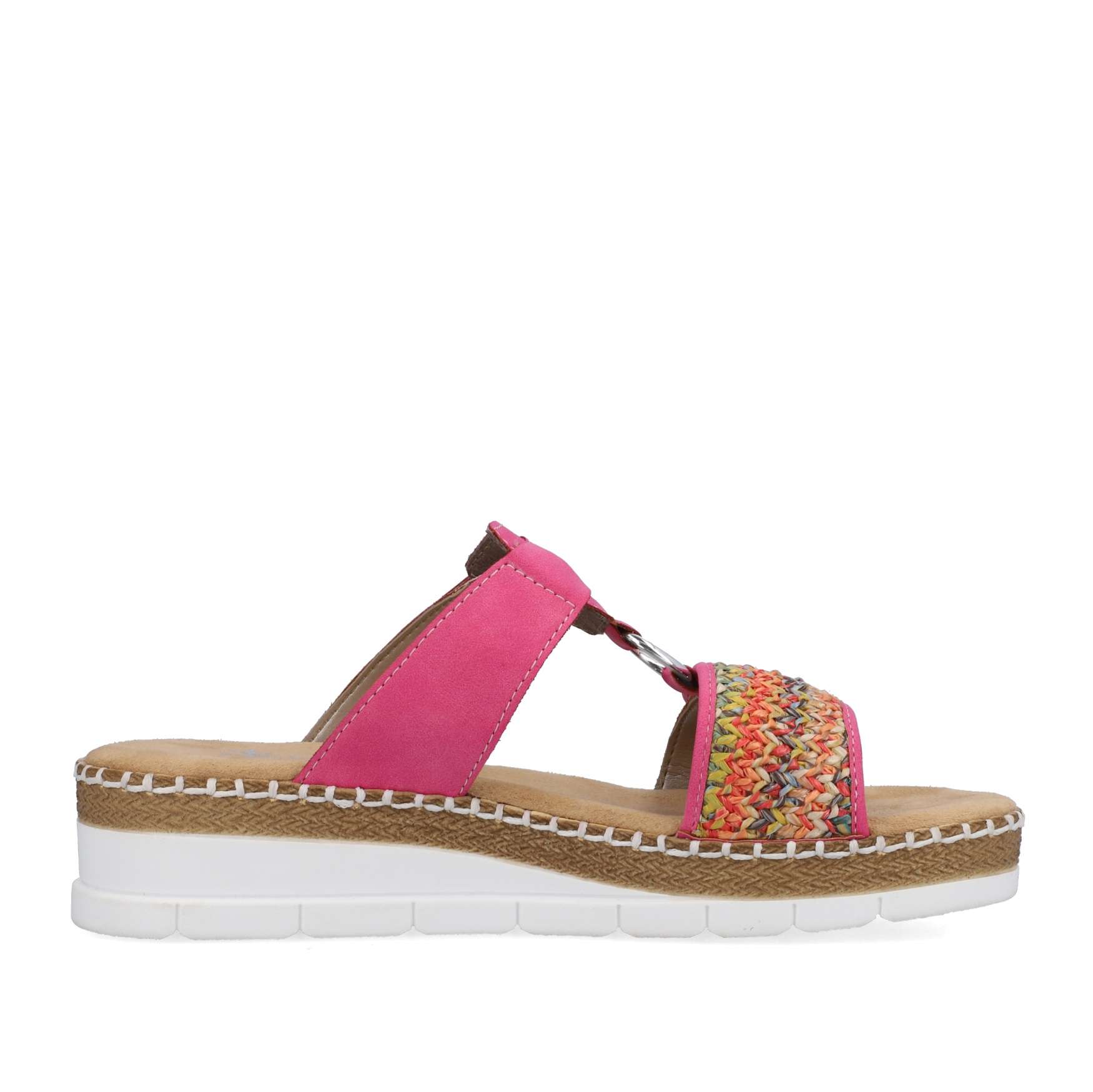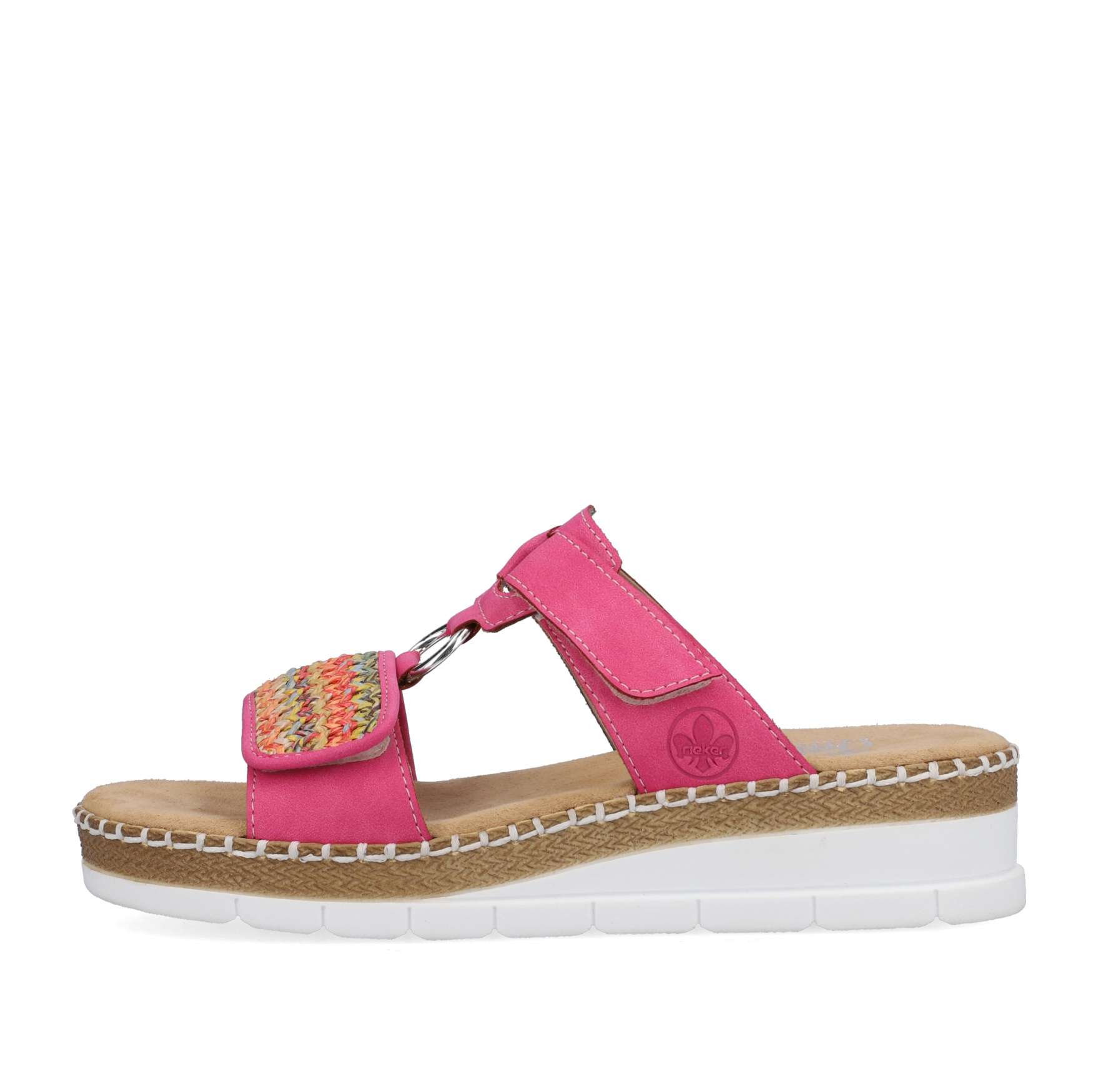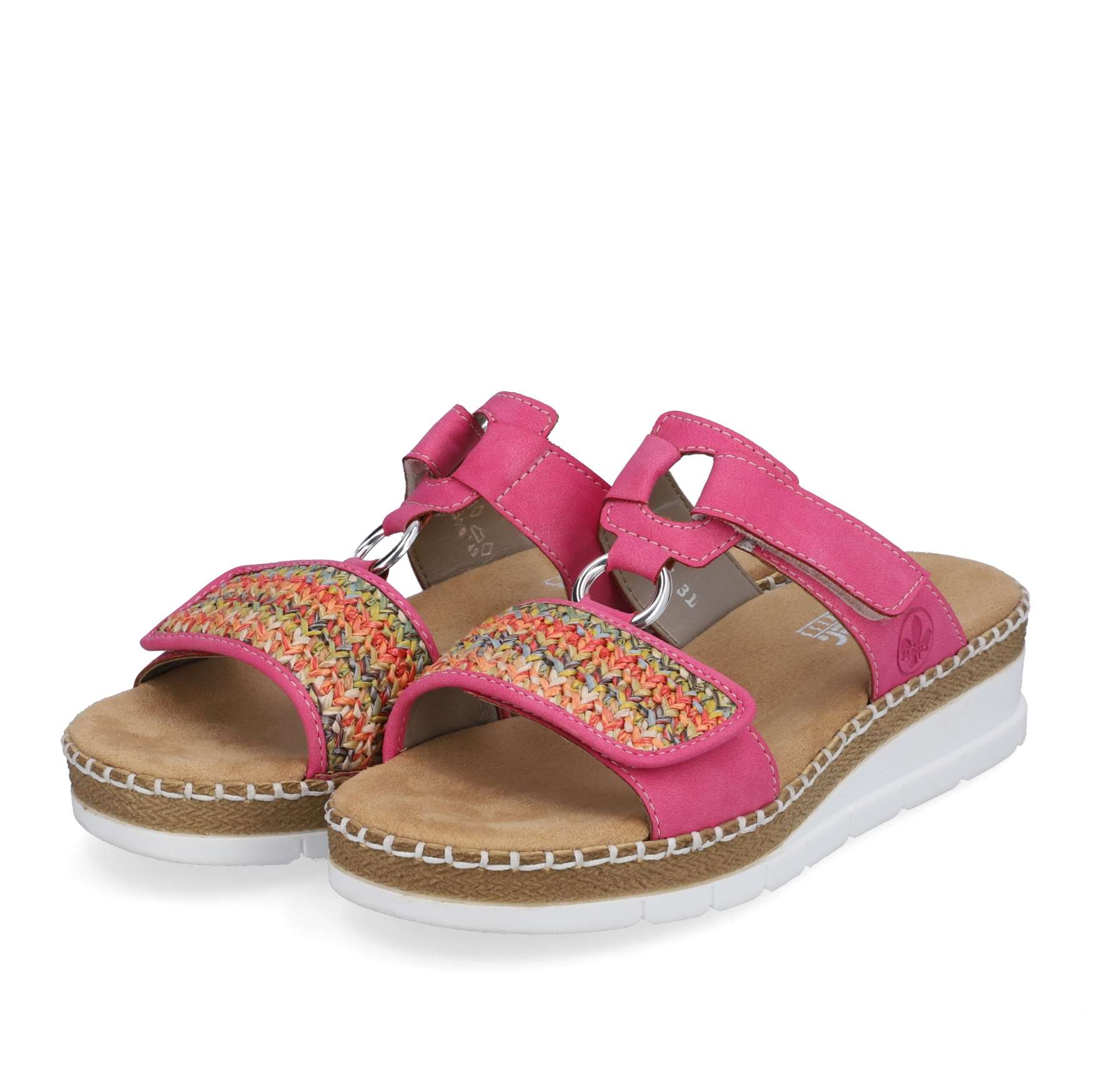 Nepřehlédnutelný model pantoflí značky RIEKER bude vynikat na Vašich opálených nohou. Svršek má přední pásek zdobený pleteným vzorem, stříbrná aplikace spojuje přední a zadní část, kterou lze díky zapínání na suchý zip nastavit podle potřeb. Měkká stélka je vyrobena z příjemného materiálu a podešev svojí kontrastní barvou a prošitím, které je pro tuto značku typické, doladí celkový vzhled obuvi. Je jen na Vás, jestli se v nich vydáte na procházku městem nebo do práce, vždy budou skvělým doplňkem.