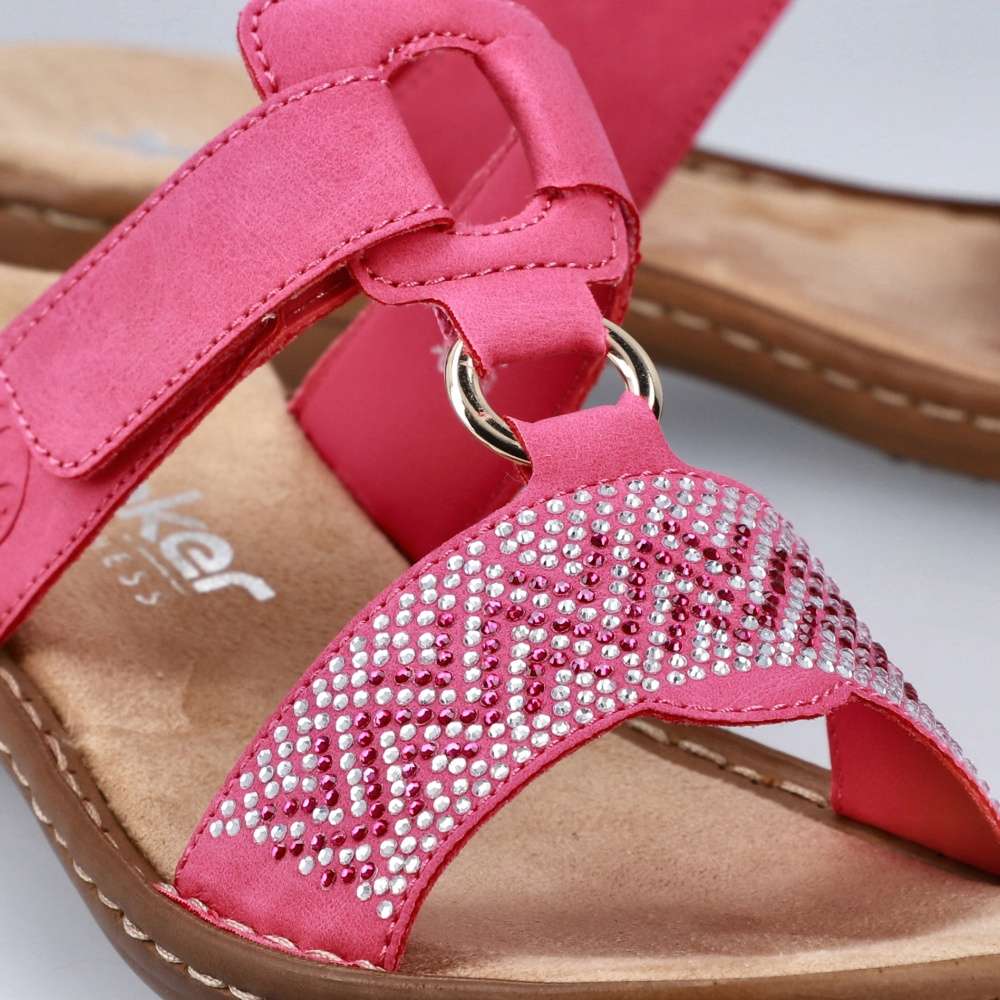 Ozdobte své kroky neodolatelnou elegancí! Pantofle Rieker spojují působivou barvu s jemnými detaily pro vytvoření unikátního módního dojmu. Drobné kamínky v přední části přidávají lesk a šarm, zatímco kulatá aplikace na nártu tvoří dokonalý vizuální doplněk. S praktickým suchým zipem umístěným na nártu pásku si přizpůsobíte obvod svým potřebám, měkká stélka a flexibilní podrážka dokreslují komfort a lehkost chůze. Tento model značky Rieker spojuje eleganci s pohodlím! Technologie: Antistress - podešev je díky této technologii lehká, flexibilní, absorbuje nárazy při došlapu.