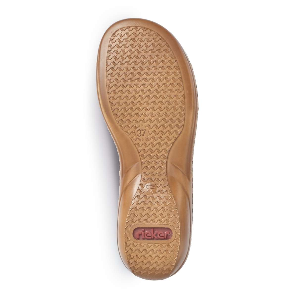 Dámské nazouváky značky RIEKER, s perforovaným zdobným páskem ve přední části a kovovým spojovacím kroužkem. Díky suchému zipu v horní části si botu můžete utáhnout přesně podle Vašich představ. Měkká stélka zajistí celodenní komfort a podešev o výšce cca 3,5 cm je vyrobena z velmi kvalitního syntetického materiálu. Tento model můžete využít na procházky parkem s přáteli. Technologie: Antistress – podešev je díky této technologii lehká, flexibilní, absorbuje nárazy při došlapu a snadno se přizpůsobí každé noze.