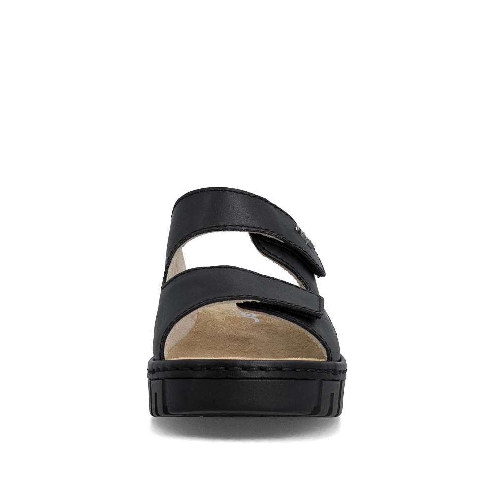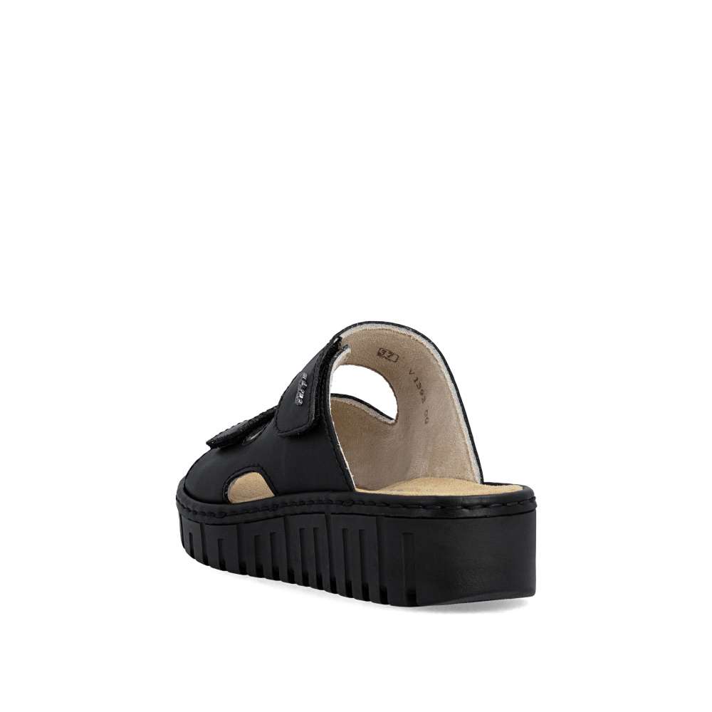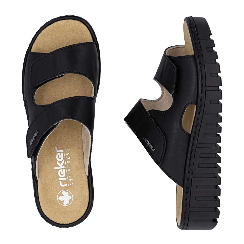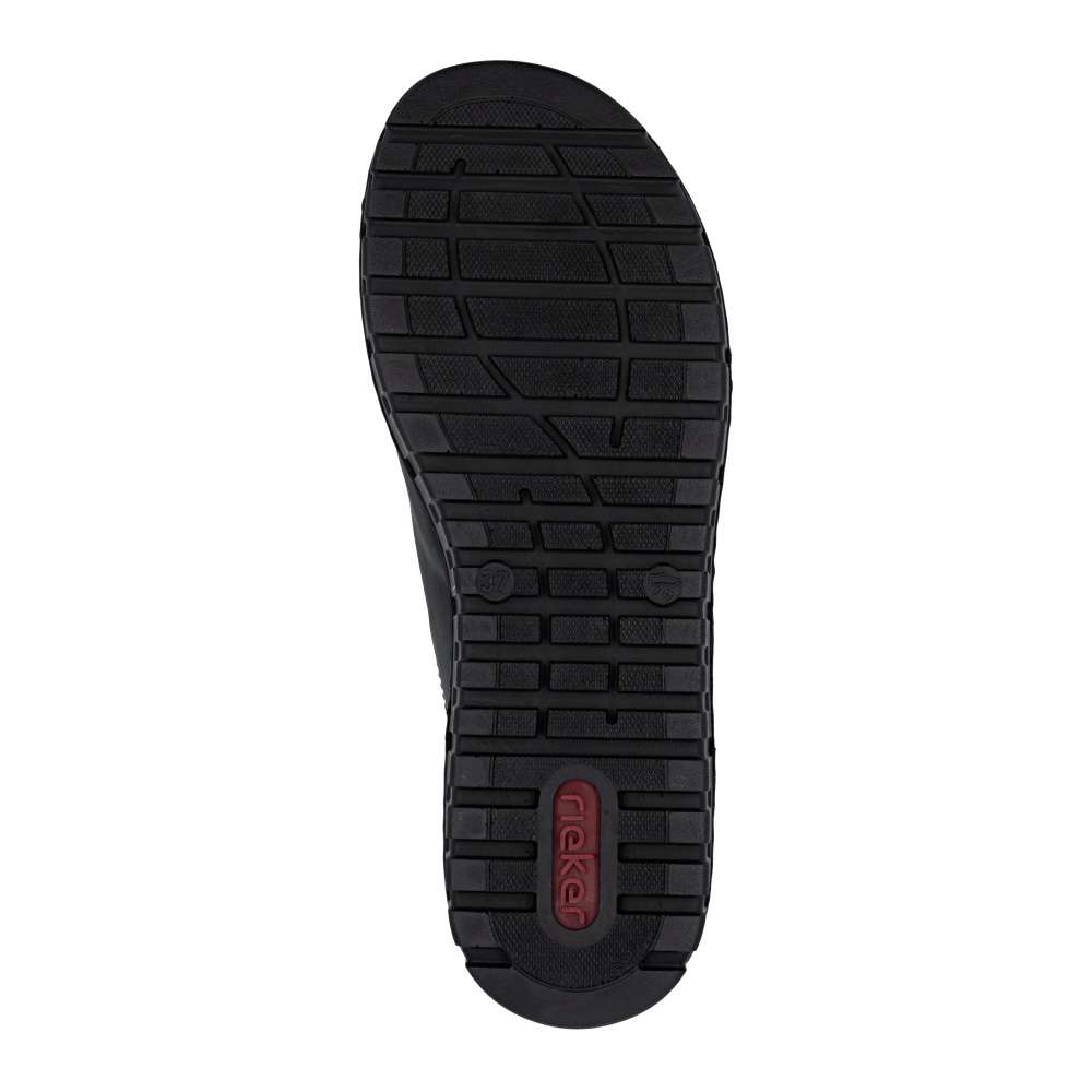 Černý svršek pantoflí RIEKER s decentním logem značky působí nadčasově a snadno se kombinuje s každým outfitem. Tento model je ideální volbou jak pracovní, tak domácí obuv. Dva nastavitelné pásky se suchým zipem zajistí dokonalé přizpůsobení noze a maximální pohodlí již od prvního kroku. Měkká textilní stélka poskytuje příjemný pocit i během celodenního nošení, zatímco vyšší komfortní podešev efektivně tlumí nárazy při chůzi. Tento model pantoflí bude ideální volba pro ženy, které nechtějí dělat kompromisy mezi stylem a komfortem.