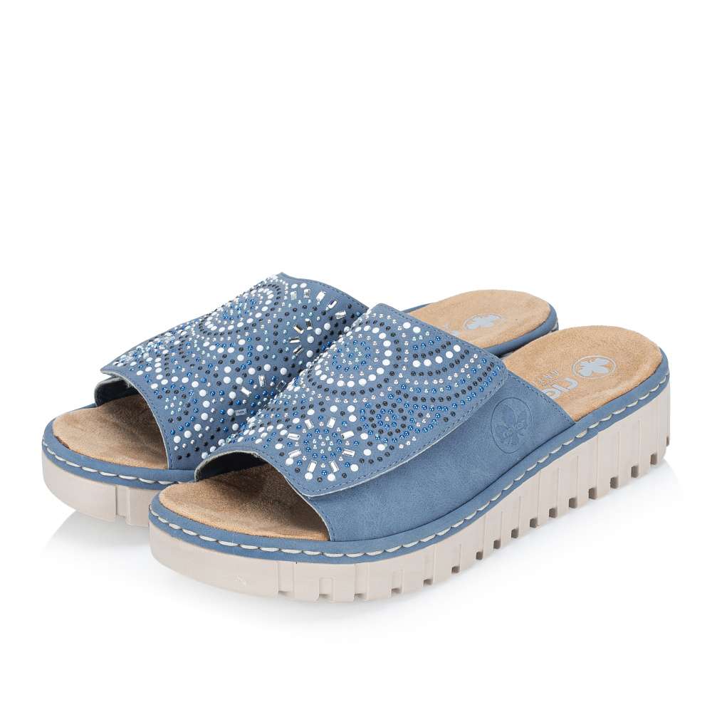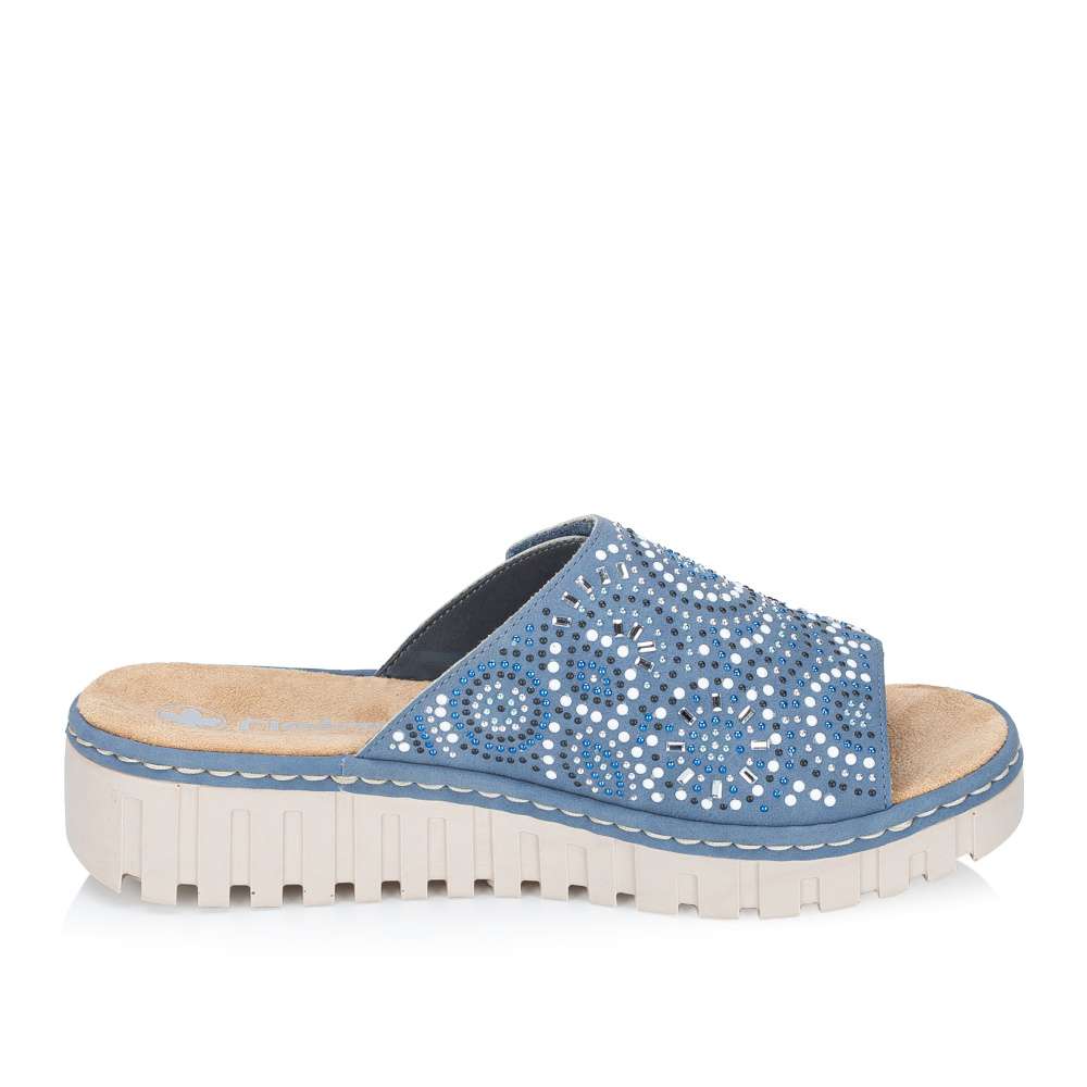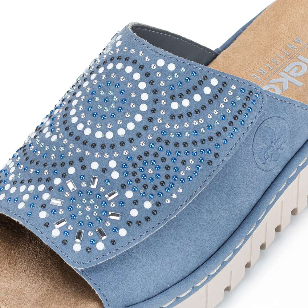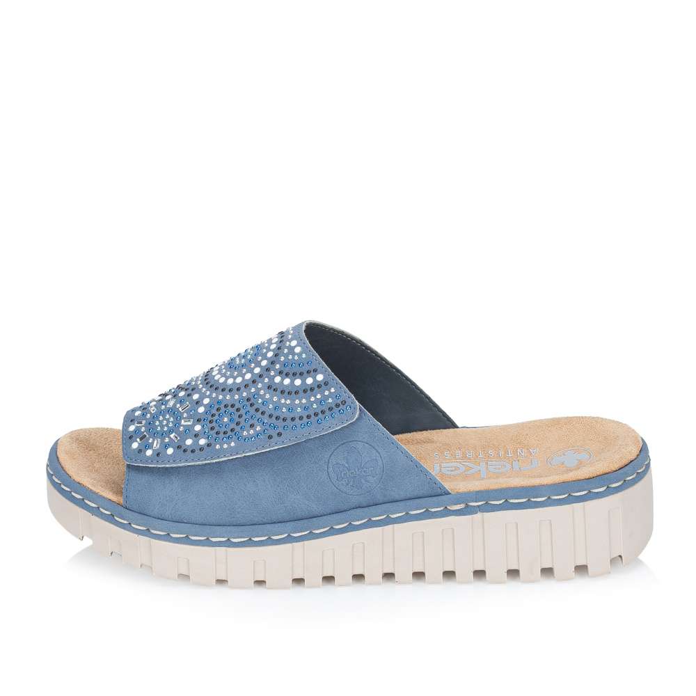 Dámské nazouváky Rieker svým originálním vzhledem zvýrazní Vaši jedinečnost a budou oblíbeným letním modelem. Široký nártový pásek lze upravit díky suchému zipu a vytvořit si dokonalý komfort při nošení. Stélka je z příjemného materiálu pro dokonalý pocit pohodlí každým nášlapem na ni a podešev efektivně tlumí nárazy při chůzi. Je jen na Vás, jestli se v nich vydáte na procházku městem nebo do práce, vždy budou skvělým doplňkem.