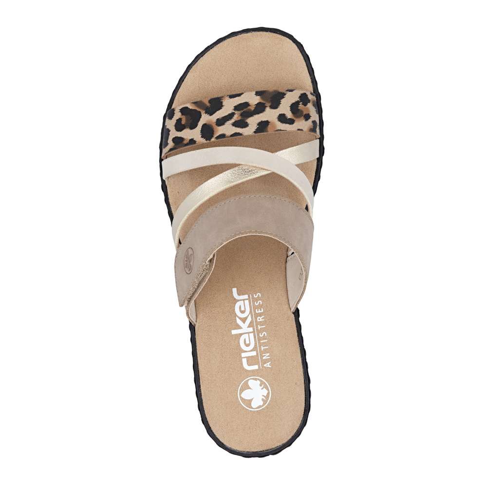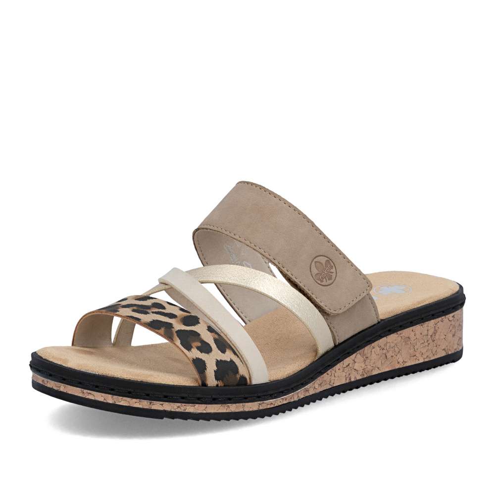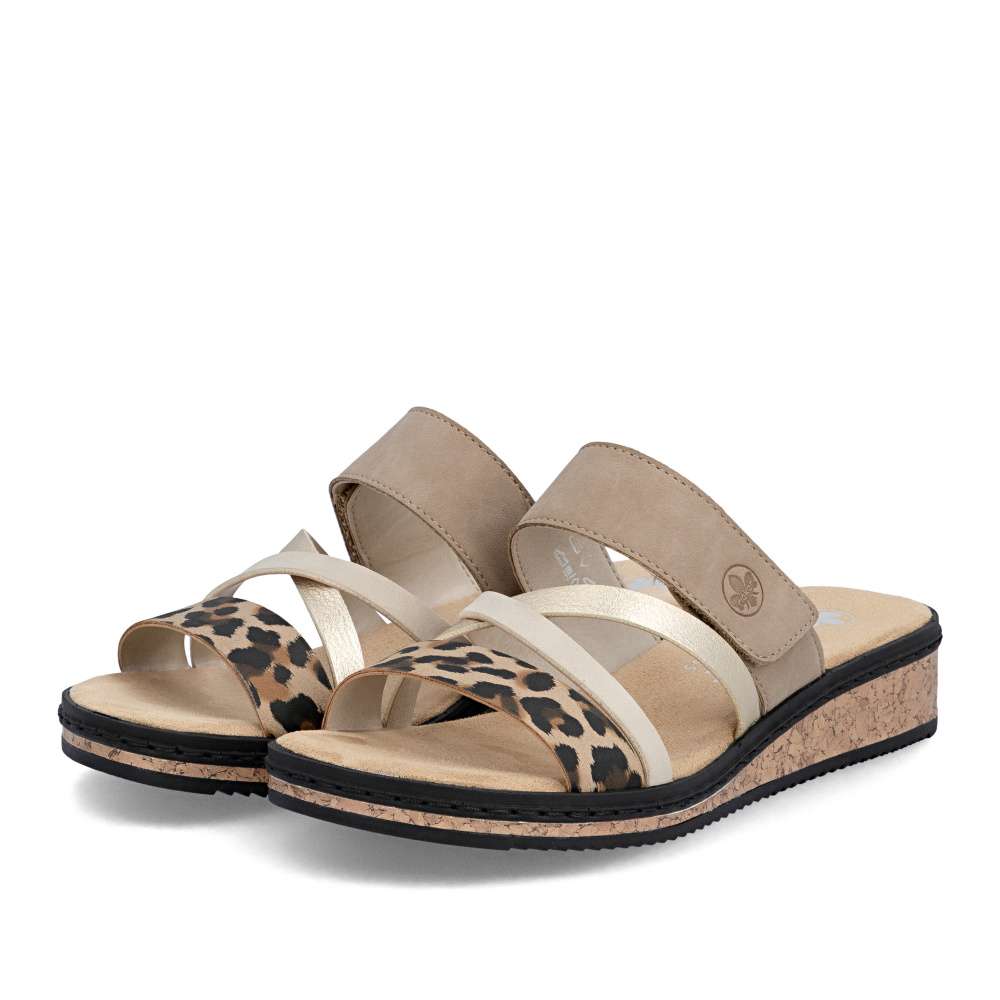Unikátní pantofle RIEKER okouzlí již na první pohled svým svěžím a harmonickým designem. Svršek je tvořen pásky v jemných pastelových odstínech, které působí lehce a žensky, přičemž jeden z pásků je zvýrazněn zvířecím vzorem, dodávajícím obuvi atraktivní akcent. Pásek s logem značky, opatřený praktickým suchým zipem, umožňuje snadné a přesné nastavení obvodu kolem chodidla pro maximální pohodlí při nošení. Komfort při každém kroku zajišťuje příjemná textilní stélka, která poskytuje měkký došlap a pohodlí i během delšího nošení. Vyšší, kvalitně zpracovaná podešev nejen esteticky dolaďuje celkový vzhled obuvi, ale zároveň efektivně tlumí nárazy při chůzi a zvyšuje stabilitu. Tyto pantofle RIEKER jsou ideální volbou na letní dny, procházky městem či volnočasové aktivity, kdy chcete spojit styl, pohodlí a lehkost v jednom modelu.