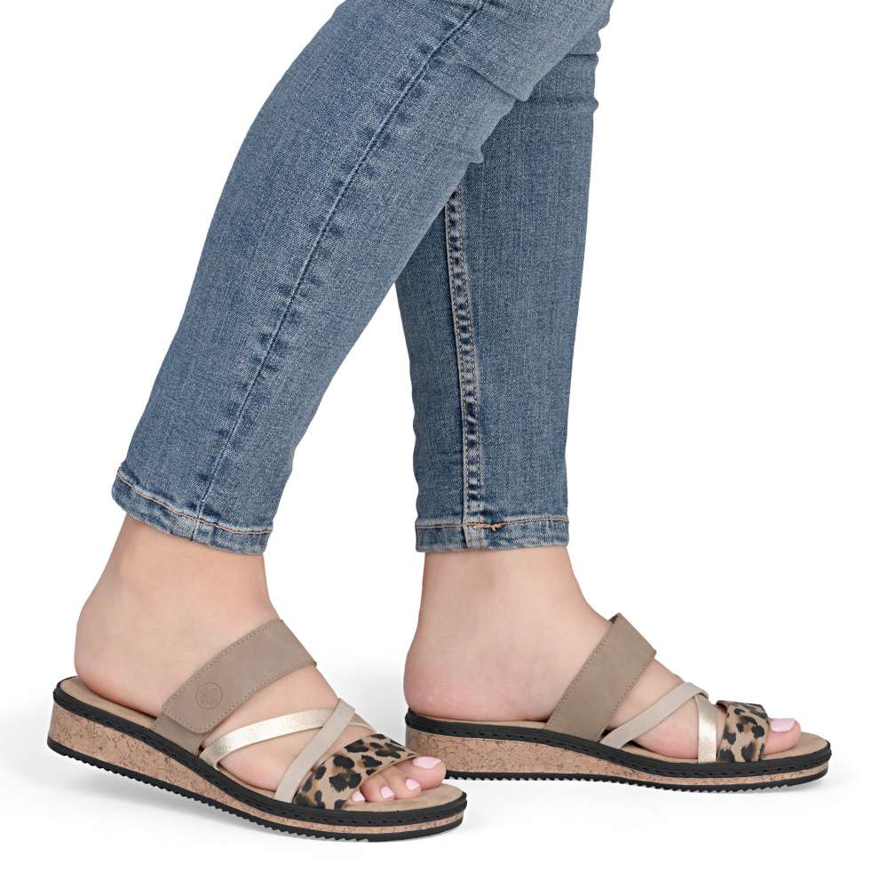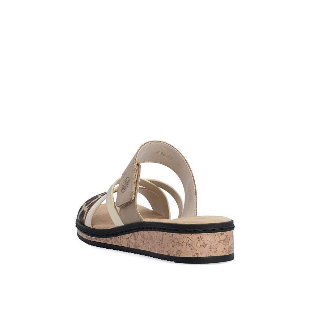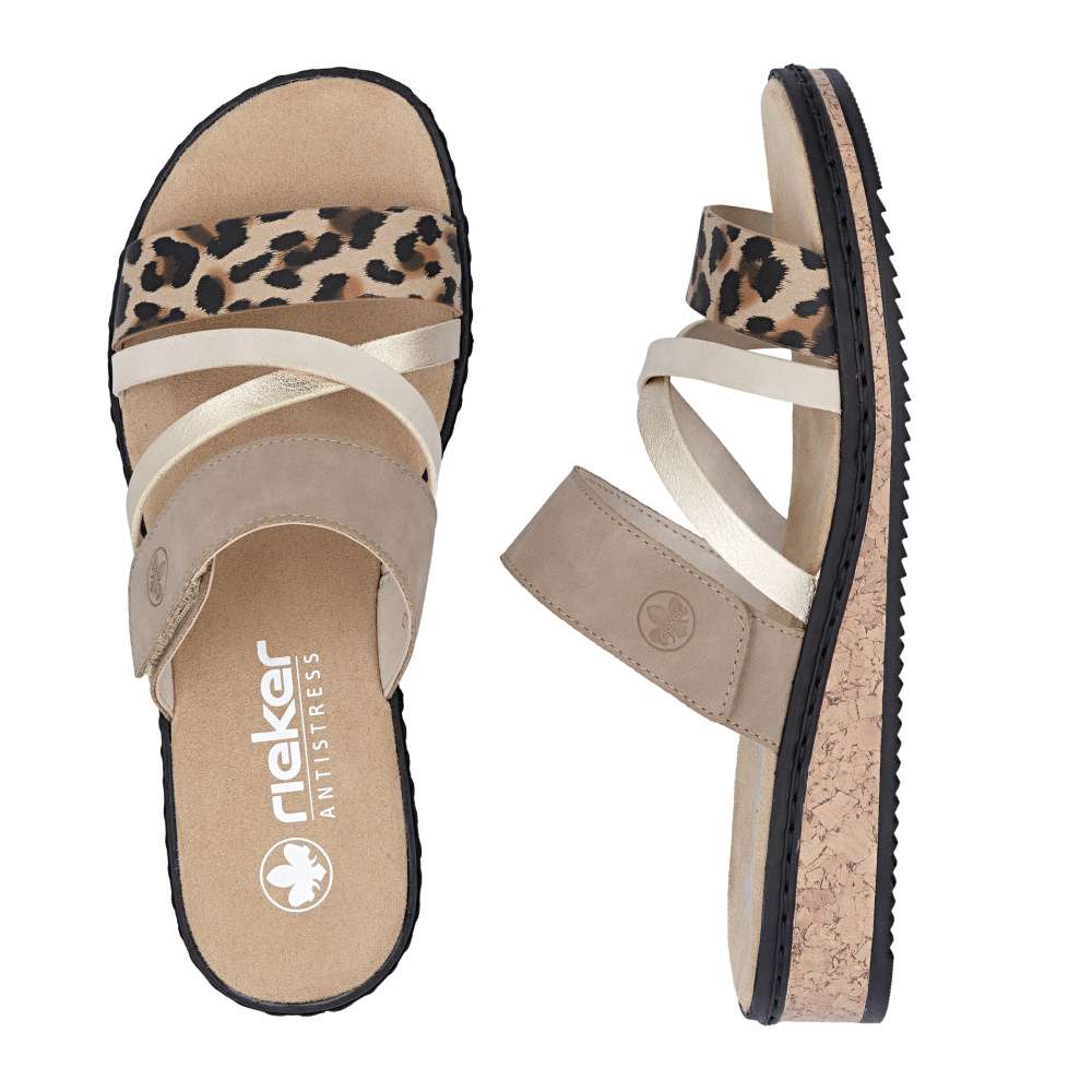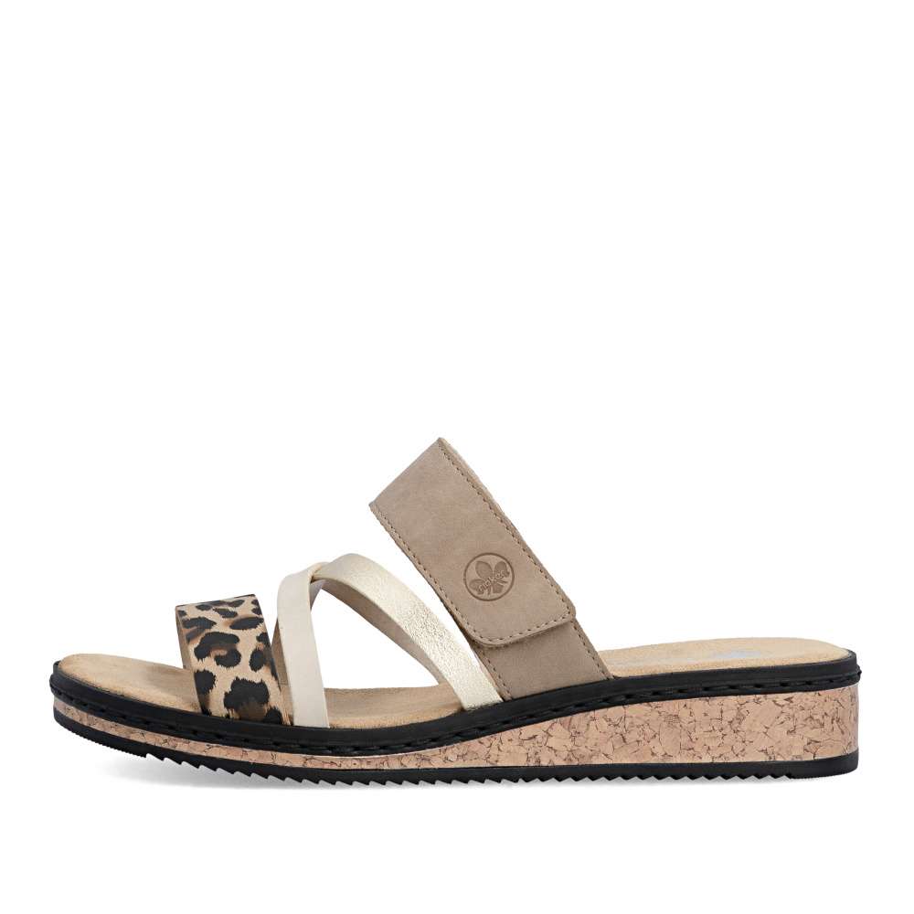 Unikátní pantofle RIEKER okouzlí již na první pohled svým svěžím a harmonickým designem. Svršek je tvořen pásky v jemných pastelových odstínech, které působí lehce a žensky, přičemž jeden z pásků je zvýrazněn zvířecím vzorem, dodávajícím obuvi atraktivní akcent. Pásek s logem značky, opatřený praktickým suchým zipem, umožňuje snadné a přesné nastavení obvodu kolem chodidla pro maximální pohodlí při nošení. Komfort při každém kroku zajišťuje příjemná textilní stélka, která poskytuje měkký došlap a pohodlí i během delšího nošení. Vyšší, kvalitně zpracovaná podešev nejen esteticky dolaďuje celkový vzhled obuvi, ale zároveň efektivně tlumí nárazy při chůzi a zvyšuje stabilitu. Tyto pantofle RIEKER jsou ideální volbou na letní dny, procházky městem či volnočasové aktivity, kdy chcete spojit styl, pohodlí a lehkost v jednom modelu.