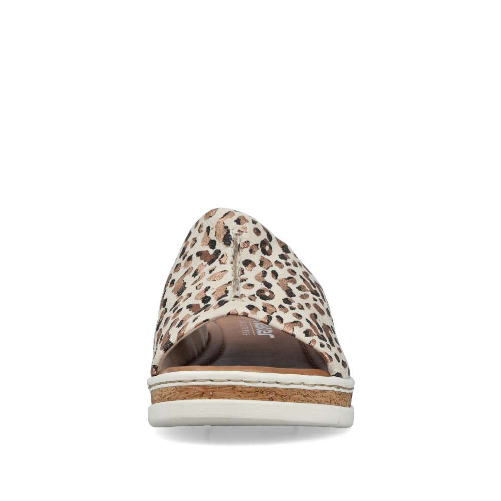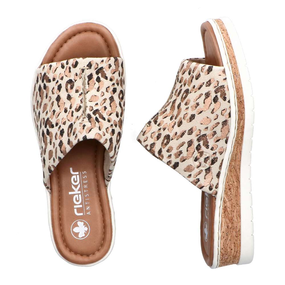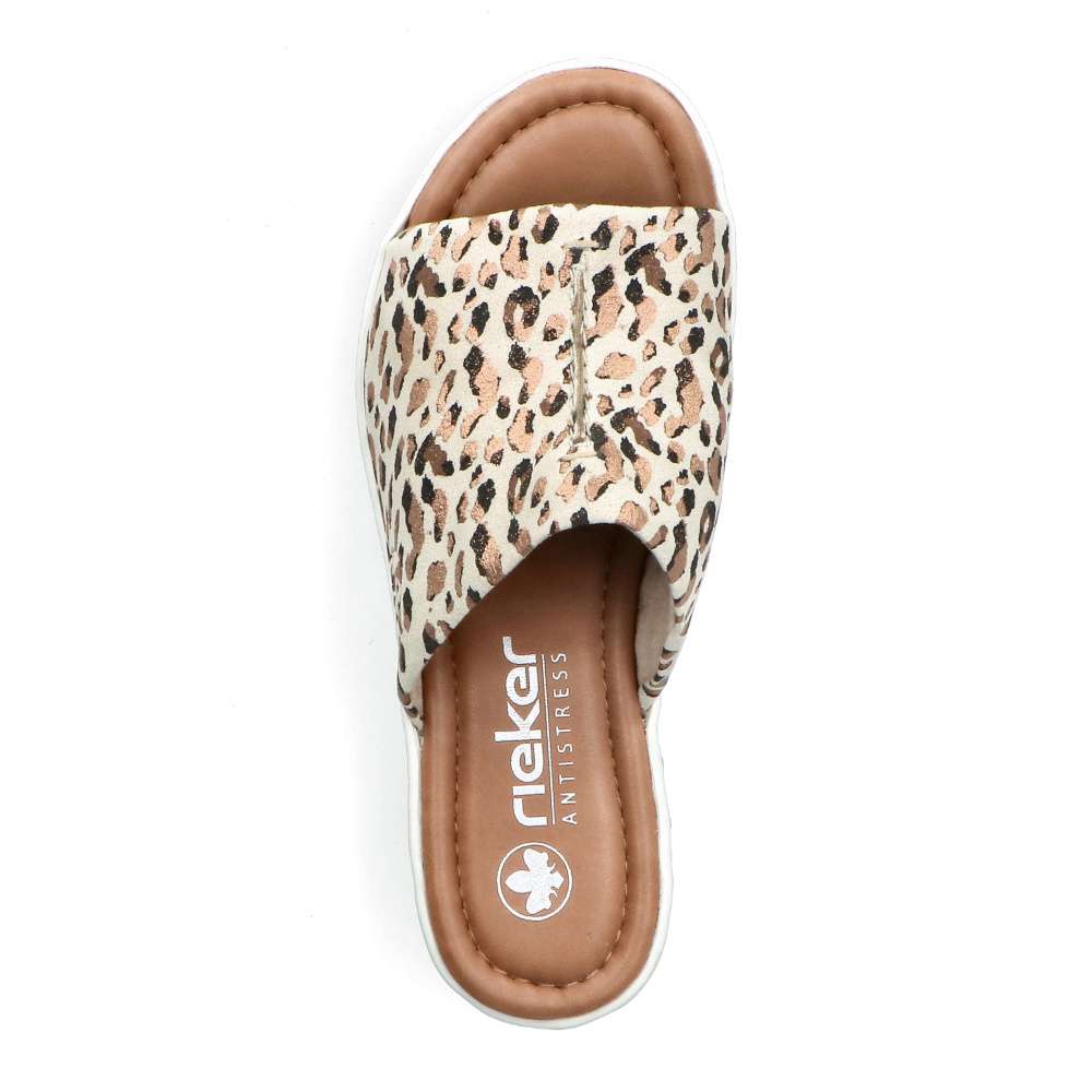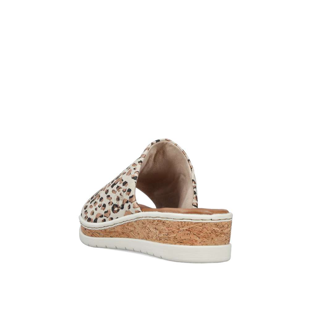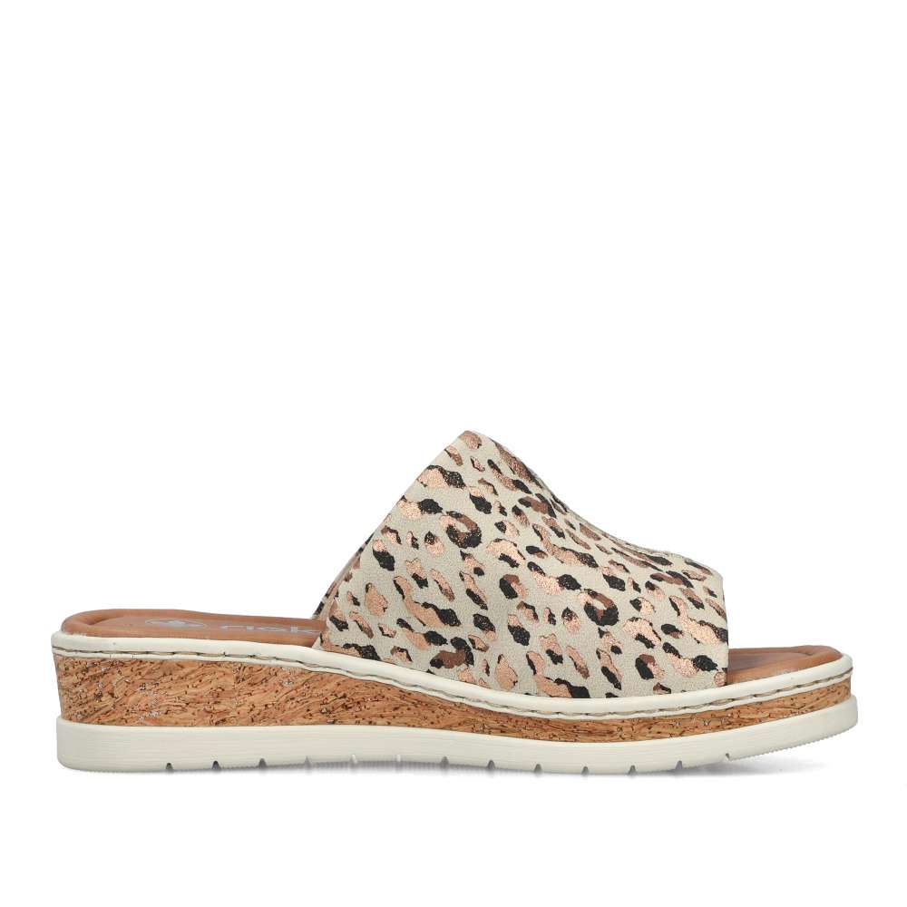 Dopřejte si styl a pohodlí v jednom s těmito nazouváky RIEKER v působivém provedení. Na první pohled zaujmou širokým nártovým páskem, který je dekorován výrazným potiskem a jemnými odlesky. Tento detail dodává obuvi jedinečný charakter a činí z ní atraktivní doplněk každého letního outfitu. Vnitřní komfortní stélka je navržena tak, aby poskytovala chodidlu příjemnou oporu a vyšší podešev účinně tlumí nárazy při chůzi, čímž přispívá k ještě většímu komfortu při každém kroku. Zároveň opticky zvýrazňuje moderní vzhled těchto sandálů a dodává jim stylový nádech. Tyto nazouváky RIEKER skvěle doplní letní šaty, sukně i ležérní kalhoty a stanou se oblíbeným kouskem během teplých dnů.
