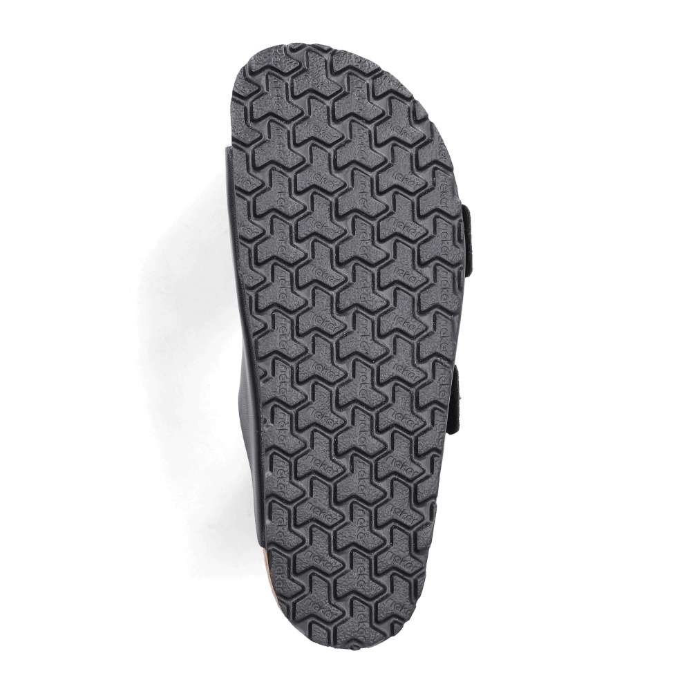 Pohodlí v nadčasovém módním stylu nabízí tyto nazouváky RIEKER, jejich černý svršek působí univerzálně a snadno se kombinuje s různými letními outfity, díky čemuž se tyto nazouváky stanou praktickým doplňkem vašeho šatníku. Dva nastavitelné pásky se sponou umožňují snadné přizpůsobení podle tvaru chodidla, čímž zajišťují nejen pohodlné nošení, ale také potřebnou stabilitu při chůzi. Příjemné vnitřní zpracování spolu s pohodlnou stélkou přispívá k celodennímu komfortu, zatímco podešev tlumí nárazy při chůzi. Tyto nazouváky RIEKER jsou ideální volbou pro letní dny – skvěle se hodí pro běžné nošení, procházky městem i chvíle oddechu během volného času. Dokonalá souhra moderního vzhledu a maximálního pohodlí díky funkčním technologiím to jsou boty RIEKER Sport.
