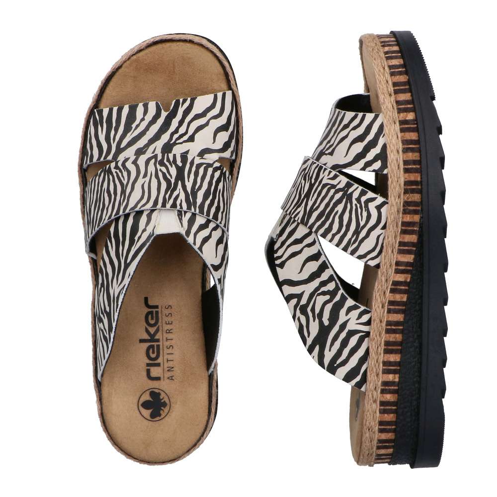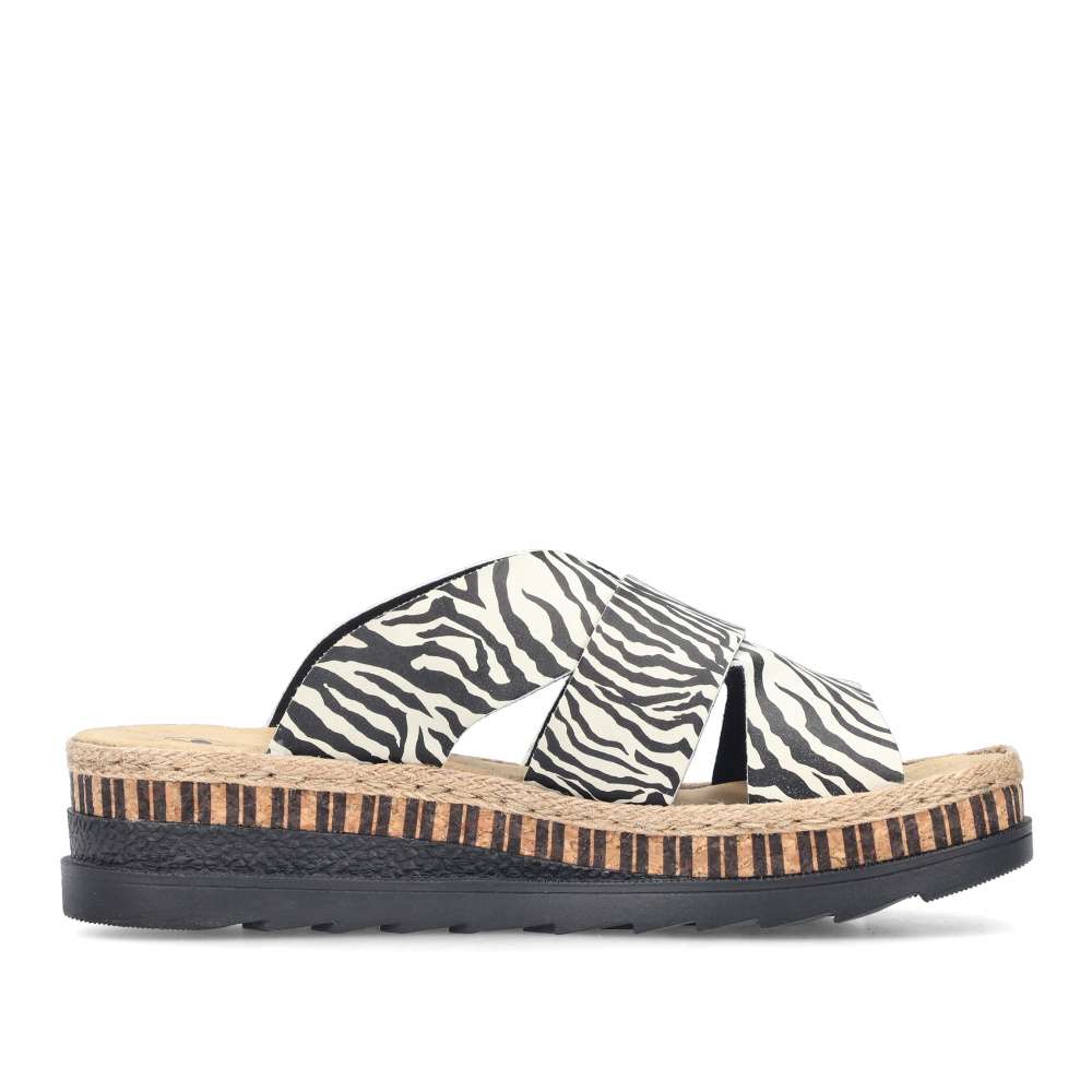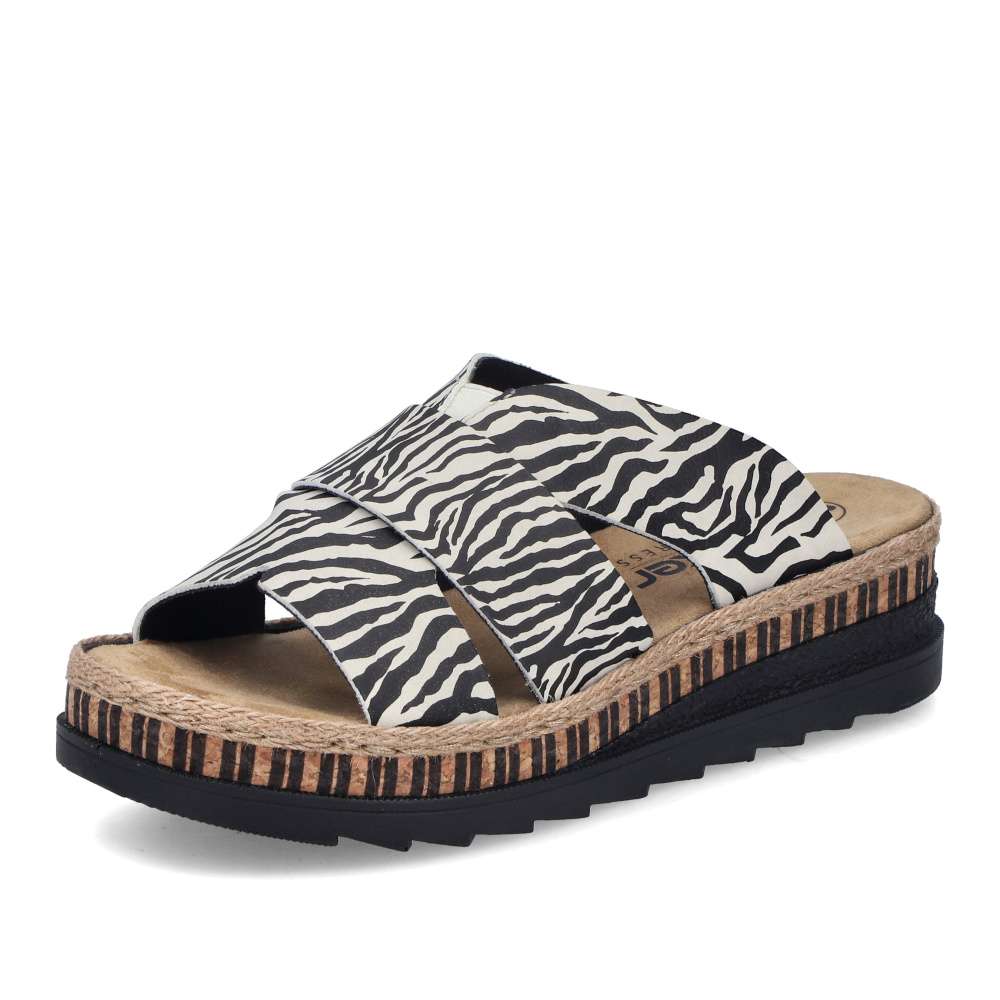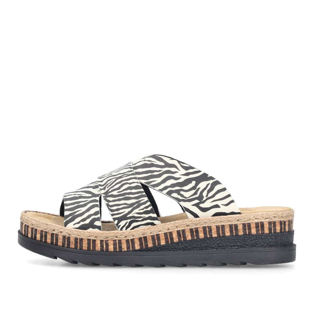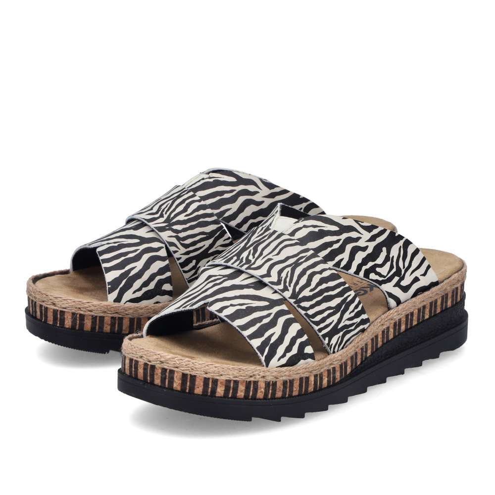 Nazouváky RIEKER se zvířecím vzorem jsou dokonalým kouskem, který si získá pozornost každého a tento výrazný vzor přidává odvážný vzhled, který skvěle doplní váš styl. Spojení módního vzhledu a pohodlí, díky kvalitnímu materiálu a skvělému střihu, které vám zaručí komfort při nošení. Široké nártové pásky jsou decentně poskládané a doplněné všitou pružnou gumičkou v části nártu. Textilní stélka poskytne komfort svojí měkkostí a podešev tlumí nárazy při chůzi, navíc svým unikátním designem dolaďuje celkový vzhled k dokonalosti. Tyto nazouváky jsou skvělou volbou pro každou ženu, která chce vyniknout a zároveň se cítit pohodlně.