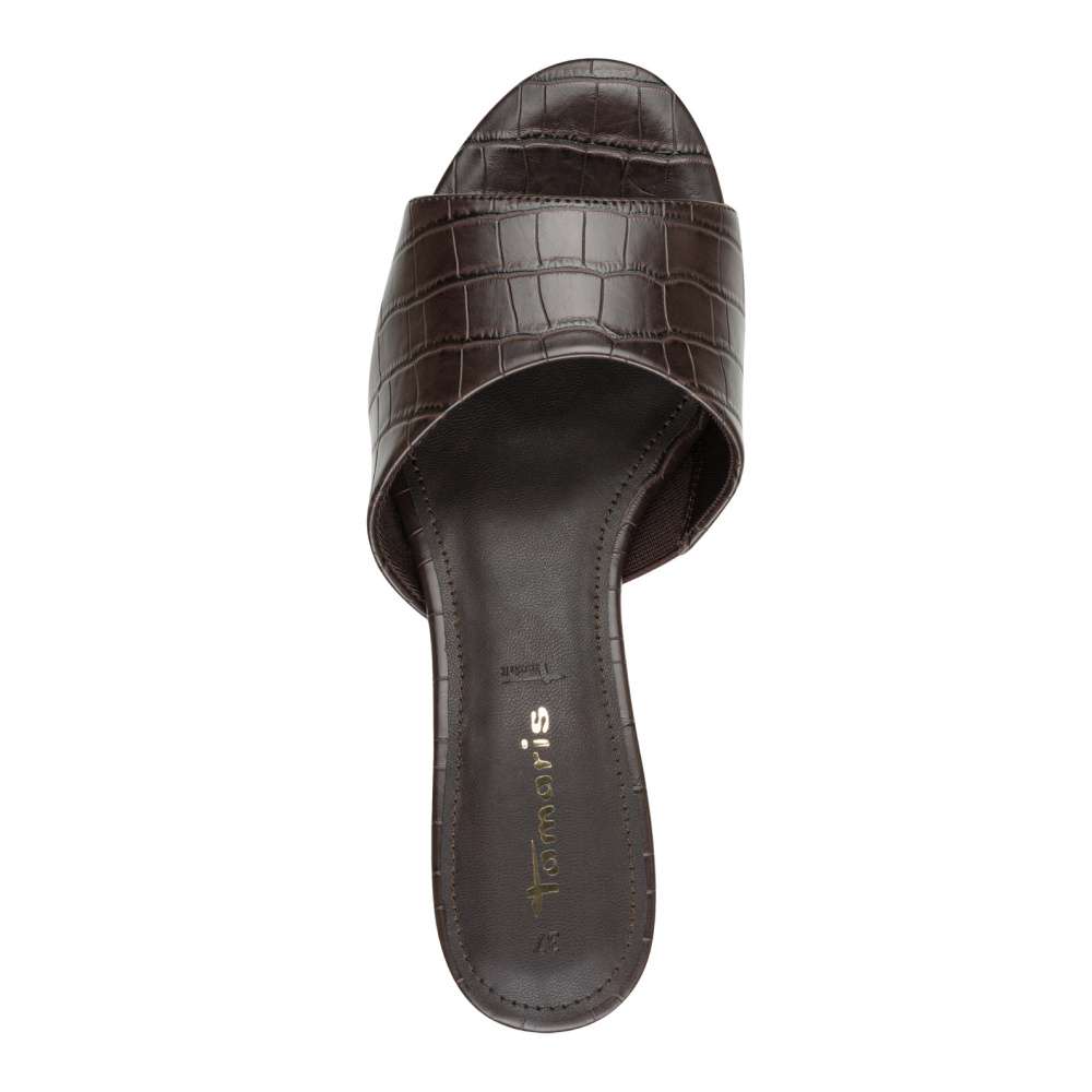 Nazouváky Tamaris s výraznou strukturou zvířecího vzoru představují dokonalé spojení ženské elegance a nadčasového stylu. Vsazená gumička na vnitřní straně širokého pásku zajišťuje přizpůsobení noze, díky čemuž se nazouváky pohodlně nosí a komfortní stélka poskytne měkký došlap. Úzký nízký podpatek jemně zvýrazní siluetu a dodá vašemu kroku ladnost, aniž by ubíral na pohodlí. Díky tomu jsou ideální volbou nejen pro každodenní nošení, ale i pro chvíle, kdy chcete působit stylově. Tmavý motiv dodává modelu atraktivní, ale stále vkusný charakter, který se snadno kombinuje s šaty i formálnějším outfitem. Tyto nazouváky nejsou jen obuví – jsou elegantním doplňkem, který zvýrazní váš styl, dodá vám sebejistotu a podtrhne vaši přirozenou krásu při každém kroku.