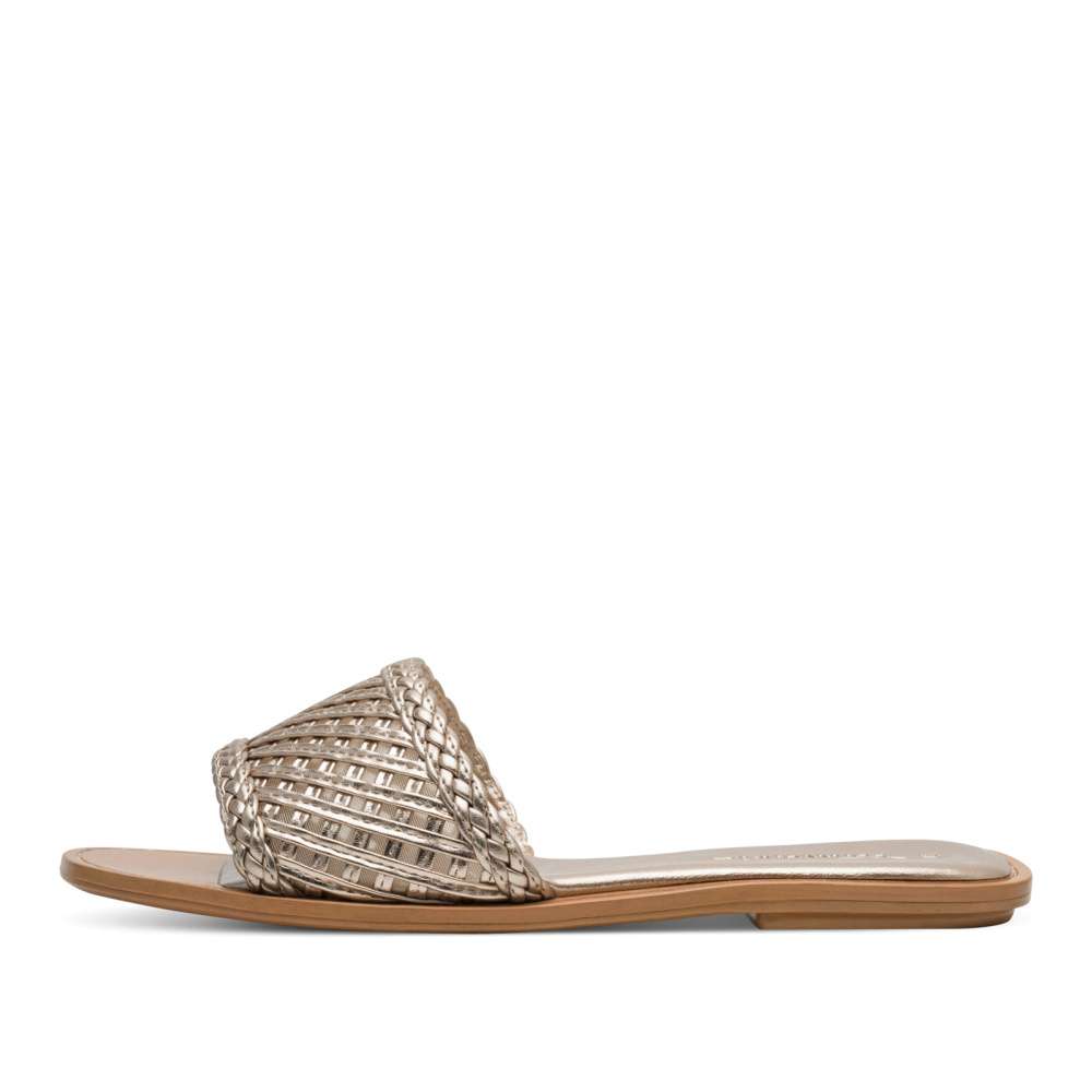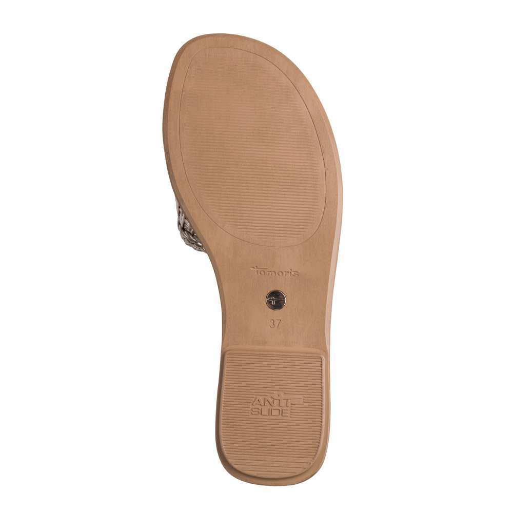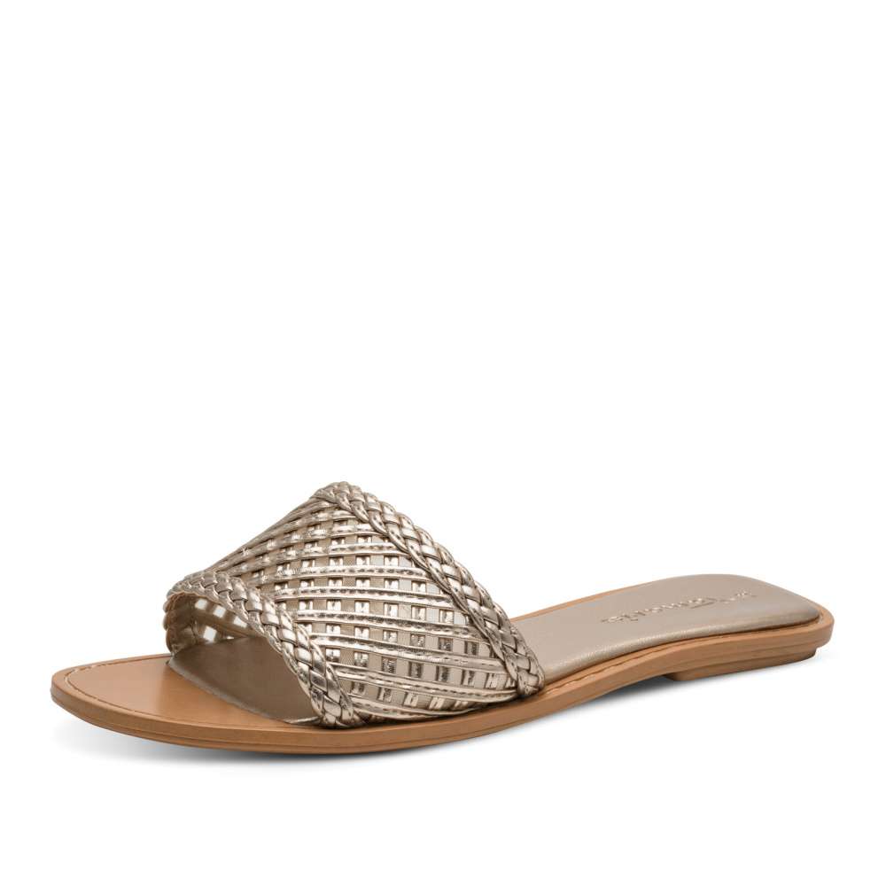 Máte ráda třpyt a zlaté odlesky? Pak zbystřete! Máme tu jednoduchý, ale maximálně pohodlný nazouvák značky Tamaris, s pleteným širokým pásem přes nárt. Pás je podšitý jemnou síťovinou pro příjemný kontakt s pokožkou. Lehká podešev je vybavena funkcí Anti-Slide, která zajišťuje stabilitu a brání uklouznutí při každém kroku. Ideální volba pro každodenní letní nošení. Stačí nazout a vykročit v módním duchu značky Tamaris – ideální volba pro slunečné dny plné pohody a smíchu.