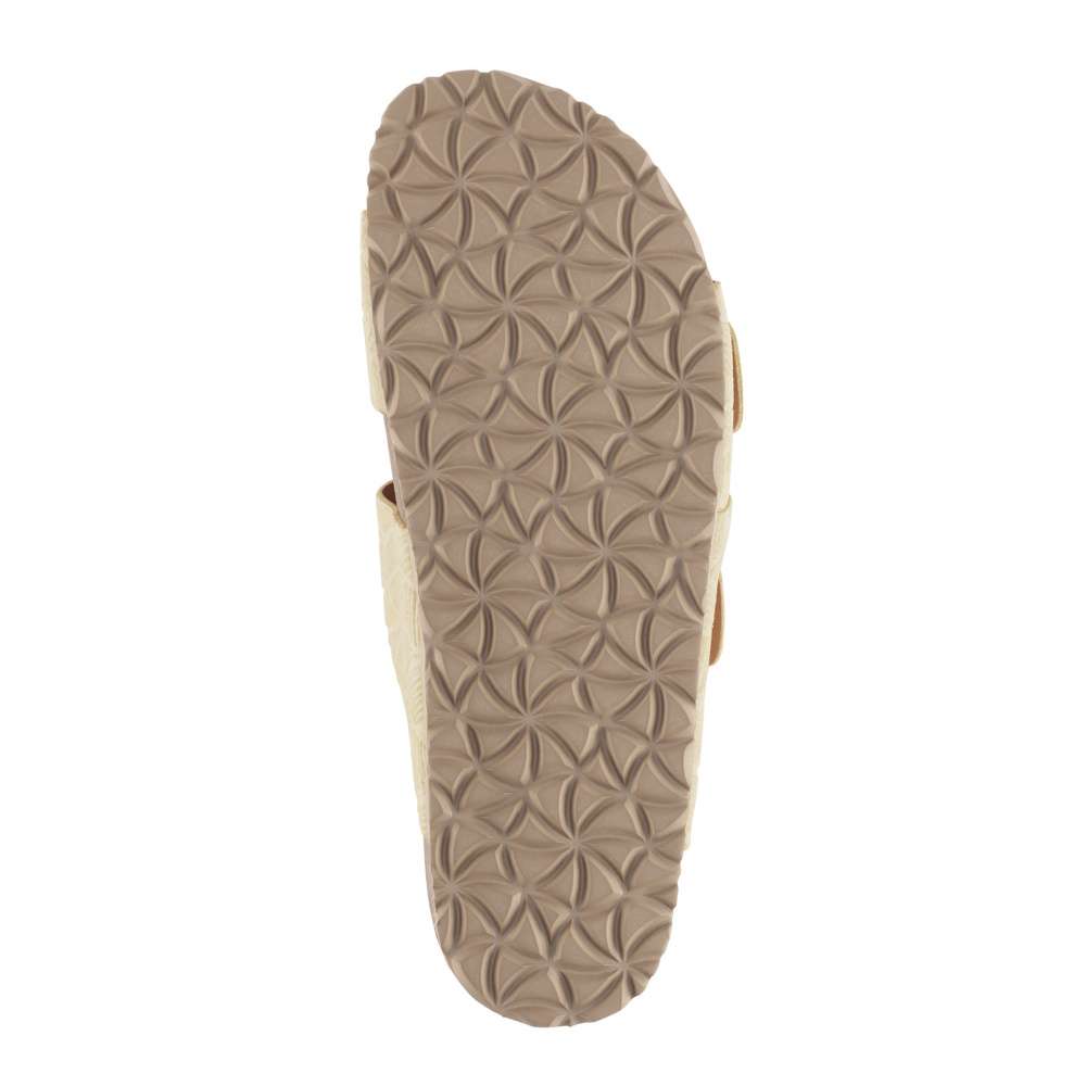 Tyto pohodlné sandály vynikají kvalitním koženým zpracováním a nadčasovým designem, který oceníte při každodenním nošení. Dva nastavitelné řemínky s výraznými sponami umožňují snadné přizpůsobení tvaru chodidla, zatímco měkká kožená stélka poskytuje optimální komfort i při delším chození. Lehká a flexibilní podešev zajišťuje příjemný došlap a stabilitu. Stylový reliéfní povrch dodává modelu jedinečný charakter, díky čemuž se sandály snadno kombinují s volnočasovými outfity i ležérnější letní módou.