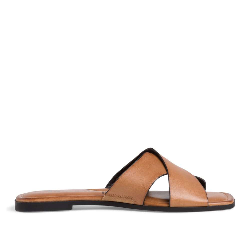 Jednoduchý hladký svršek překřížen dvěma pásky přes nárt bude krásně držet vaši nohu při každém kroku.