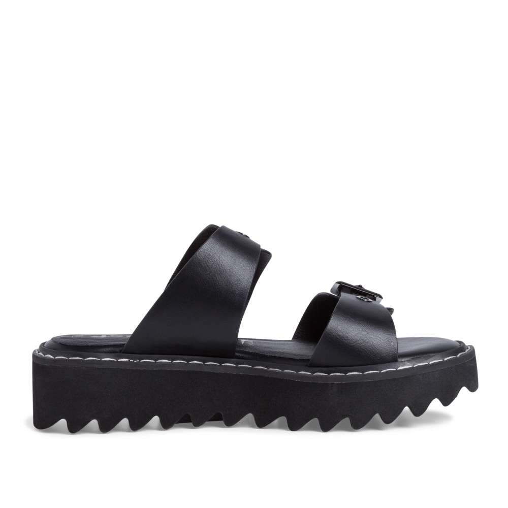 Tento model má dva kožené černé pásky s přezkami, které se dají dokonale přizpůsobit noze. Kovové přezky i nýty ladí s koženým materiálem a tvoří zajímavý detail.