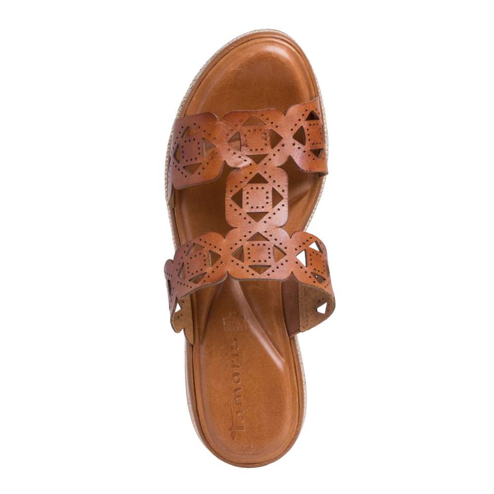 Letní nazouváky od značky TAMARIS jsou vyrobeny z hladké přírodní usně a zaujmou Vás především svým propracovaným páskovým svrškem se vzorovanými výkroji. Obuv si jednoduše nazujete a můžete vyrazit.