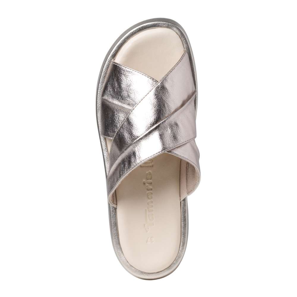 Dámské nazouváky TAMARIS budou skvělým doplňkem během letních dnů. Boty jsou překřížené dvěma pásky přes nárt, na pohodlné platformě 4 cm. Stélka je vyrobena z paměťové pěny, která se přizpůsobí Vaší noze a zaručí pohodlí. Budou se skvěle hodit na nákupy nebo na procházku městem.