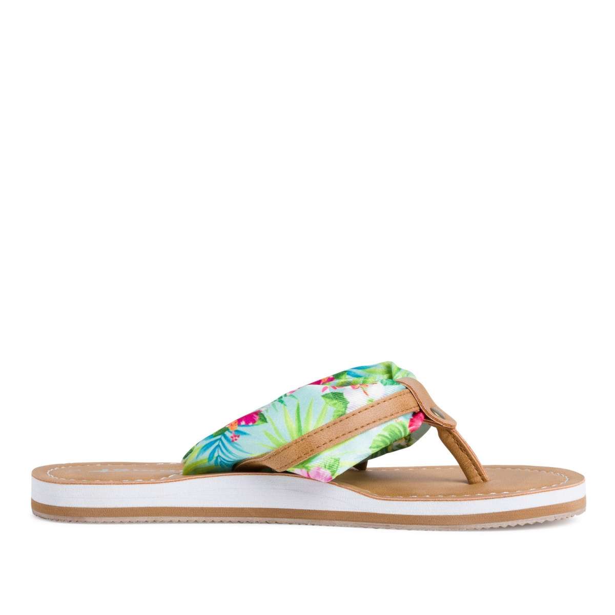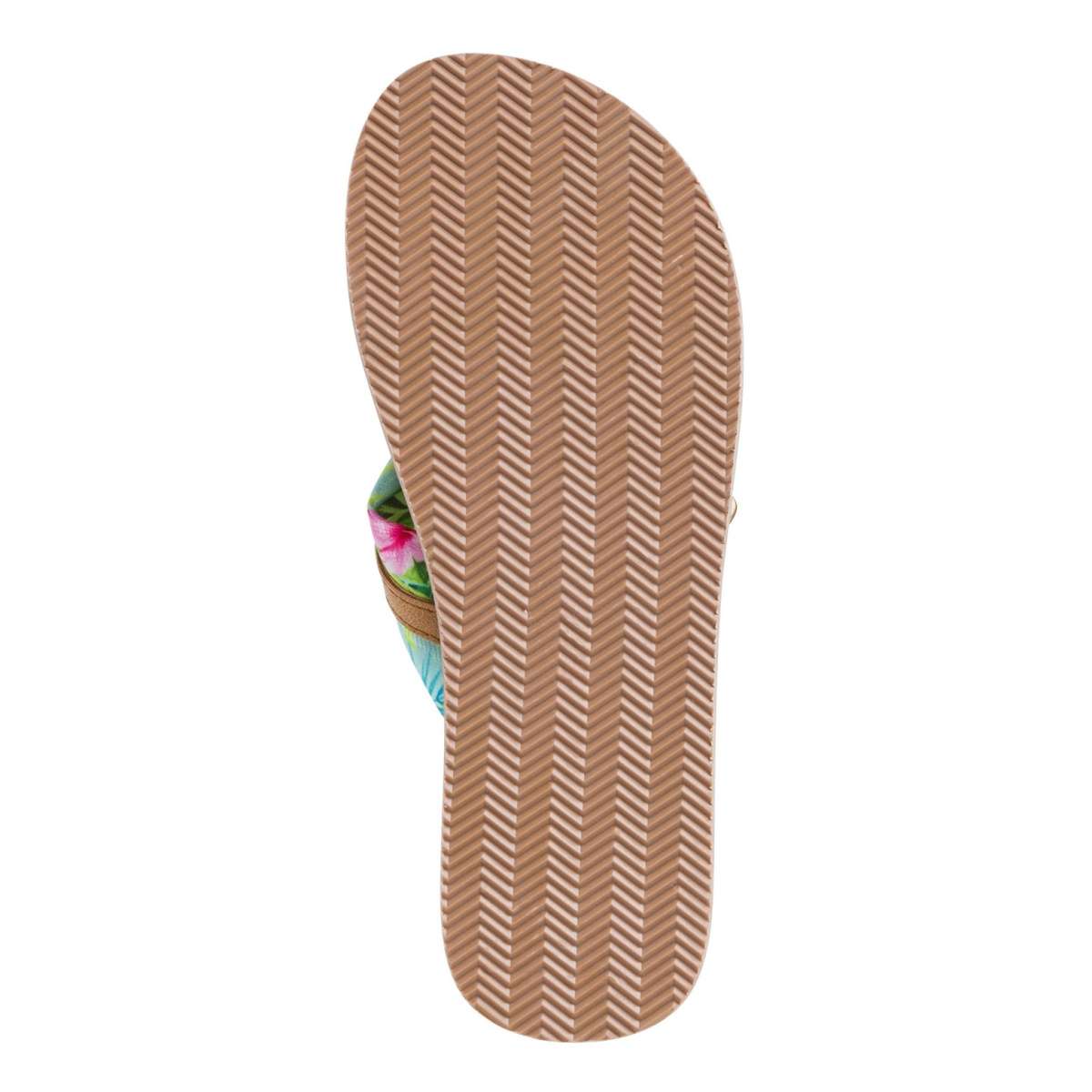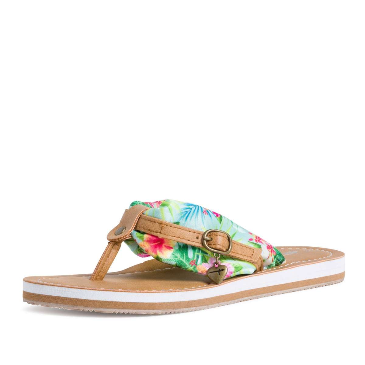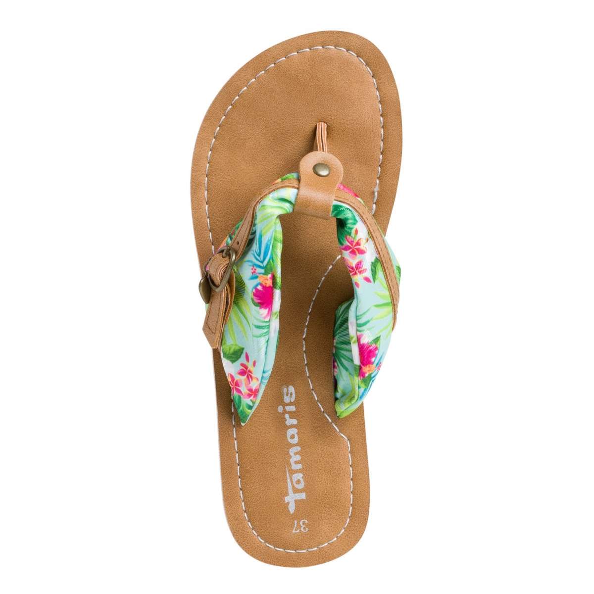 Dámské nazouváky žabkového stylu značky Tamaris mají hladký povrch a kulatou špičku. Zdobené jsou provedením a designem svršku, který je pro každou barvu unikátní. Květovaný textilní pásek je doplněn světle hnědým řemínkem s drobným přívěskem. Tento model je vhodný na procházky po městě či na dovolené.