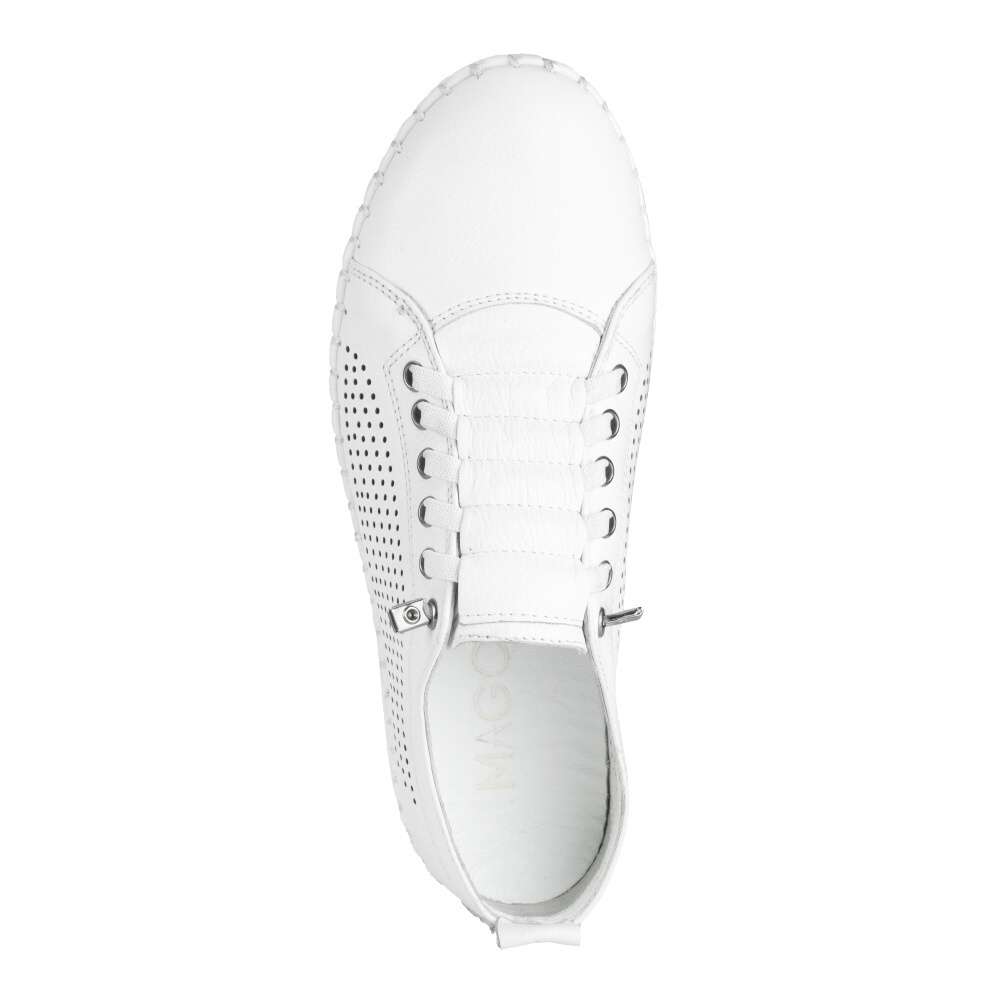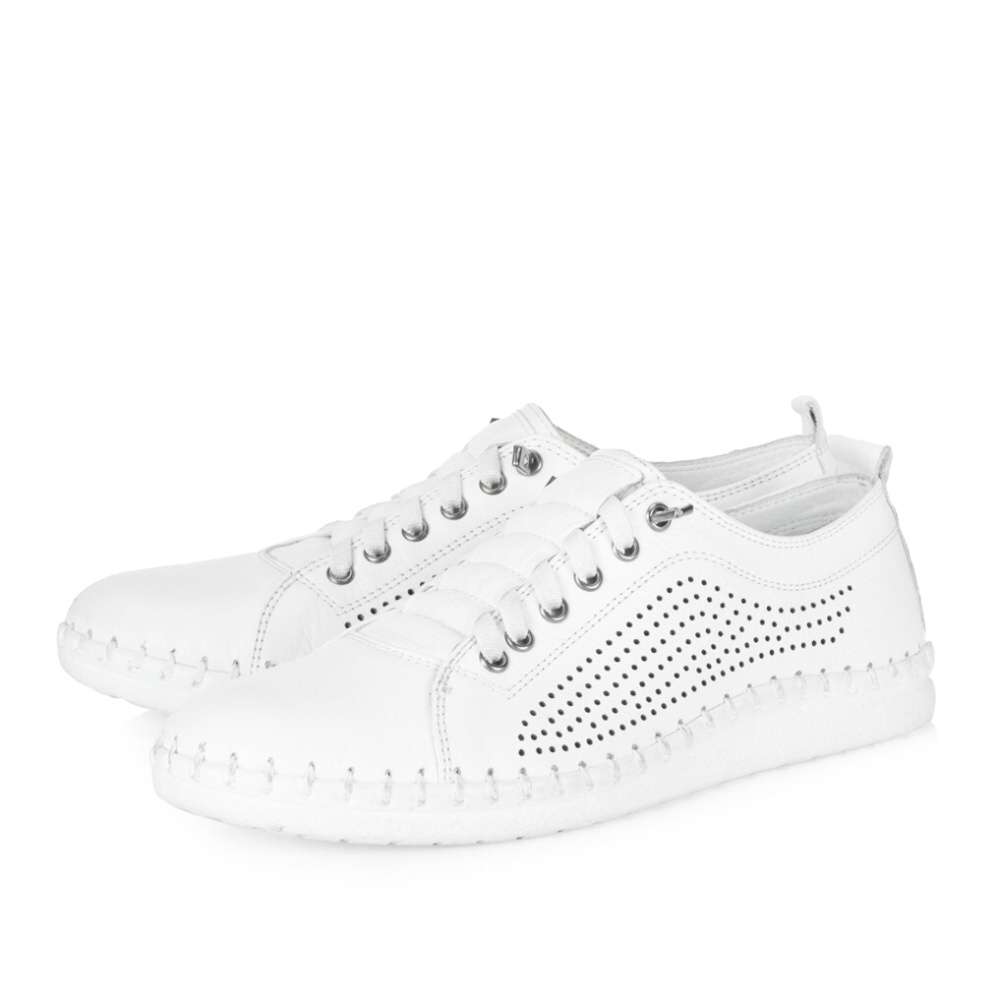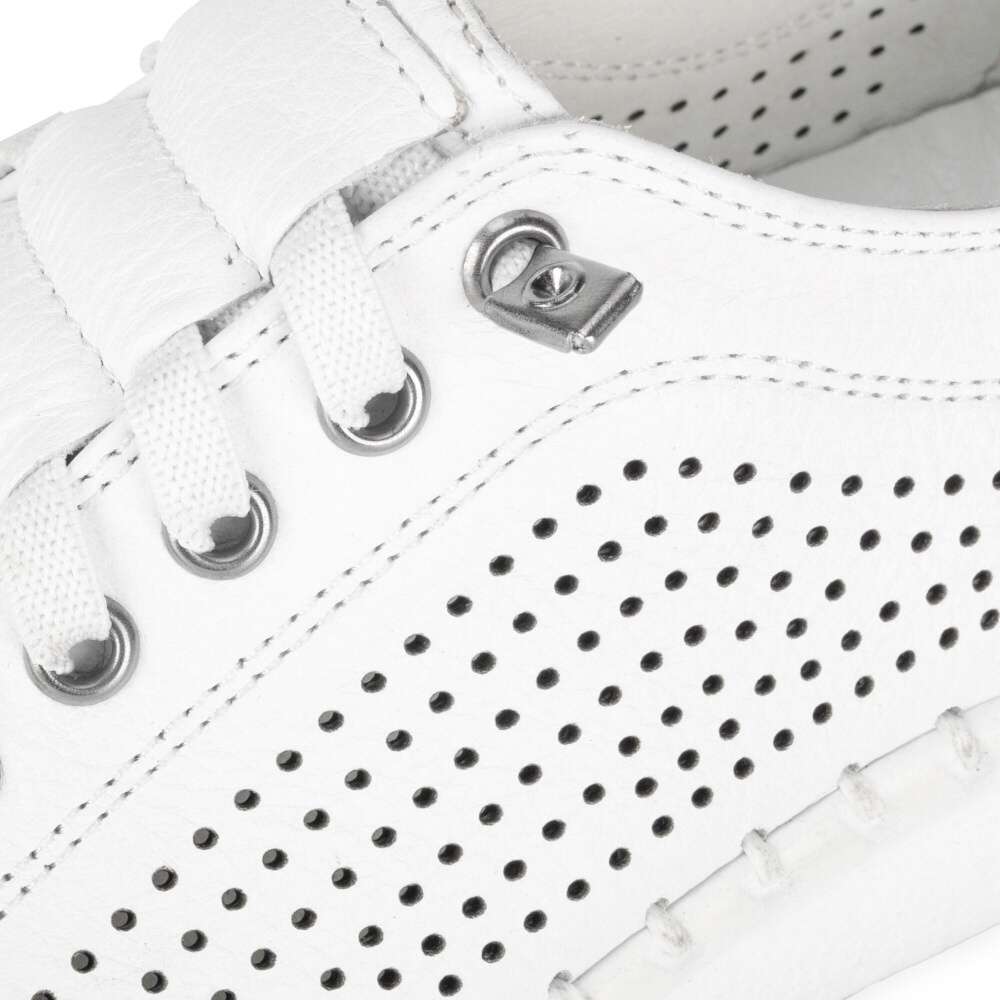 Boty IBERIUS představují dokonalou kombinaci módního stylu a precizního zpracování. Kožený bílý svršek je ozdobený perforací, což dodává modelu vzdušnost a lehkost, zatímco výrazné šití kolem podešve podtrhuje jejich kvalitní provedení. Gumička na nártu usnadní nazutí a vizuální provedení šněrovaní přidá na stylovém vzhled. Kožená stélka se postará o maximální komfort při nošení, takže tyto boty jsou ideální volbou pro každodenní použití.