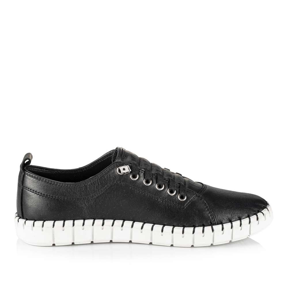 Dámské tenisky značky IBERIUS, to je klasika, která nezklame. Hladký kožený svršek je zdoben jemným prošíváním. Šněrování pružnou tkaničkou se postará o snadné obutí a maximální komfort během nošení. Měkká stélka a prošívaná podešev zajistí, že Vaše nohy budou jako ve vatě. S tímto neutrálním kouskem doplníte každý outfit do práce, i na delší pochůzky po městě.