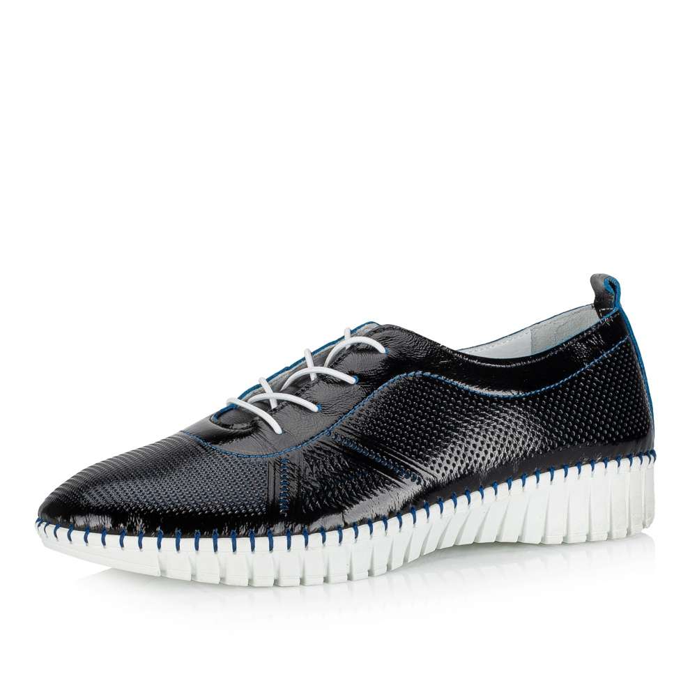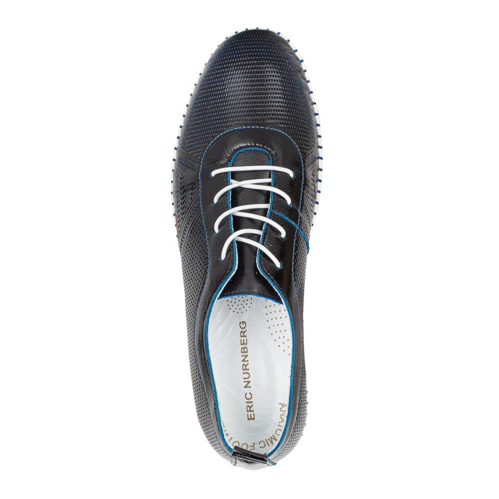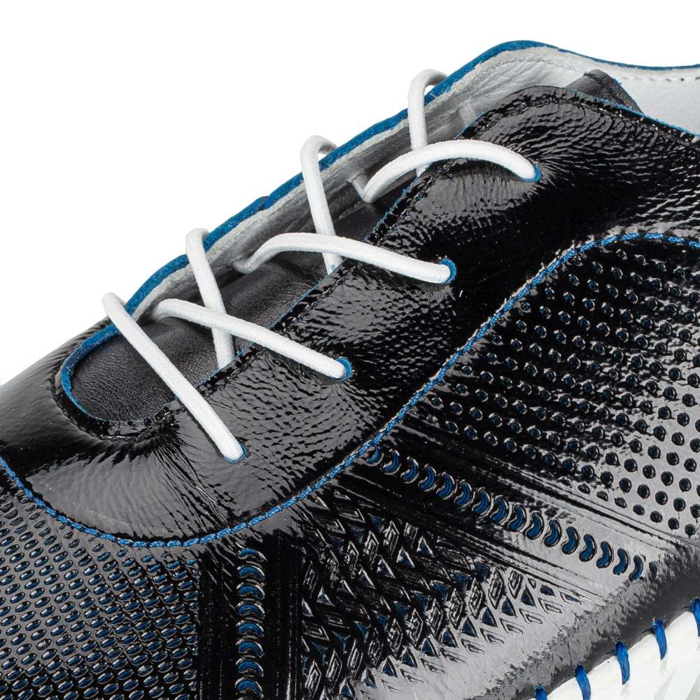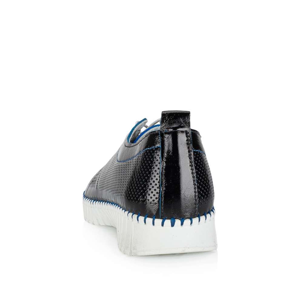 Boty IBERIUS s nepřehlédnutelným vzhledem Vám doplní šatník o originální kousek. Díky černému lakovanému svršku mají nádech elegance a netradiční podešev dodá celkovému vzhledu punc exkluzivity. Pro snadné nazutí je tady šněrování na nártu a po obutí si budete užívat měkkou tvarovanou stélku vyrobenou z kůže. Každý krok bude doprovázen pohodlím a můžete je obout do práce i na procházku s dětmi.