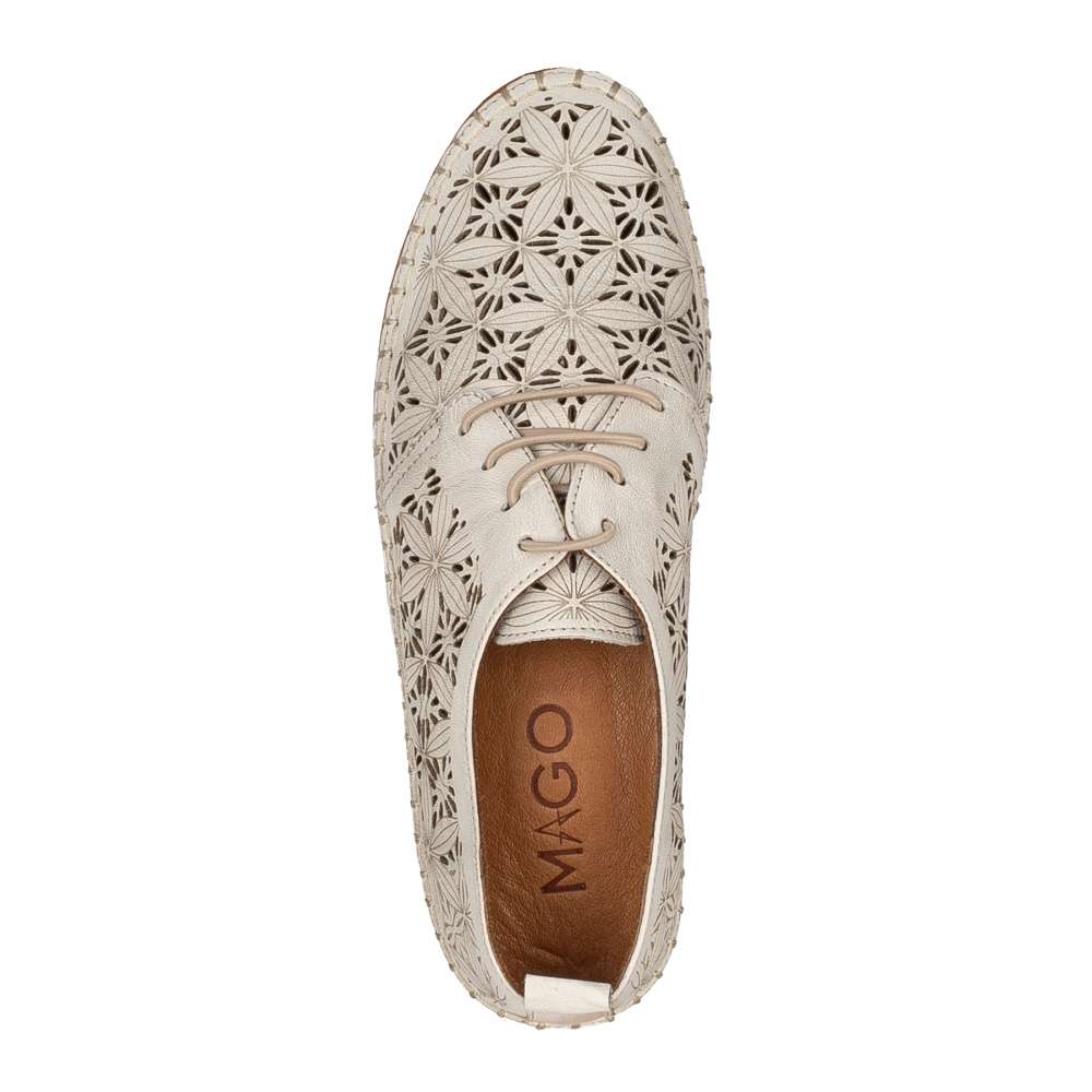 Tyto lehoučké polobotky IBERIUS budou tou správnou volbou pro každou z Vás. Svršek z hladké kůže je ozdoben zajímavým vzorem, který je doplněn perforováním. Pro snadné nazouvání a dokonalé přizpůsobení dle Vašich požadavků slouží šněrování gumičkou. Měkká kožená stélka bude dokonalým společníkem na pochůzkách městem i cestě do práce.