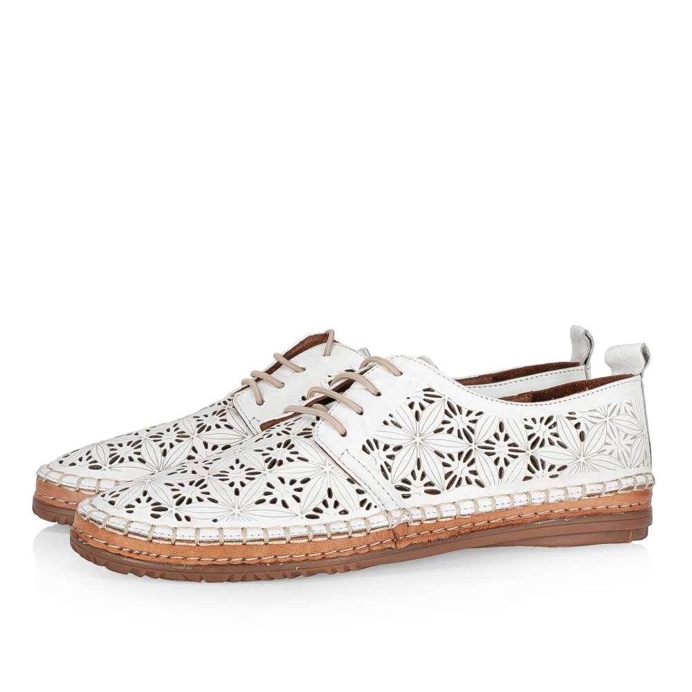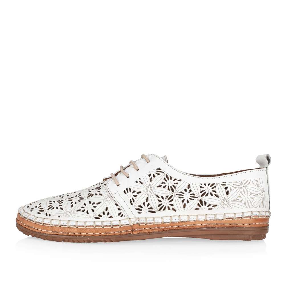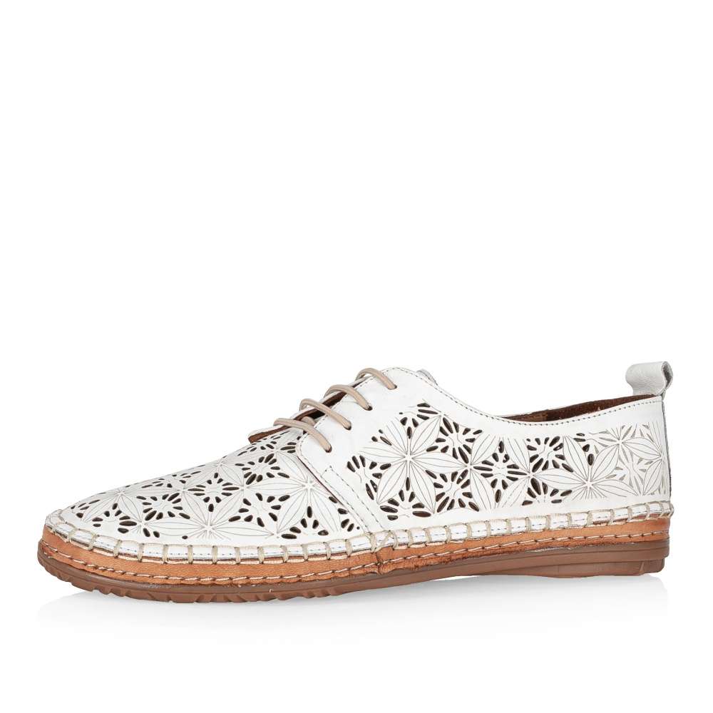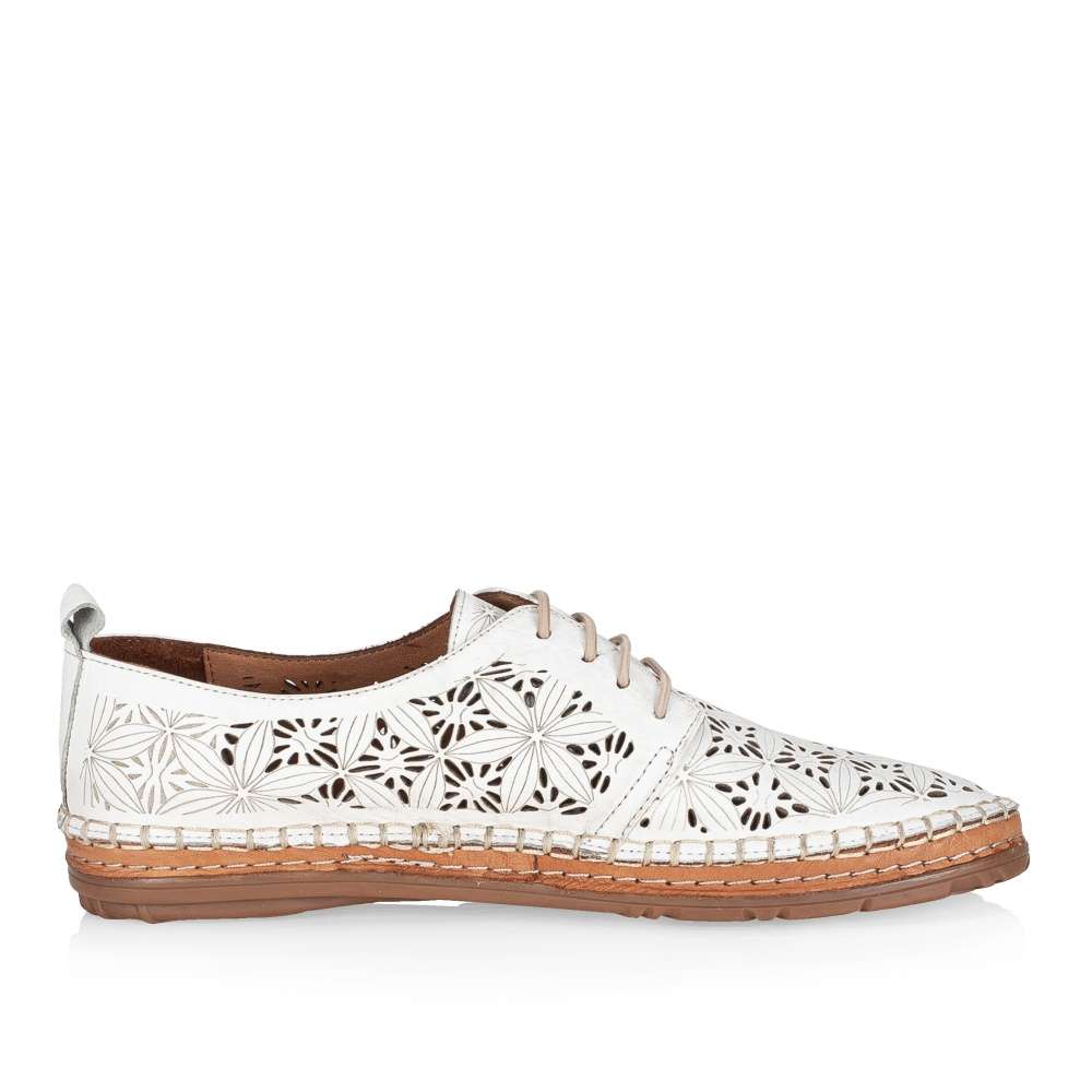 Tyto lehoučké polobotky IBERIUS budou tou správnou volbou pro každou z Vás. Svršek z hladké kůže je ozdoben zajímavým vzorem, který je doplněn perforováním. Pro snadné nazouvání a dokonalé přizpůsobení dle Vašich požadavků slouží šněrování gumičkou. Měkká kožená stélka bude dokonalým společníkem na pochůzkách městem i cestě do práce.