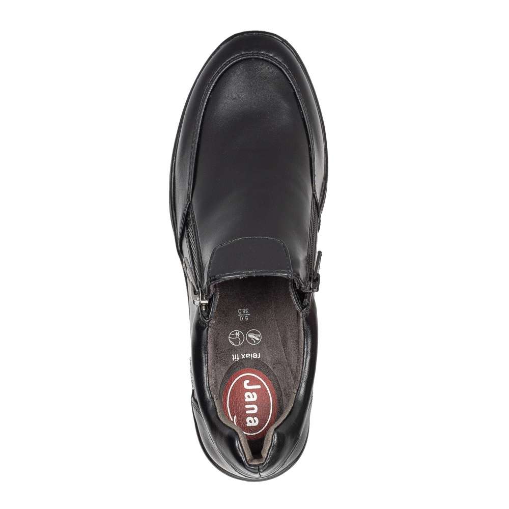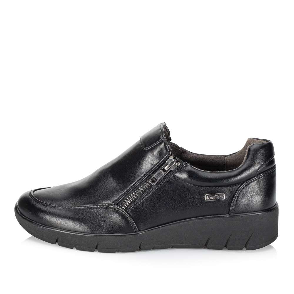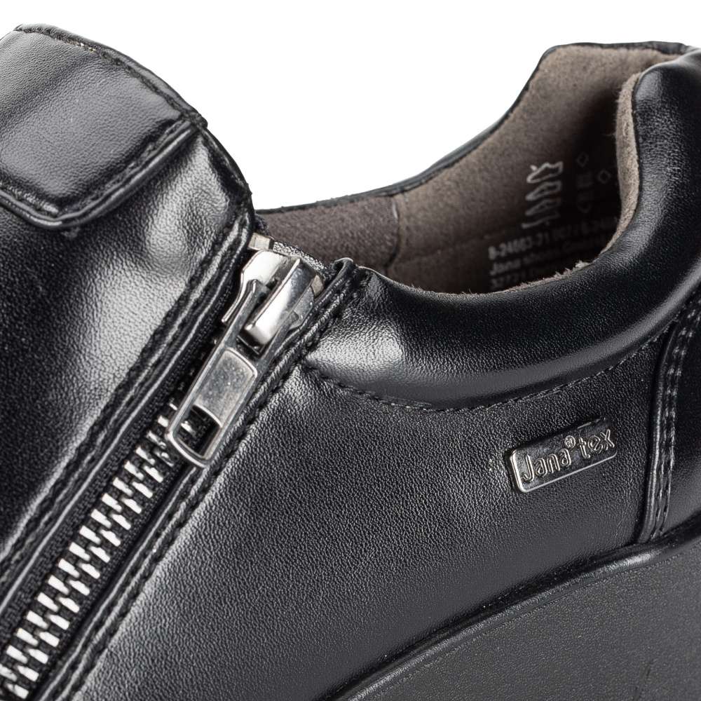Sportovně elegantní dámská polobotka černé barvy, která podtrhne Váš styl. Obuv je zdobená jemným prošitím po celém svršku a zipy pro jednoduché, a především rychlé obutí. Podzimní nečas Vás nezaskočí díky nepromokavé membráně JanaTEX budou Vaše nohy v suchu a pohodlí. Výhodou této boty je vyjímatelná měkká stélka, kterou lze vyčistit, vyvětrat nebo vyměnit a moderně propracovaná podešev, ve kterém se budete cítit pohodlně. Polobotku můžete využít jak k pracovním činnostem, nebo jen tak do města. Obuv lze doladit ke kabelkám z naší široké nabídky.