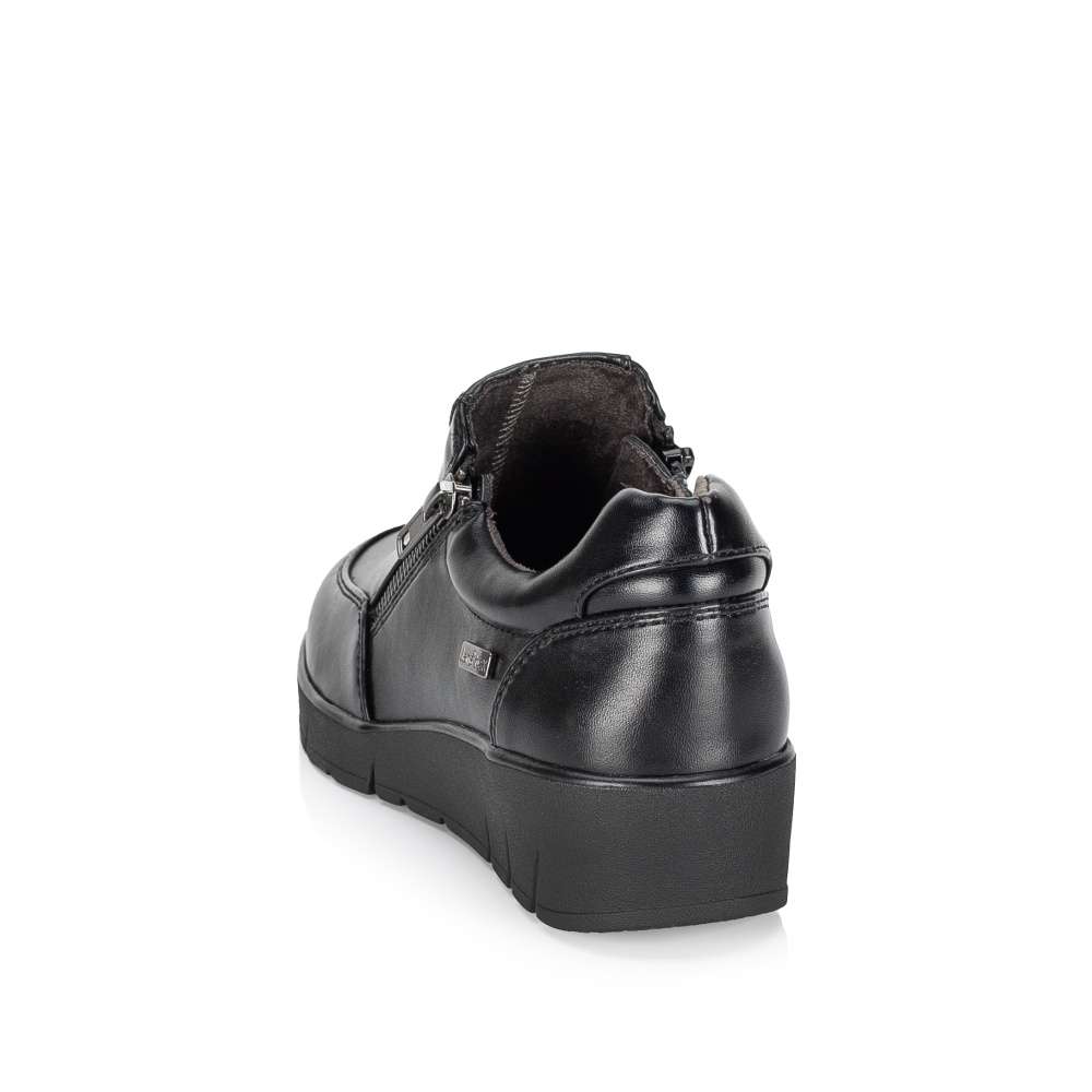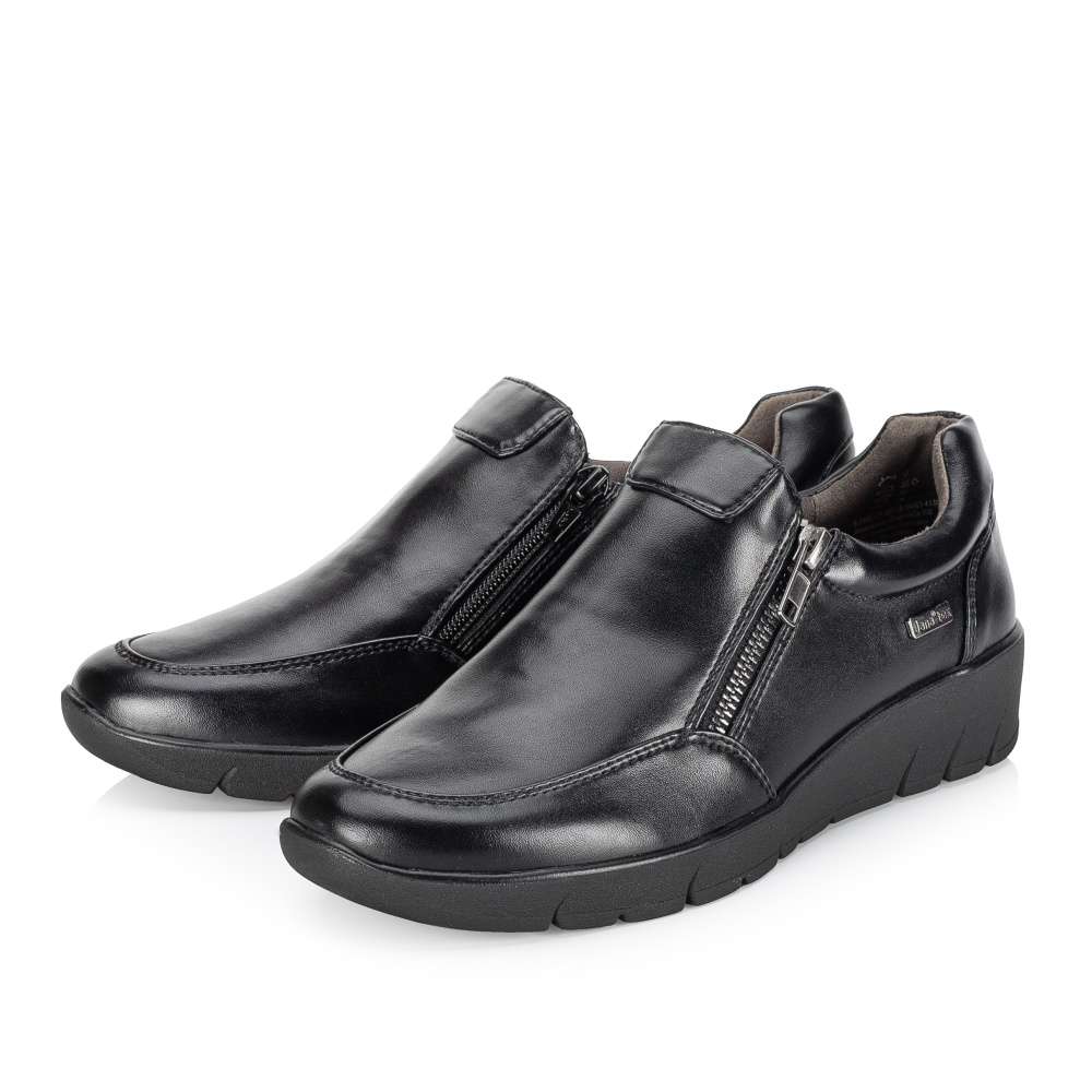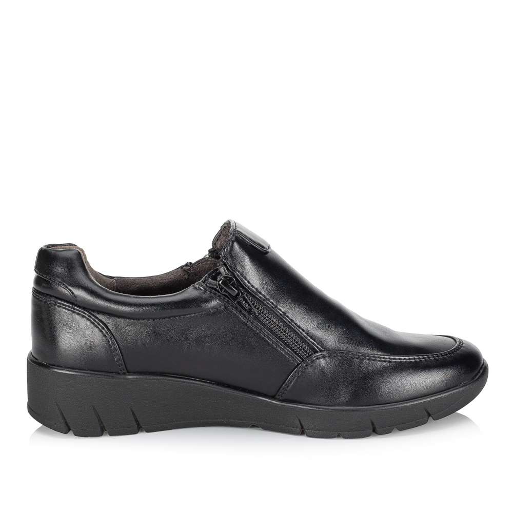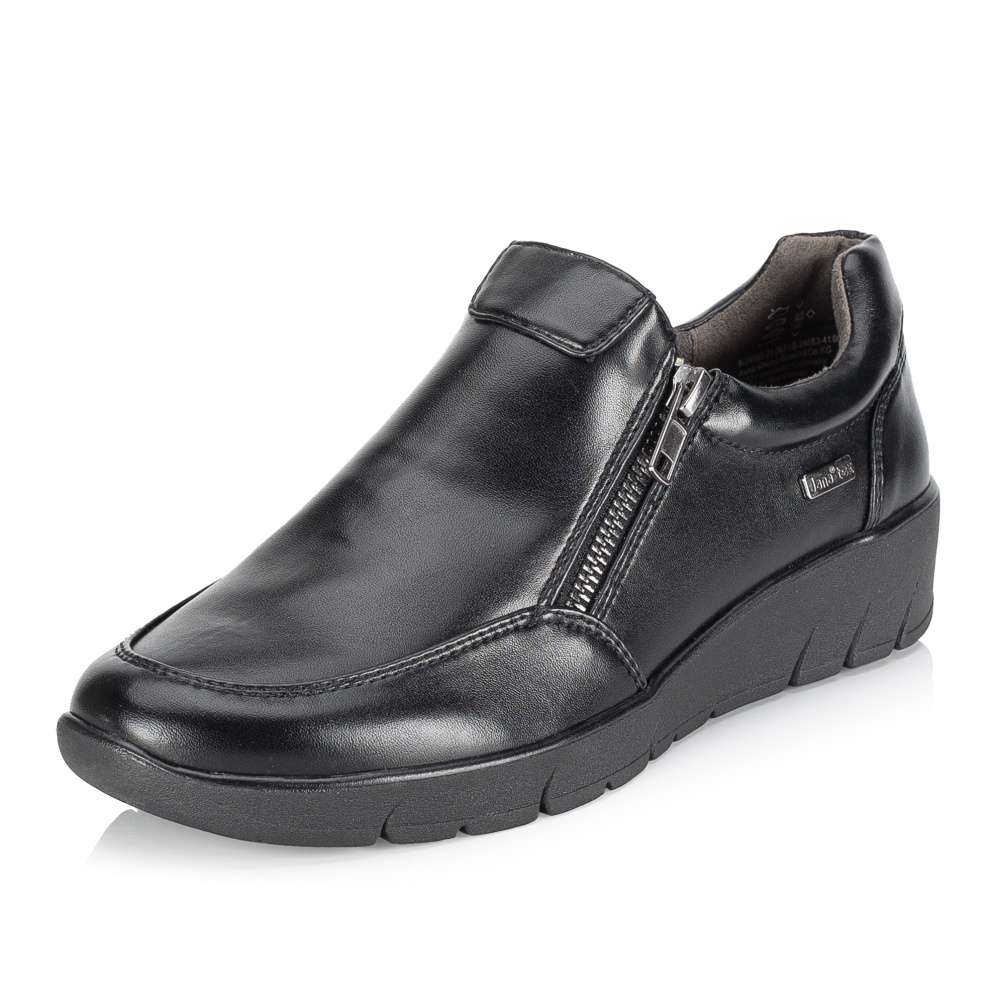 Sportovně elegantní dámská polobotka černé barvy, která podtrhne Váš styl. Obuv je zdobená jemným prošitím po celém svršku a zipy pro jednoduché, a především rychlé obutí. Podzimní nečas Vás nezaskočí díky nepromokavé membráně JanaTEX budou Vaše nohy v suchu a pohodlí. Výhodou této boty je vyjímatelná měkká stélka, kterou lze vyčistit, vyvětrat nebo vyměnit a moderně propracovaná podešev, ve kterém se budete cítit pohodlně. Polobotku můžete využít jak k pracovním činnostem, nebo jen tak do města. Obuv lze doladit ke kabelkám z naší široké nabídky.