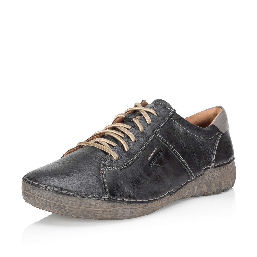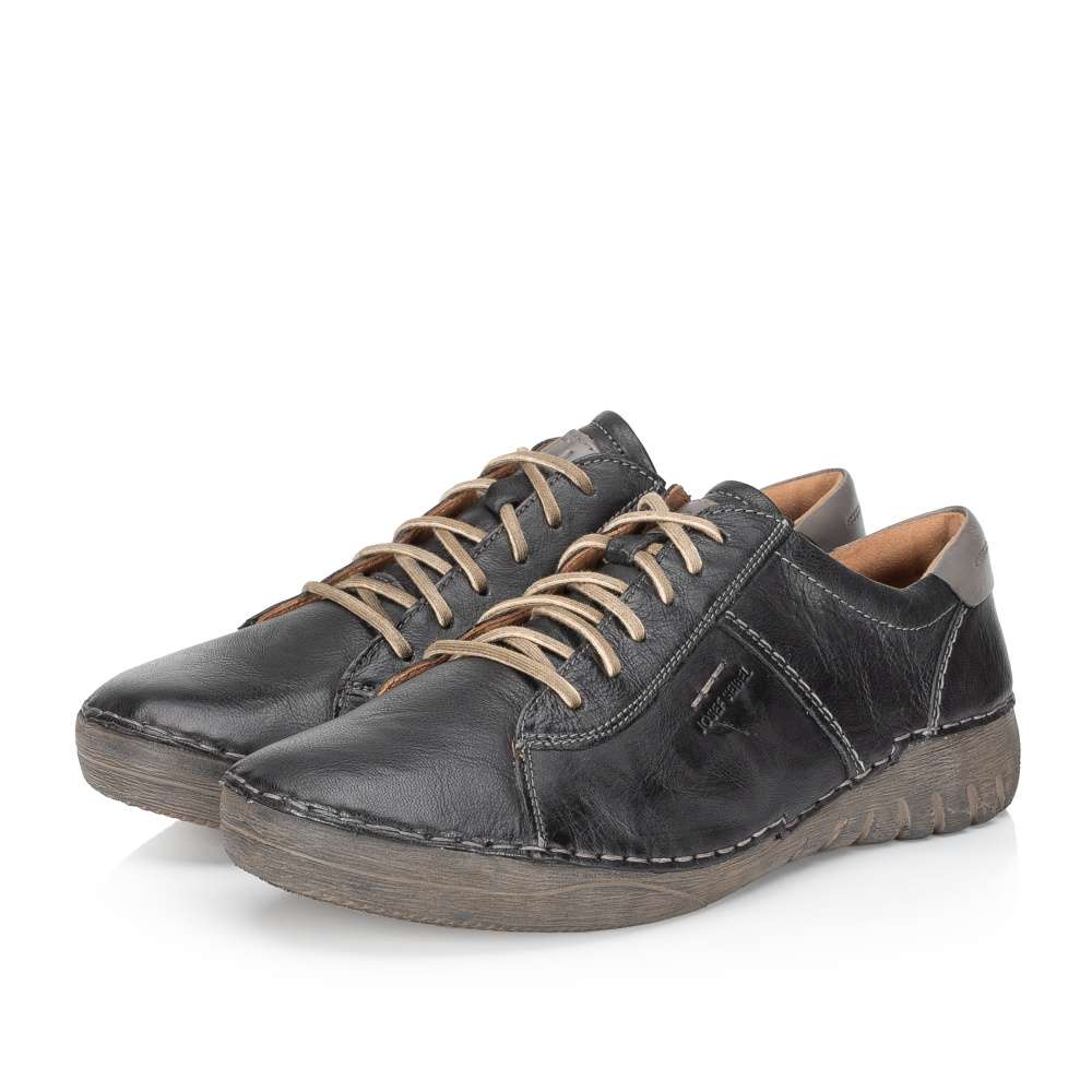 Výrobce Josef SEIBEL je zárukou maximálního pohodlí a moderního vzhledu, proto máme v nabídce tento model a určitě oceníte jeho přednosti. Hladký kožený svršek je zdobený kontrastním šitím a dílem v patní části. Snadné nazouvání je zajištěno díky šněrování, po nazutí vklouznete do kožené měkké stélky zajištující komfort chůze. Zajímavé zpracování podešve doladí celkový vzhled a její flexibilita bude doprovázet Vaše kroky do práce i ve volném čase.