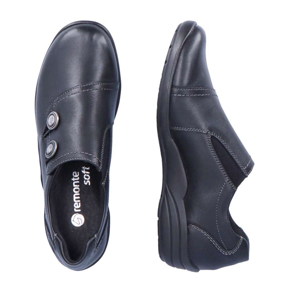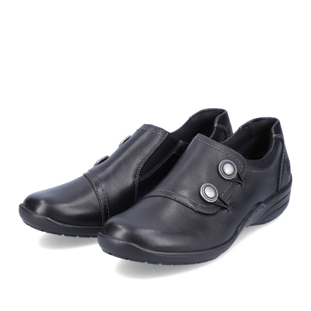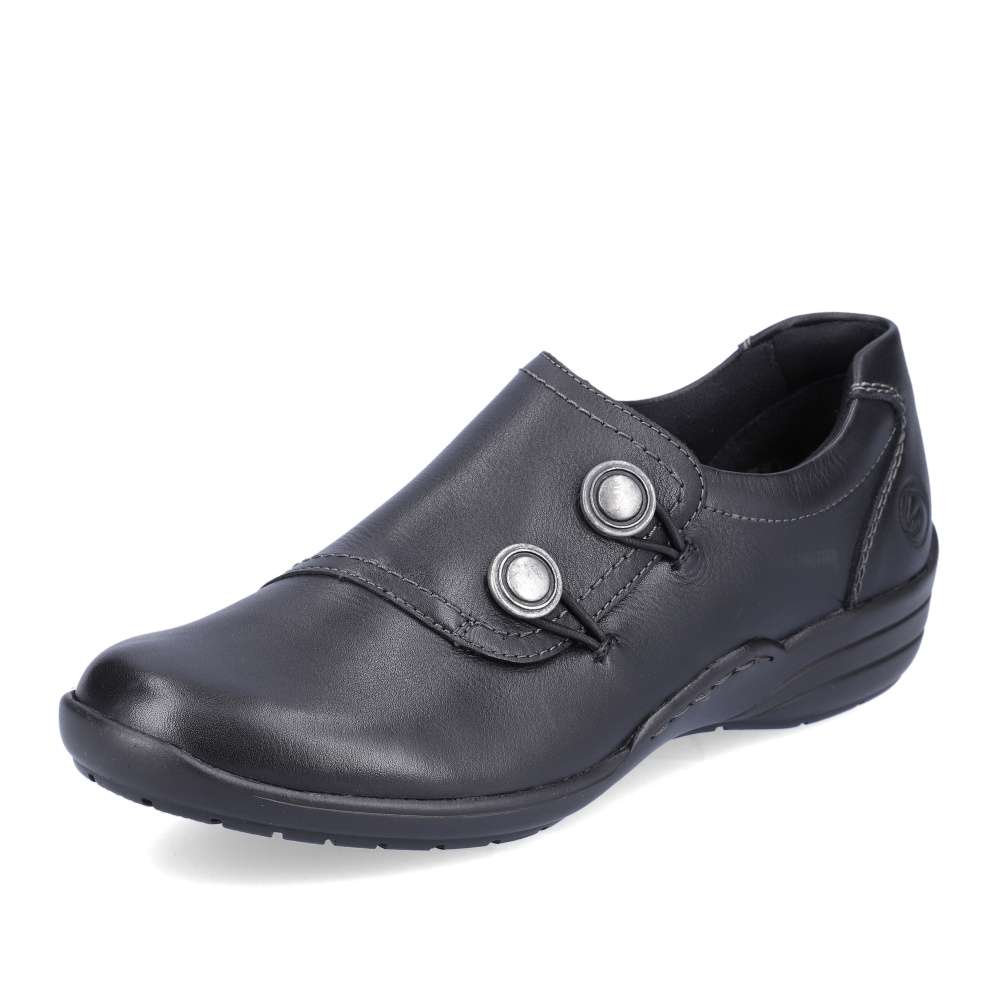 Detailní informace Obuv REMONTE – jedná se o vyšší řadu značky RIEKER, tato obuv se vyznačuje vynikající kombinací svrchních materiálů. Tyto klasické dámské polobotky budou tím správným společníkem pro každodenní nošení. Hladký kožený svršek je zdoben jemným prošíváním, stříbrnými knoflíky a pružné gumičky po stranách Vám usnadní nazouvání. Pohodlí na každém kroku Vám zajistí měkká stélka a kvalitní syntetická podešev. Boty z řady Remonte Vám zajistí maximální pohodlí při celodenním nošení a tyto polobotky budou skvěle podtrhovat všechny Vaše outfity.